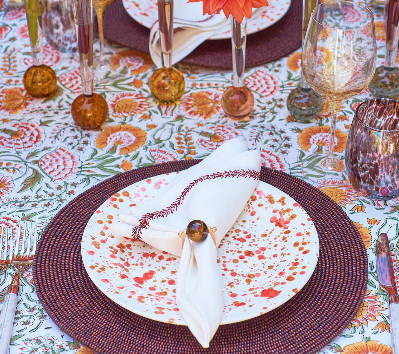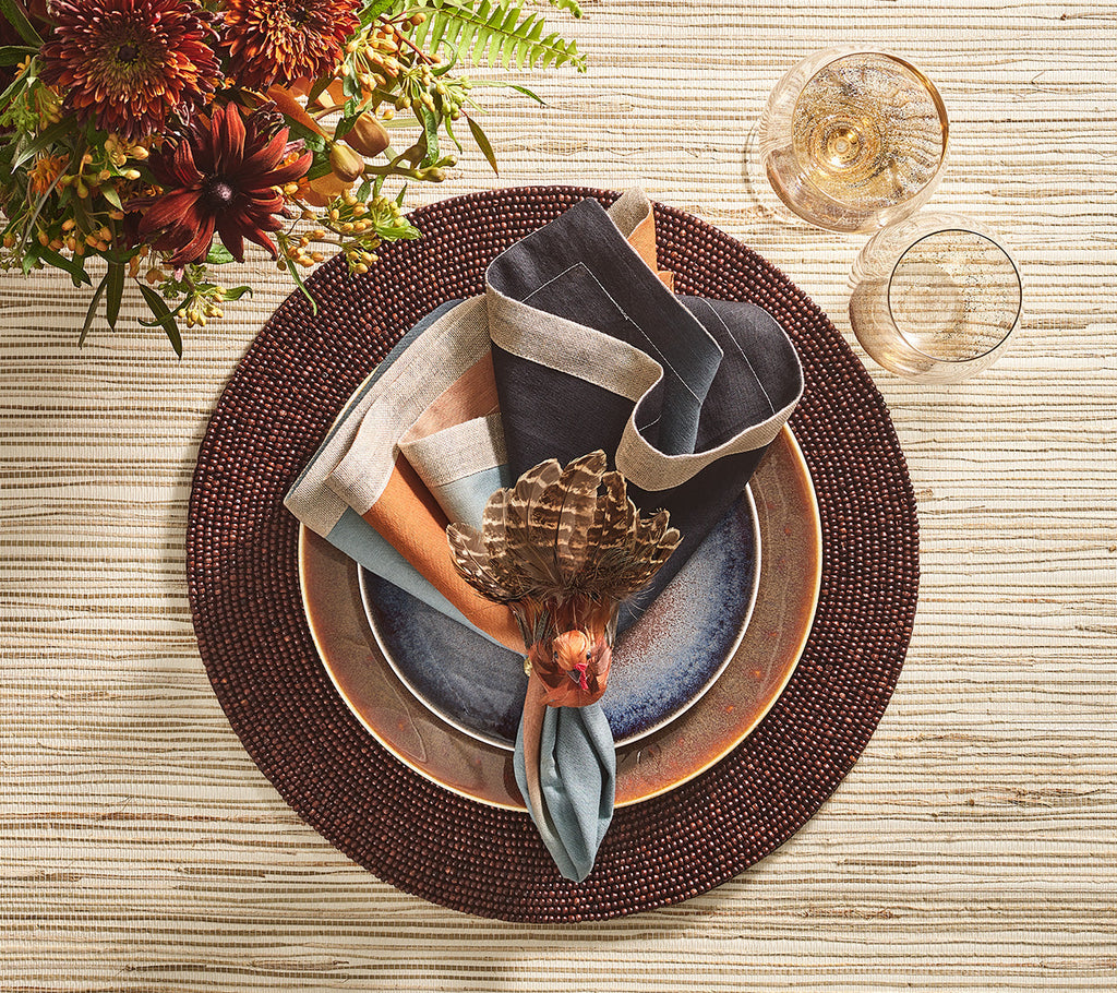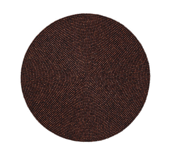 Hand arranged beads in a circular pattern creates elevated, organic style. Mimicking tree rings, the beads are placed to create movement and depth.