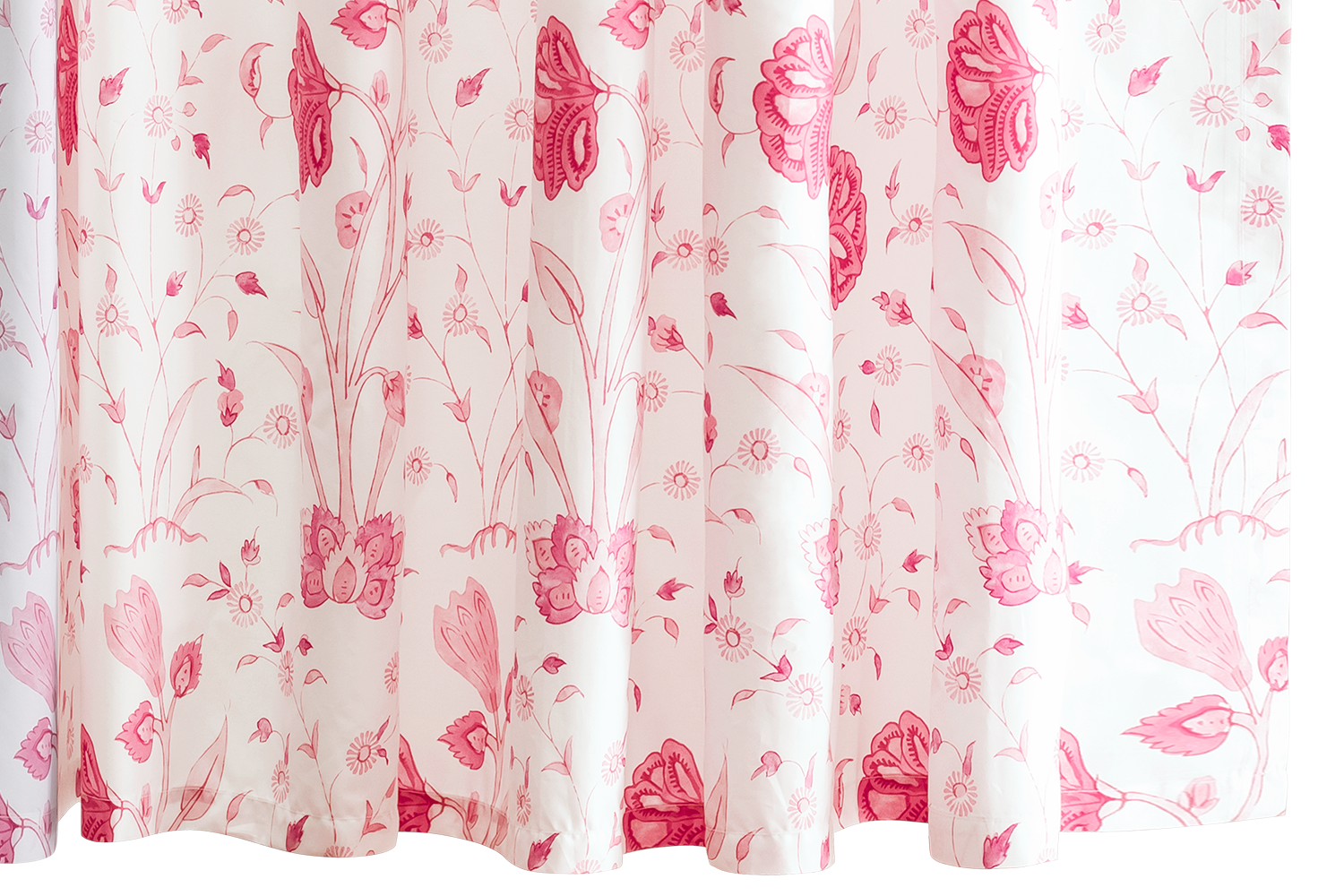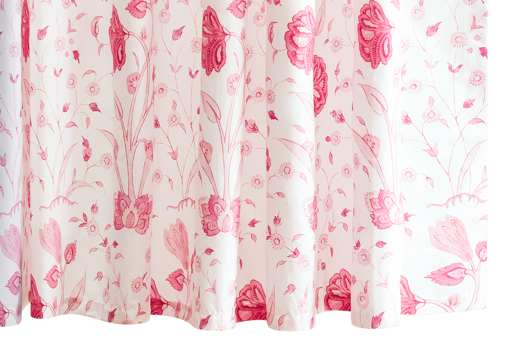 • Delightful, large scale Schumacher floral printed on Matouk's Luca percale. Suggests Indian hand-block prints.