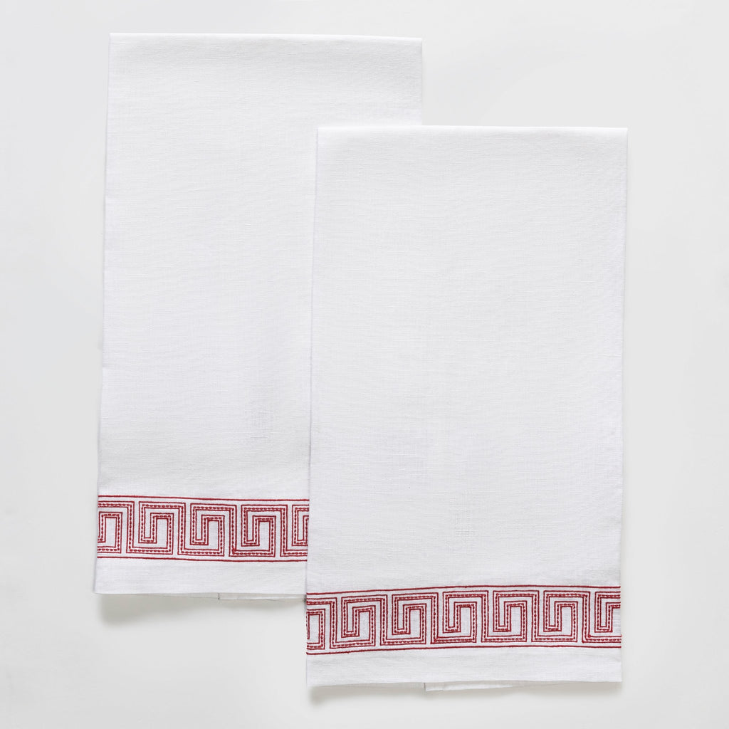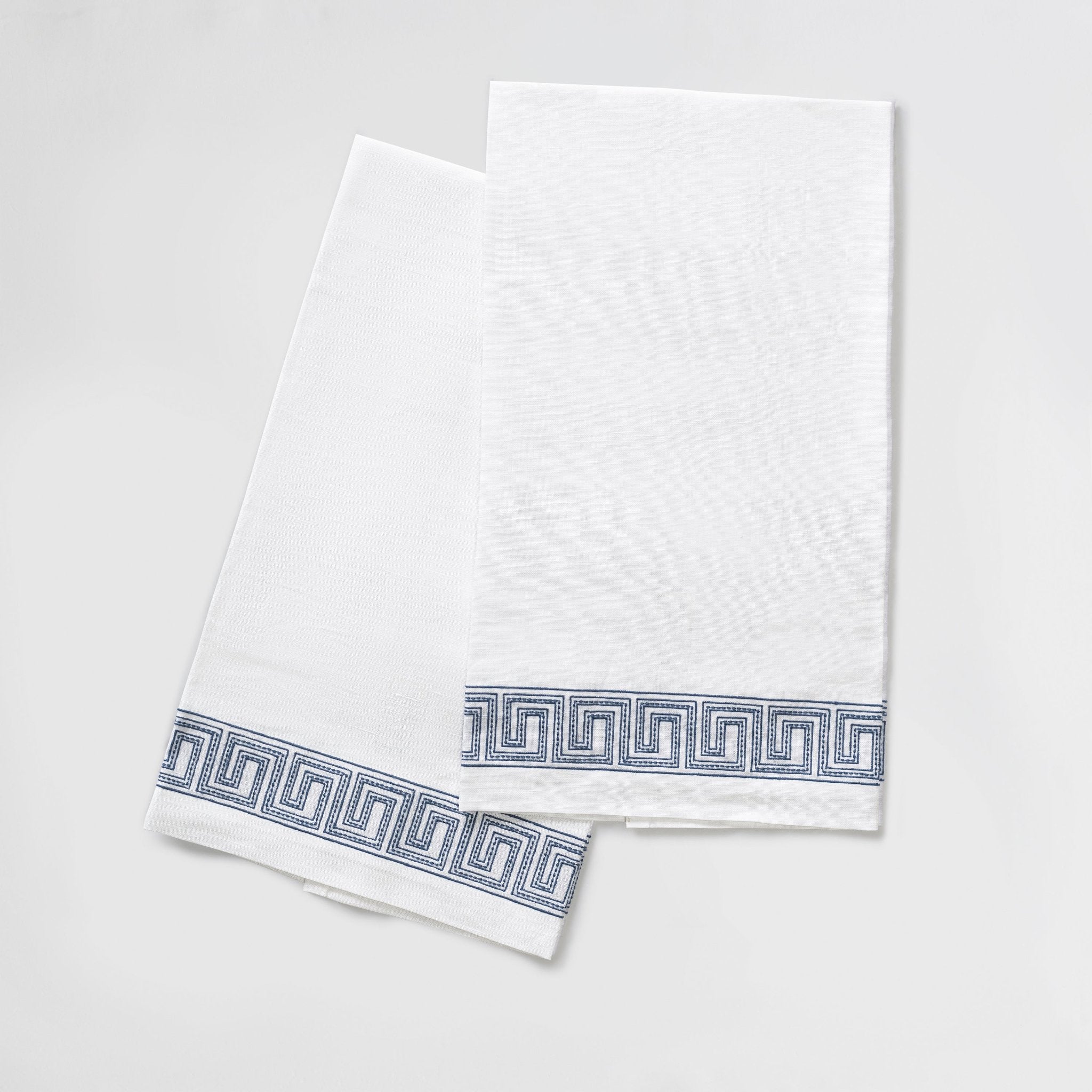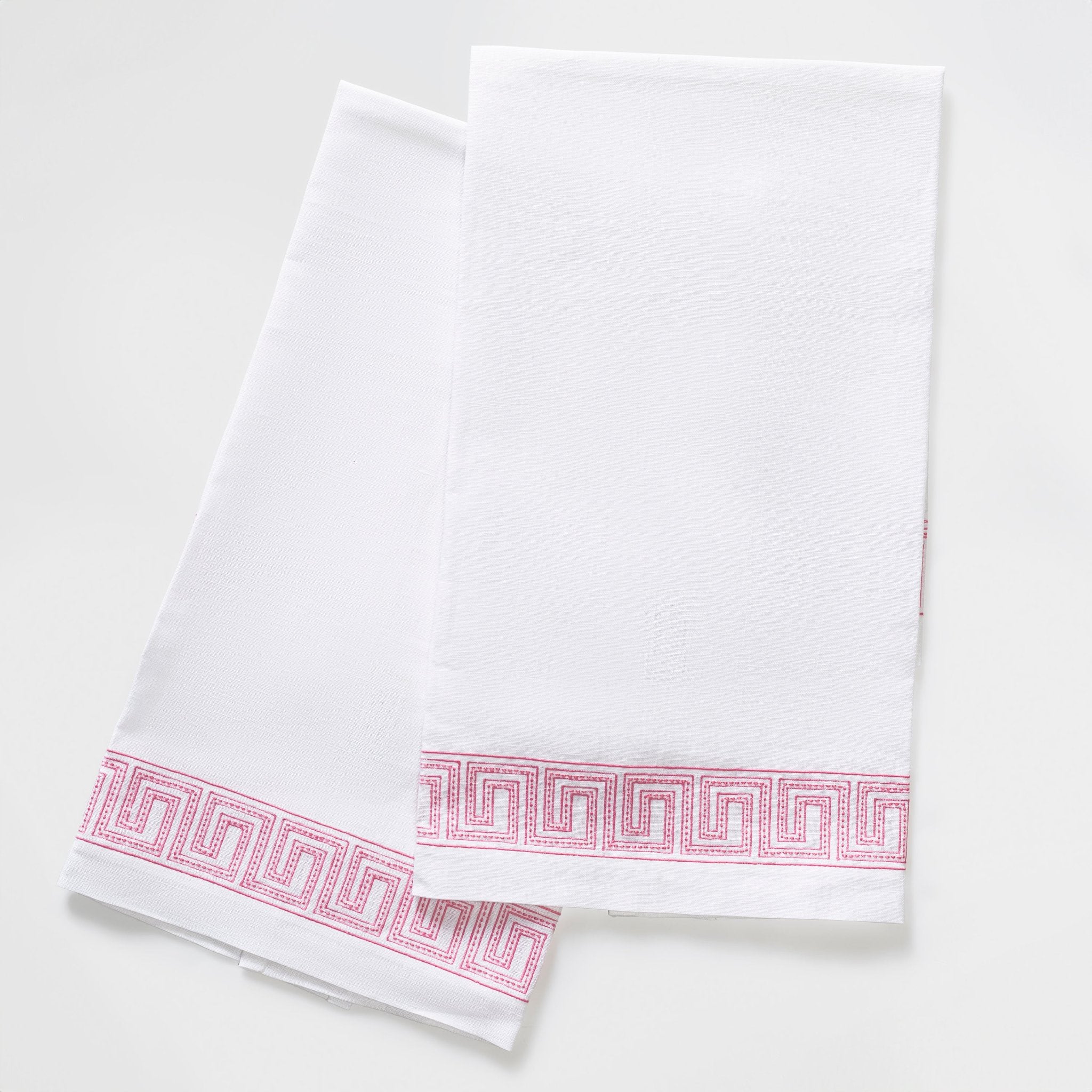 A timeless Greek key pattern is reimagined on Matouk's Guest Towels. Crafted from 100% linen with embroidery inspired by a meticulous Schumacher beaded tape. Designed with a series of embroidered lines and dots in an array of beautiful colors to create a classic look for the refined bathroom.