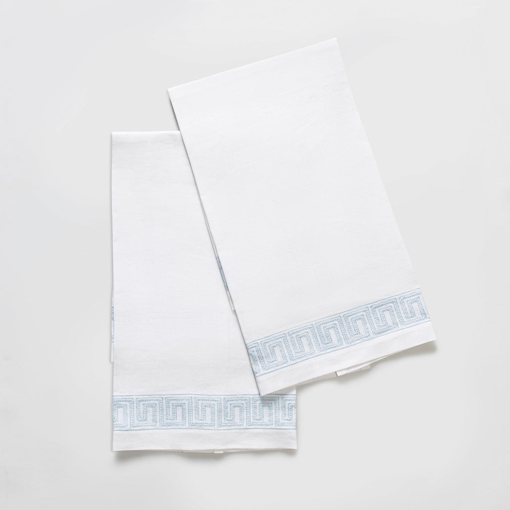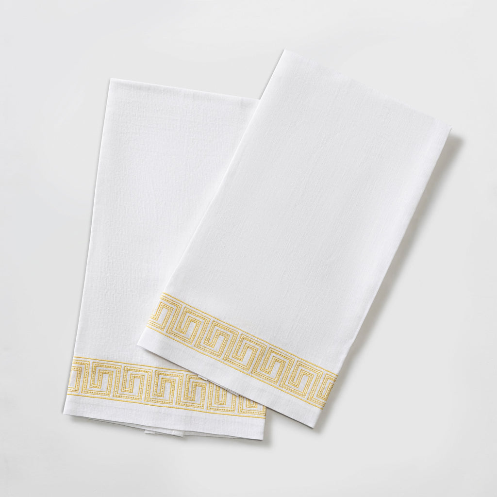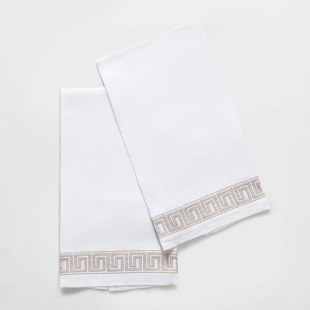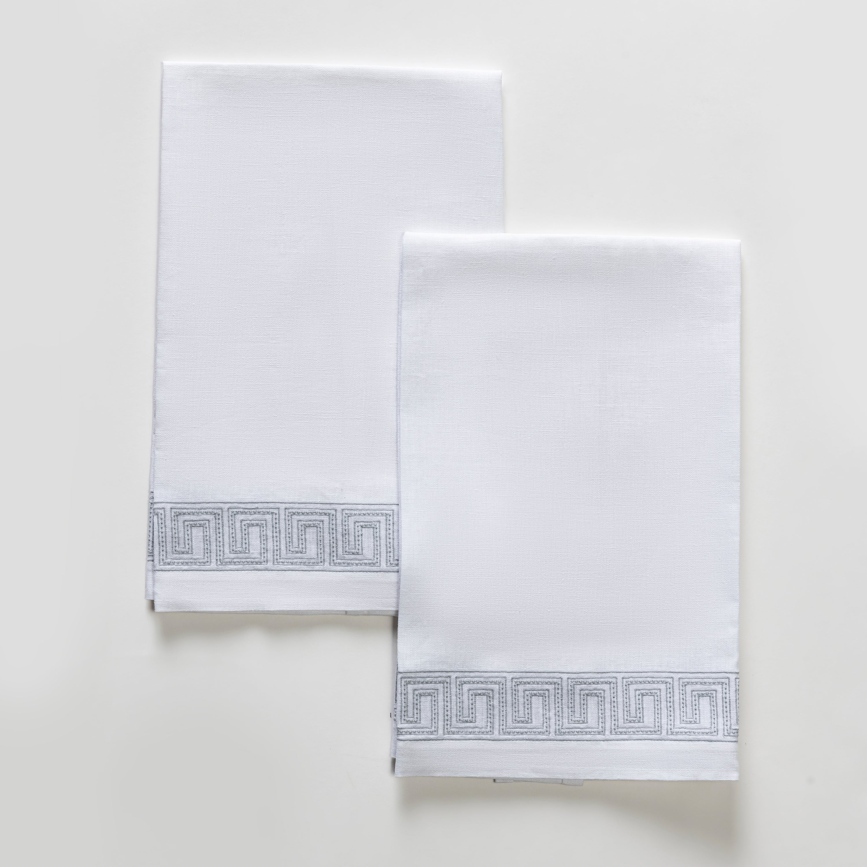 A timeless Greek key pattern is reimagined on Matouk's Guest Towels. Crafted from 100% linen with embroidery inspired by a meticulous Schumacher beaded tape. Designed with a series of embroidered lines and dots in an array of beautiful colors to create a classic look for the refined bathroom.