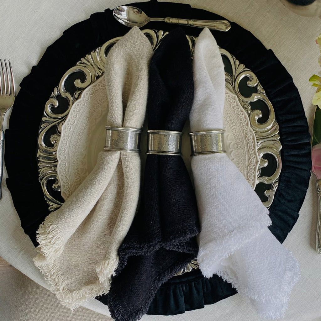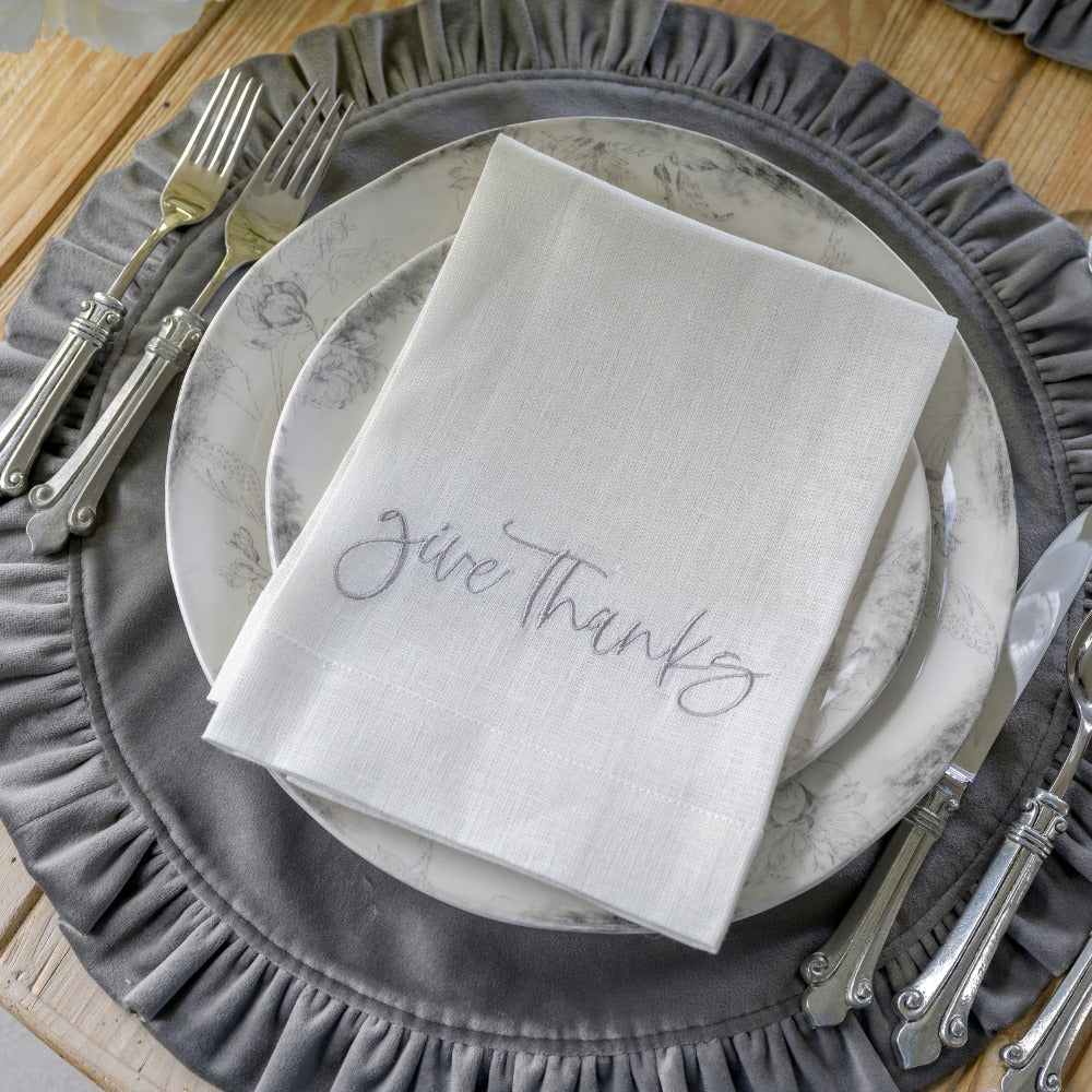 When entertaining guests, cloth dinner napkins and cocktail napkins are the epitome of elegance, yet can also be purchased in bright, fun colors and patterns for casual, everyday use. Choose from our selection of linen, linen blend, and cotton napkins for ease of care. For a unique look on the dining table, shop our exclusive designers to add the perfect ambiance to your special occasion.