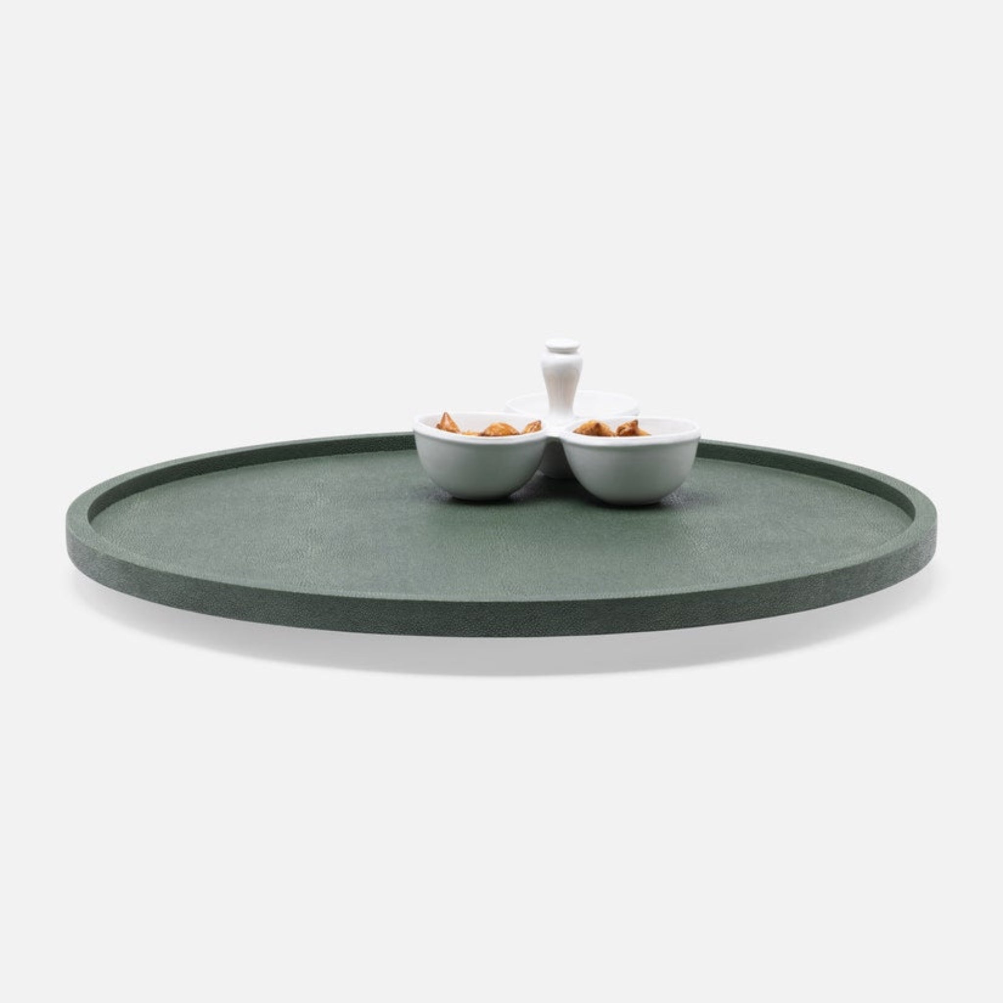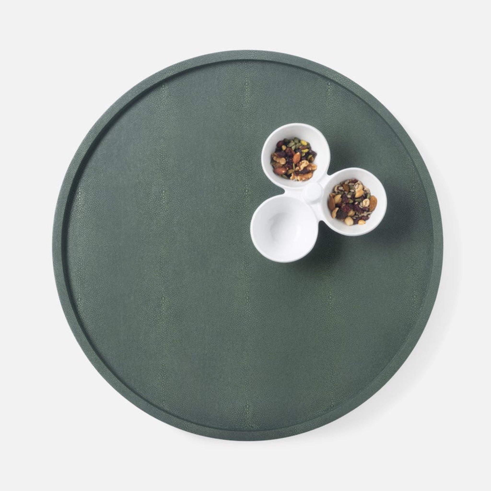 • Realistic faux shagreen lazy Susan in juniper