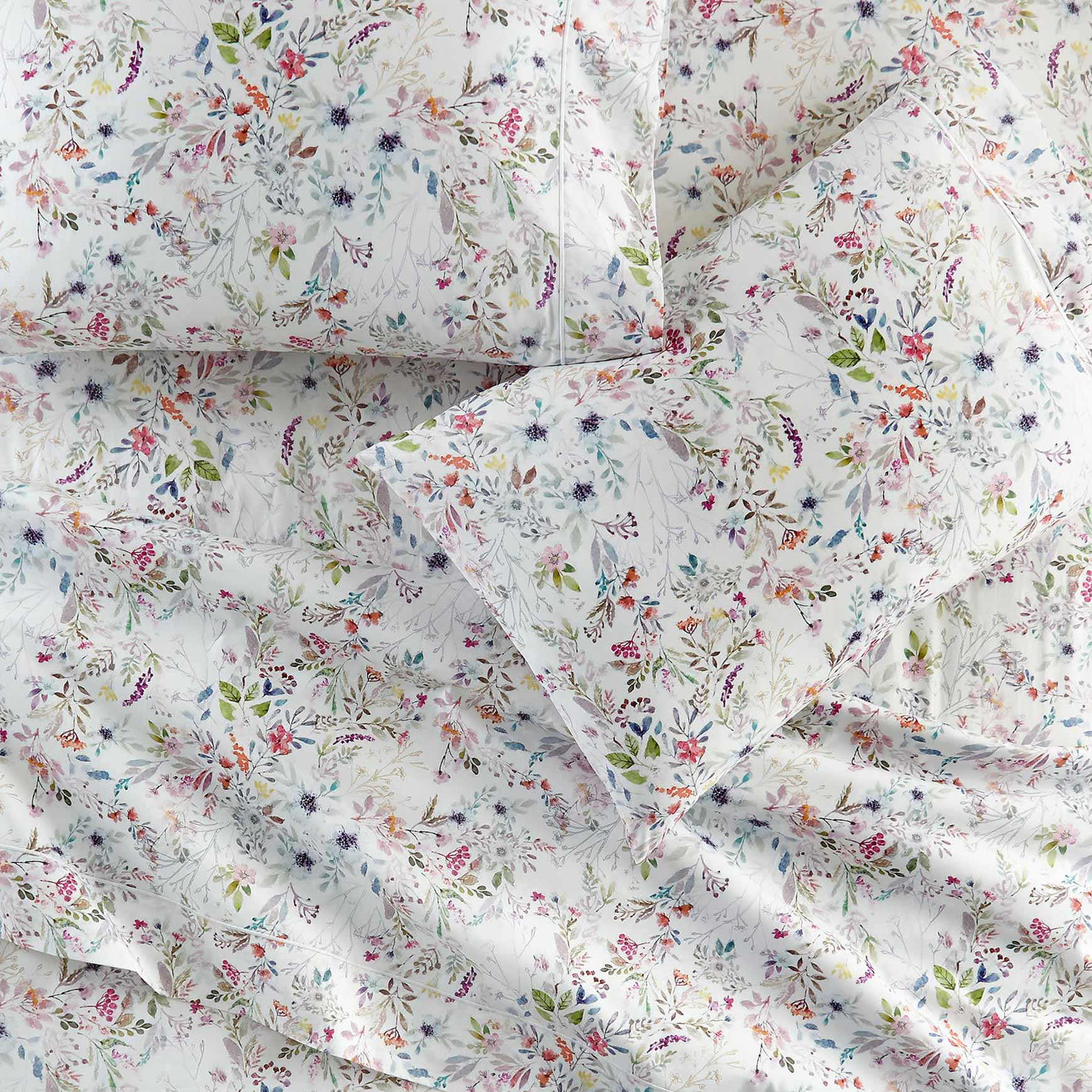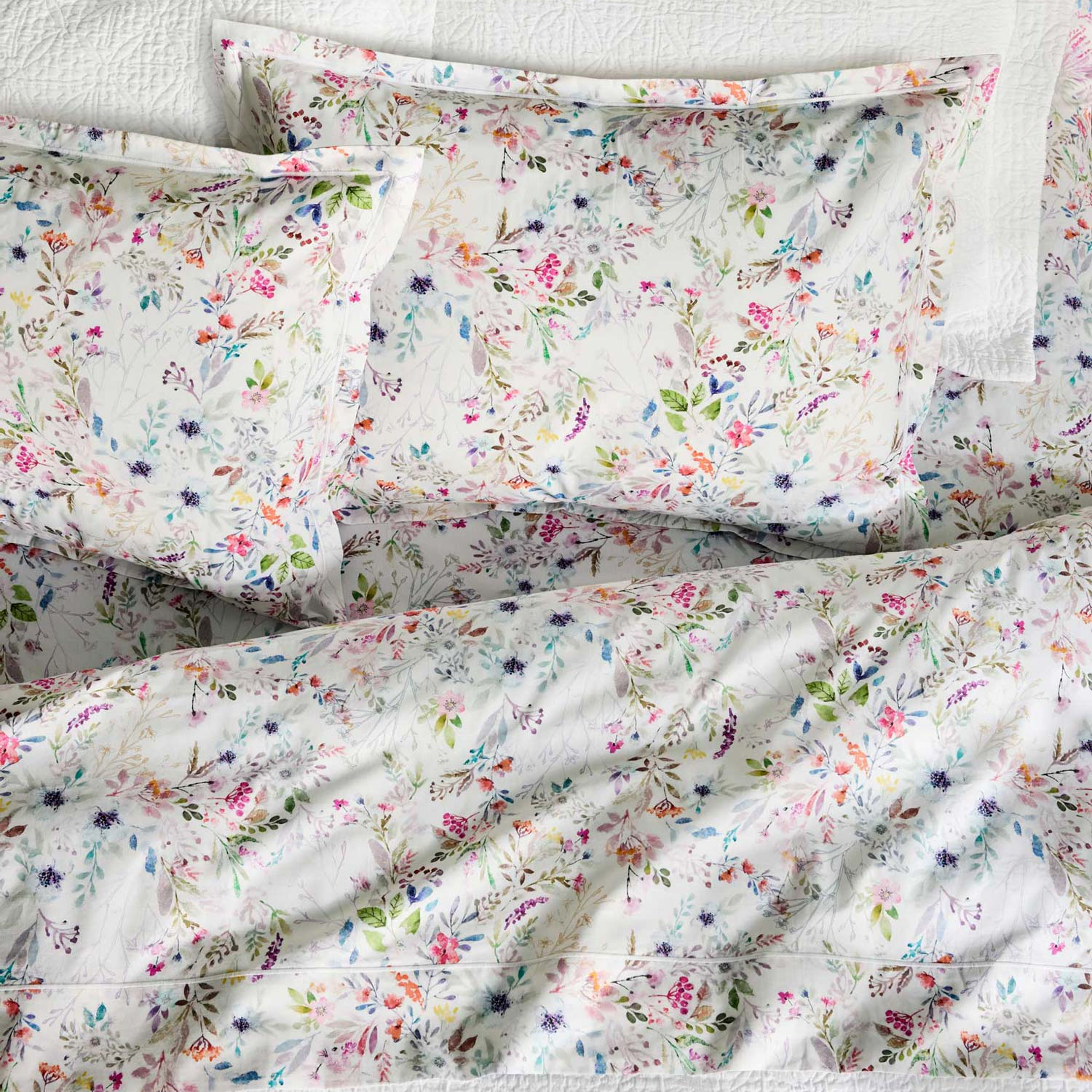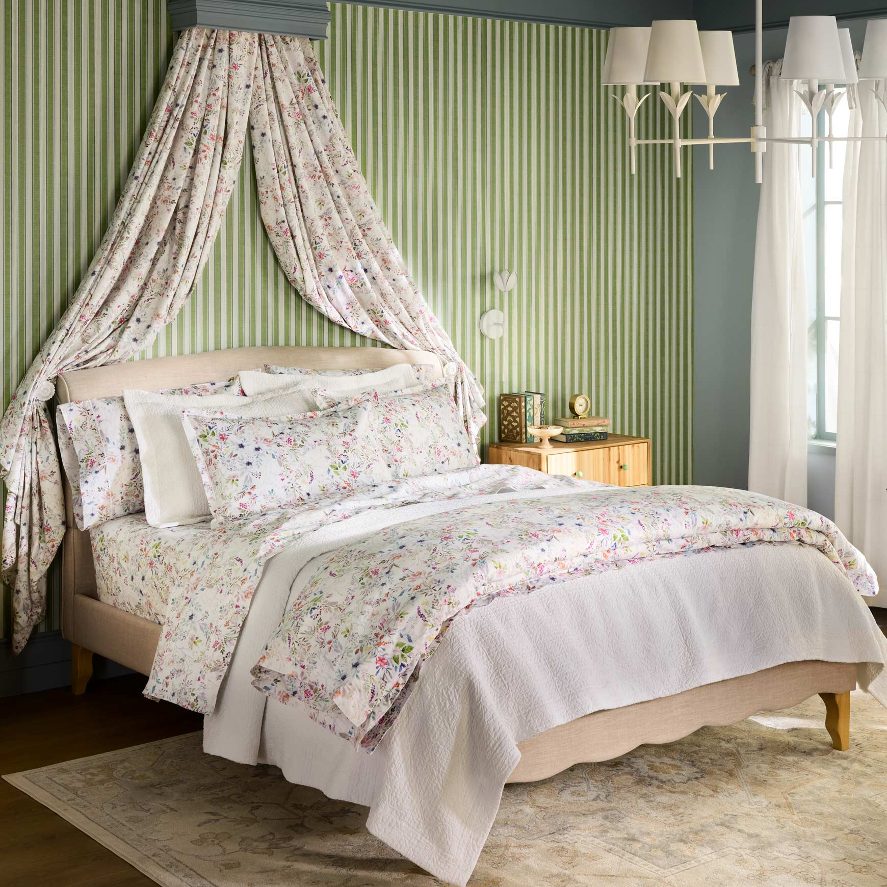Sprigged with colorful wildflowers, Chloe creates an enchanting look for the bed. Crafted in Portugal of smooth, long-staple cotton percale, it’s lightweight, breathable and cool to the touch, making it an excellent choice for warm sleepers. The sheet set is designed to be mixed and matched with other products in the Chloe collection.