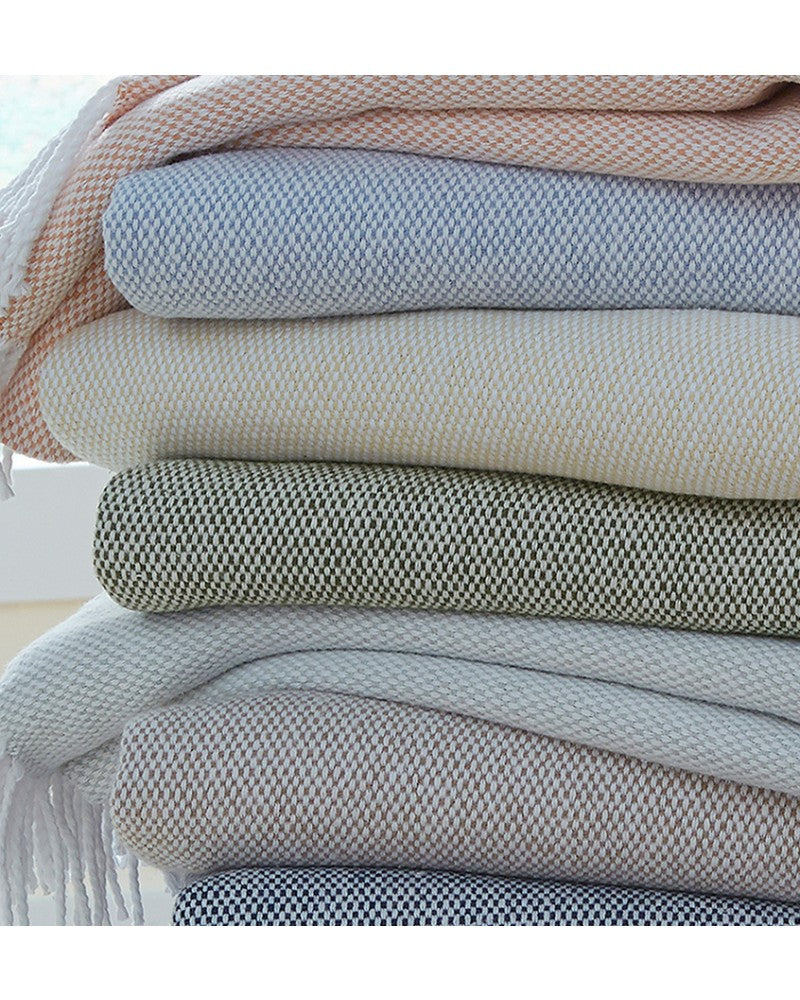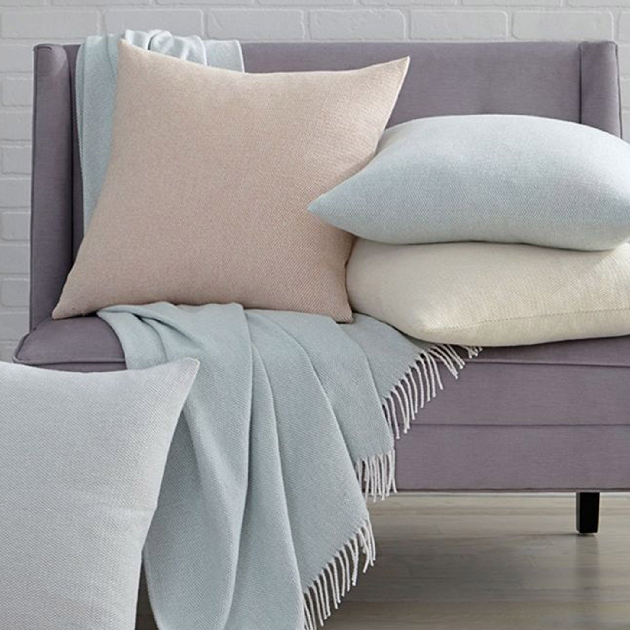 • Brushed cotton face with classic basket weave pattern throw blankets and decorative pillows. Soft hand. Simple and welcoming luxury.