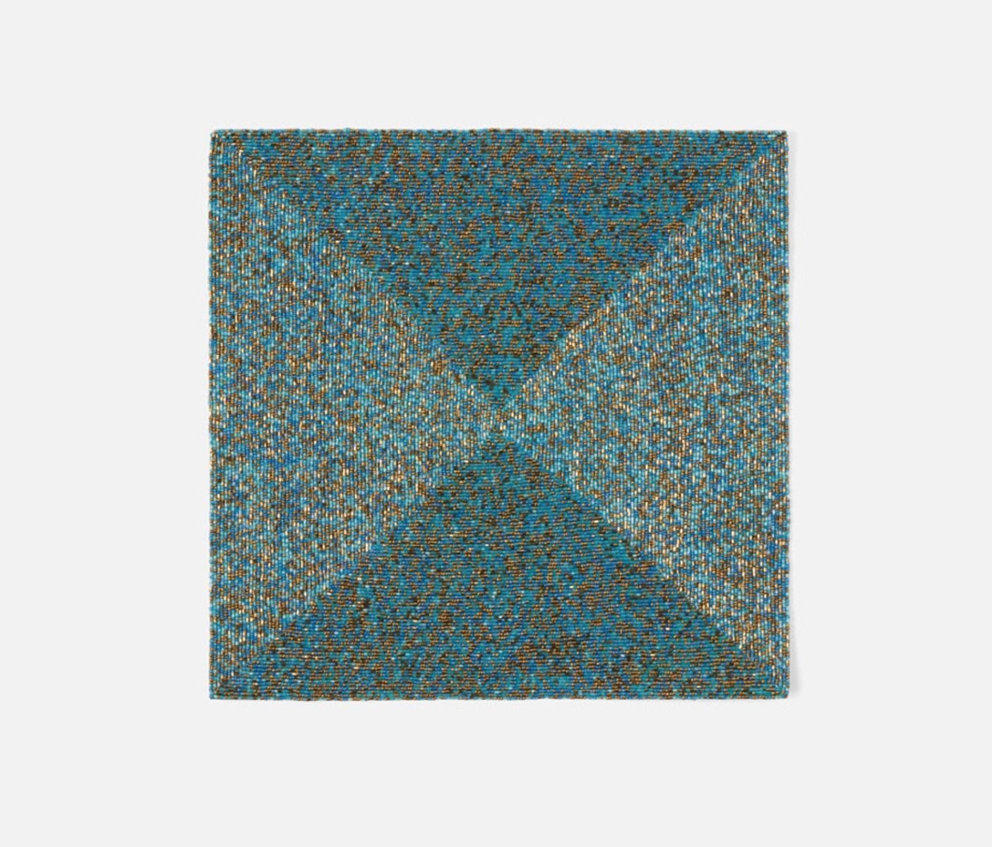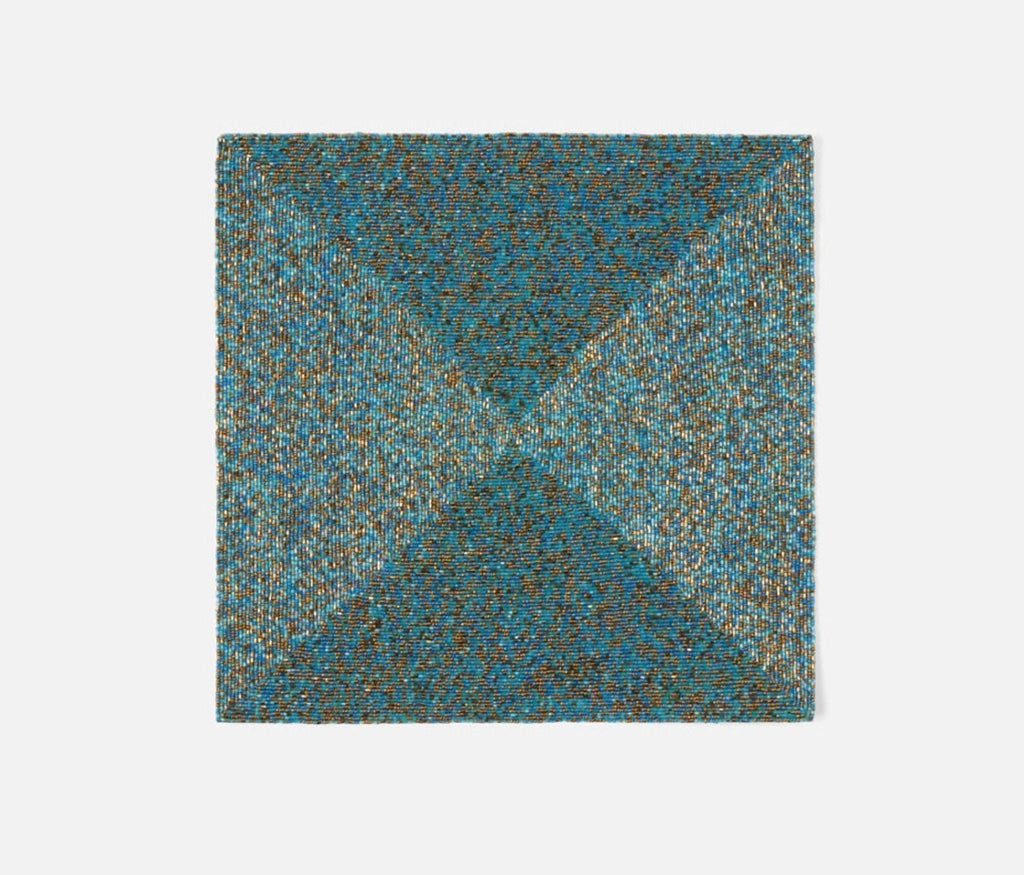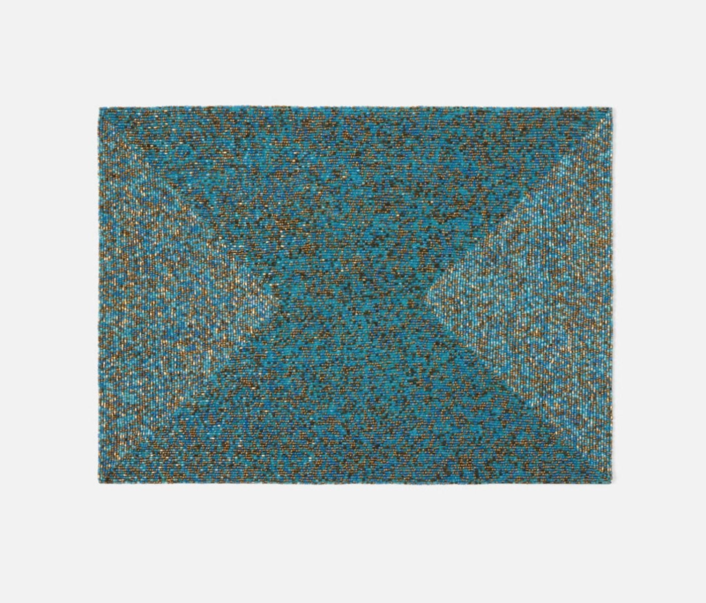 • Coil strands of thousands of turquoise and gold beads creates a placemat inspired by a desert sunset