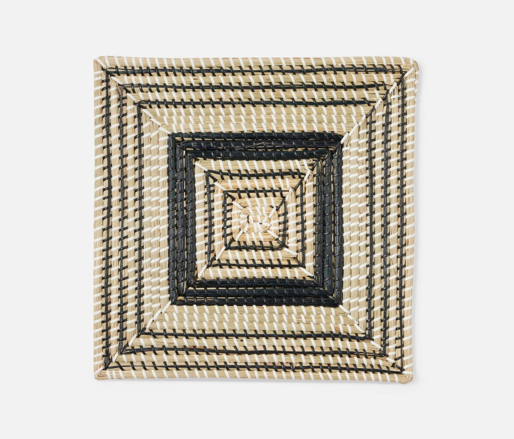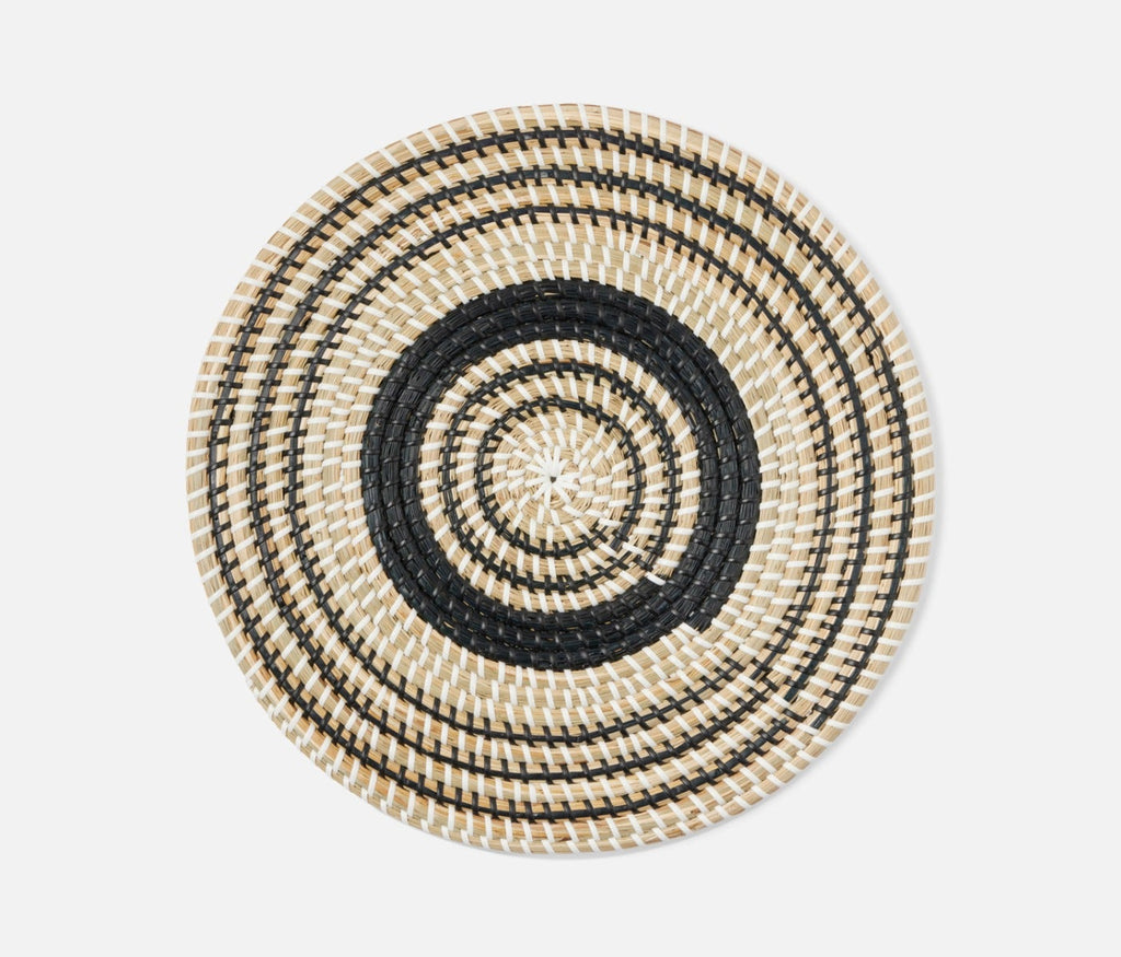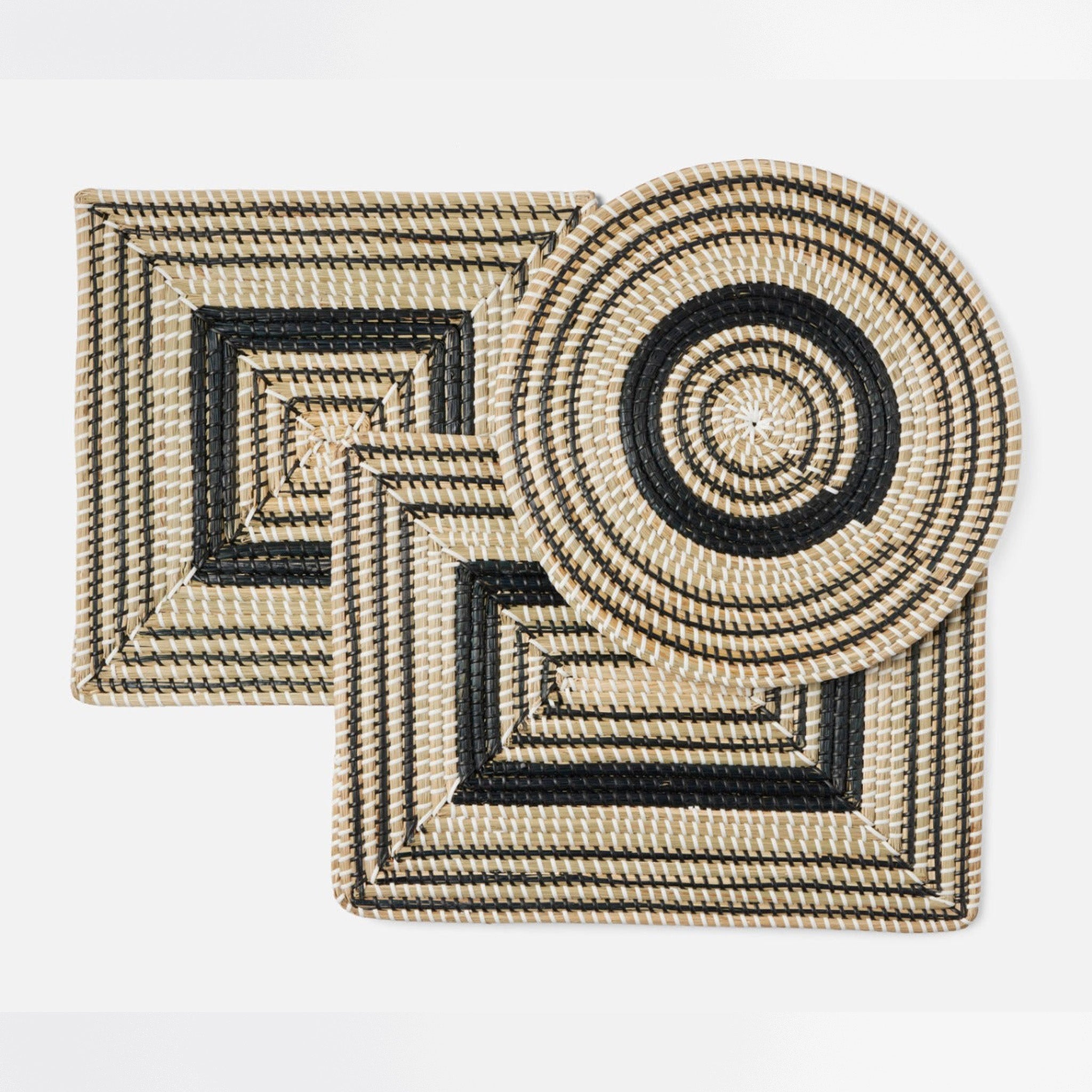- Natural woven seagrass placemats with contrasting black art deco design in round, square or rectangle shape