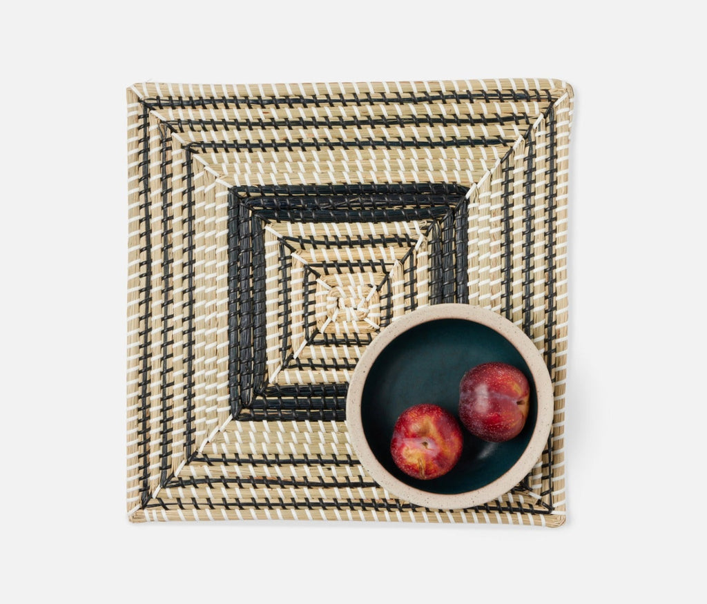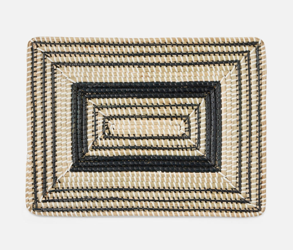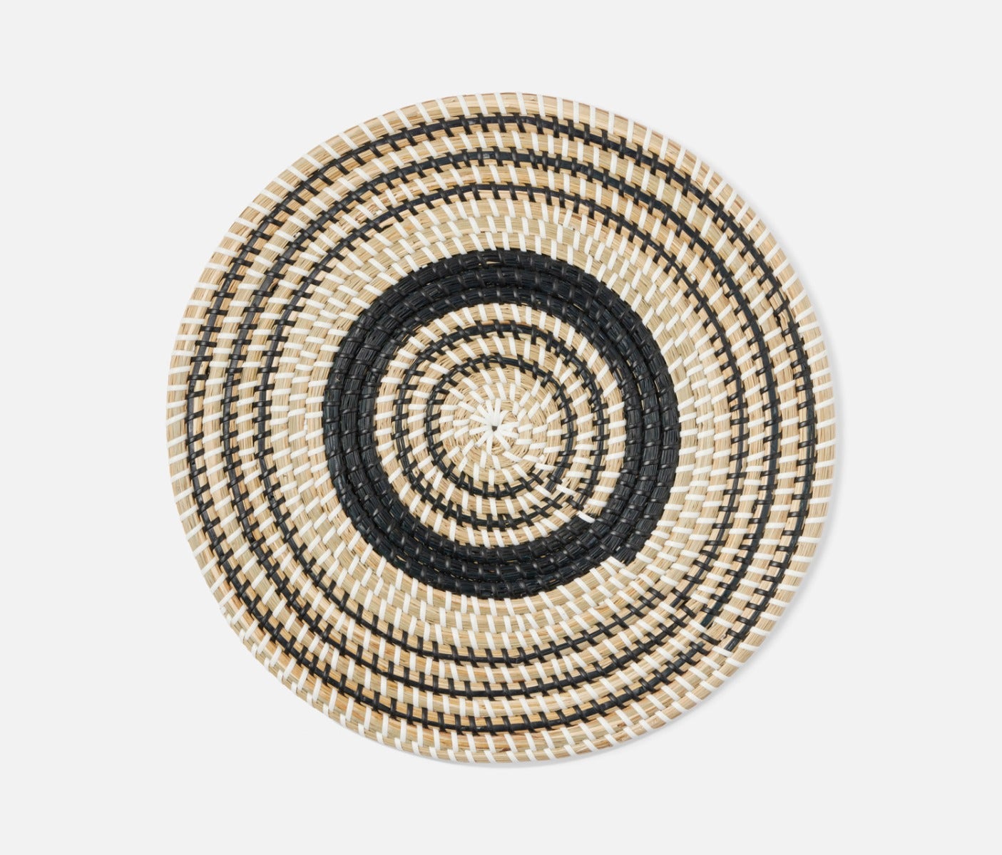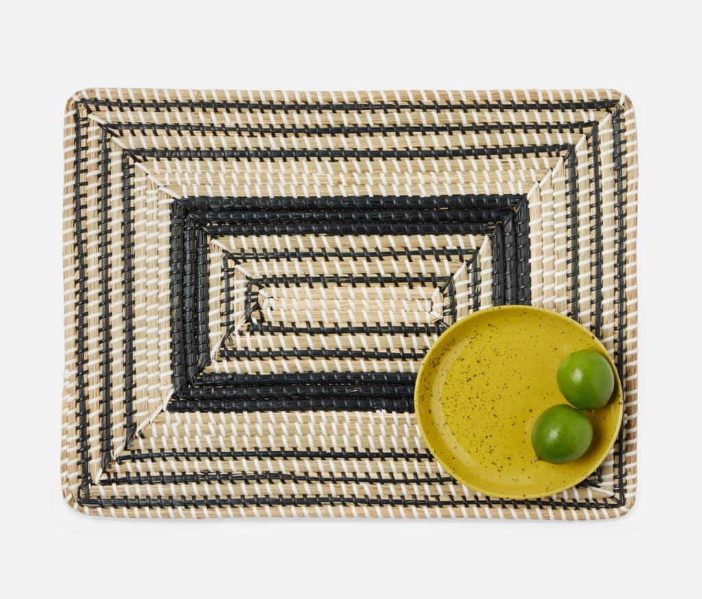 - Natural woven seagrass placemats with contrasting black art deco design in round, square or rectangle shape