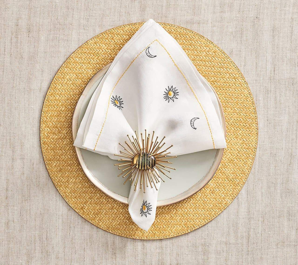 Woven neutral sand raffia placemat with classic Vietnamese plaiting technique to add depth and texture