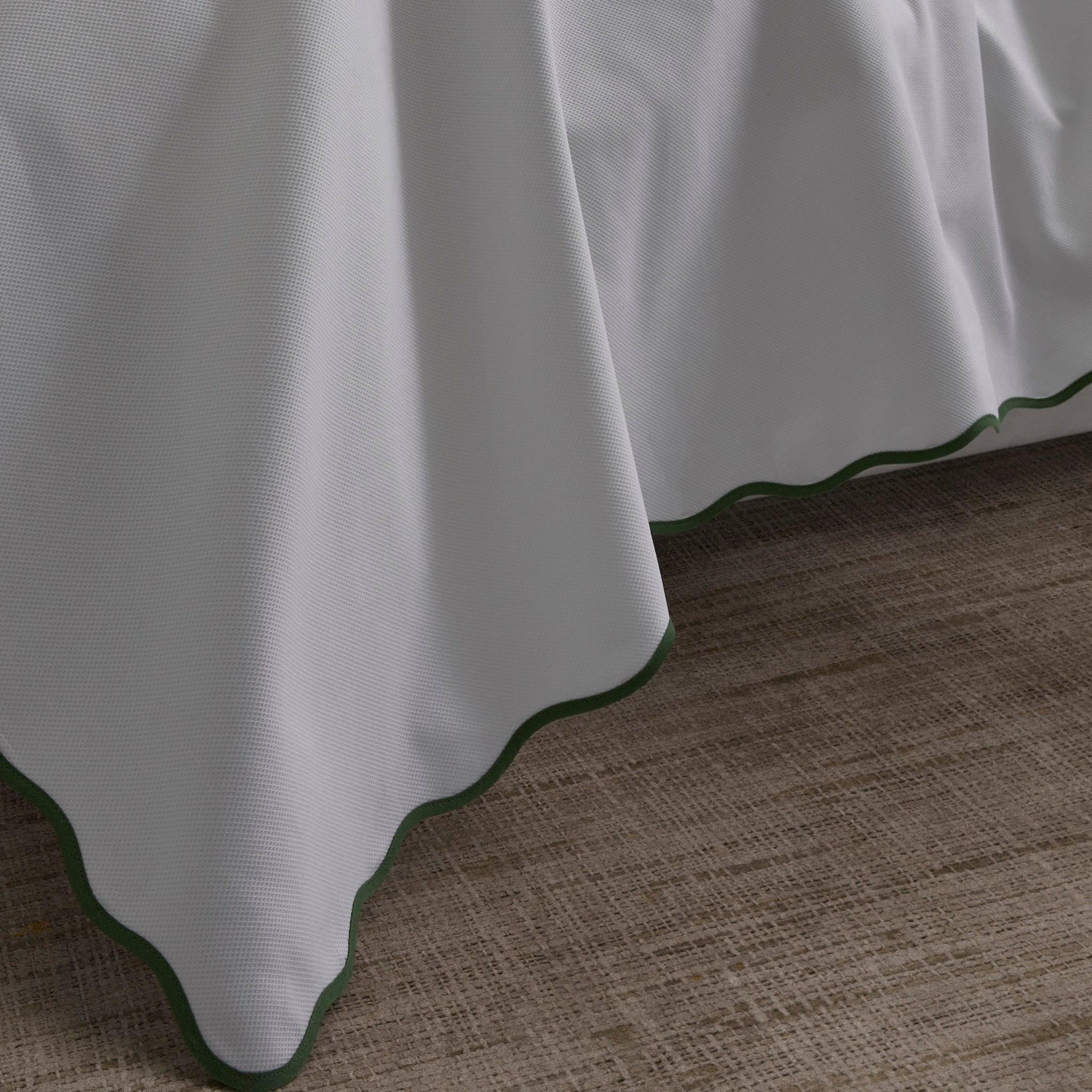 Lightweight with a soft texture, this charming pique is finished with a subtle wavy scallop edge