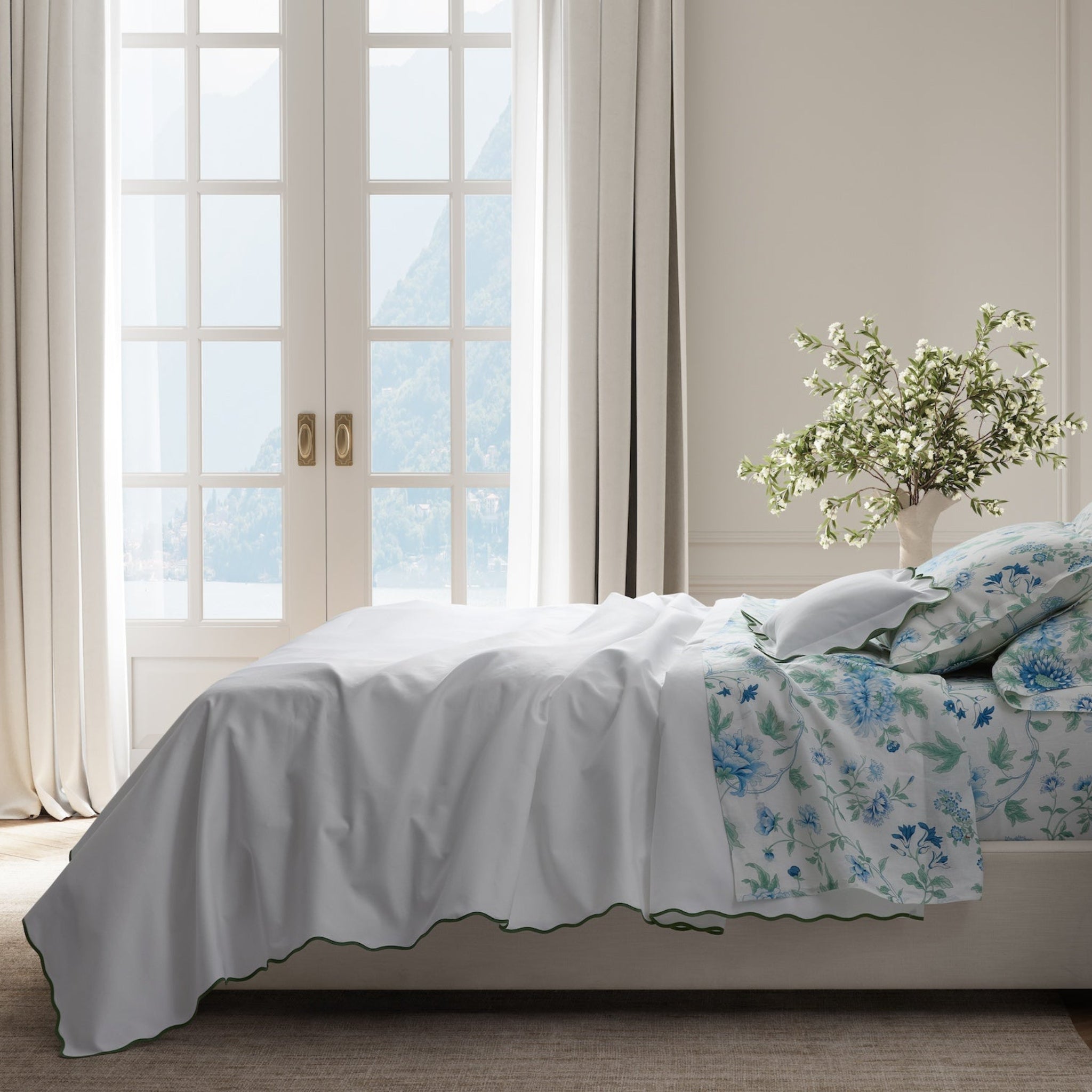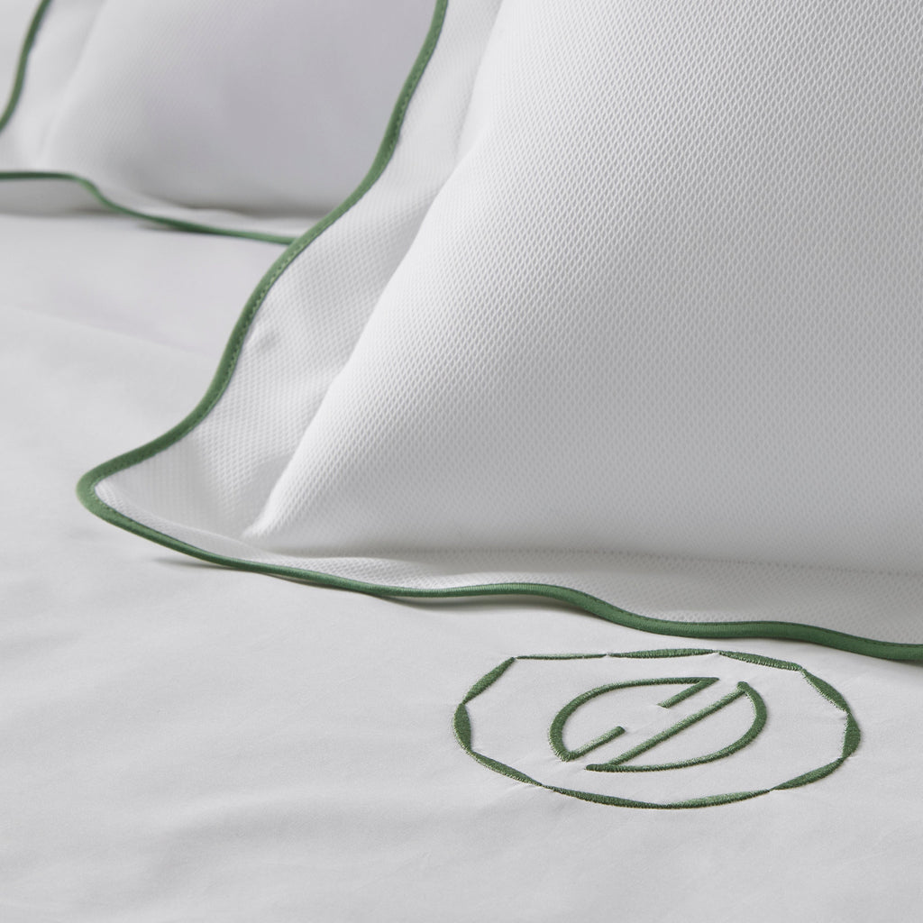 • Duvet Covers reverse to Ceylon sheeting (520 thread count percale), have inside corner ties, zipper closure, and 1.5" flanges