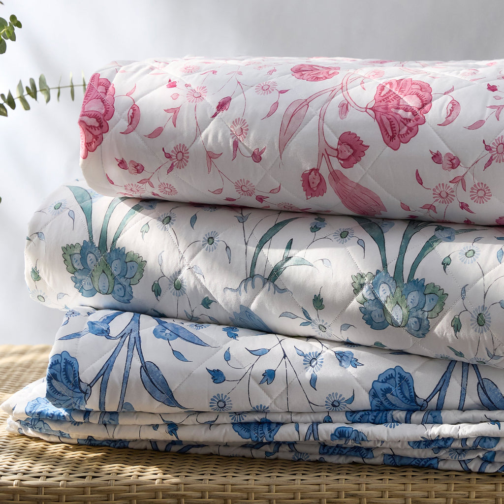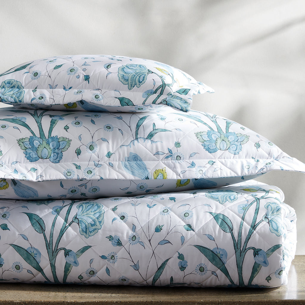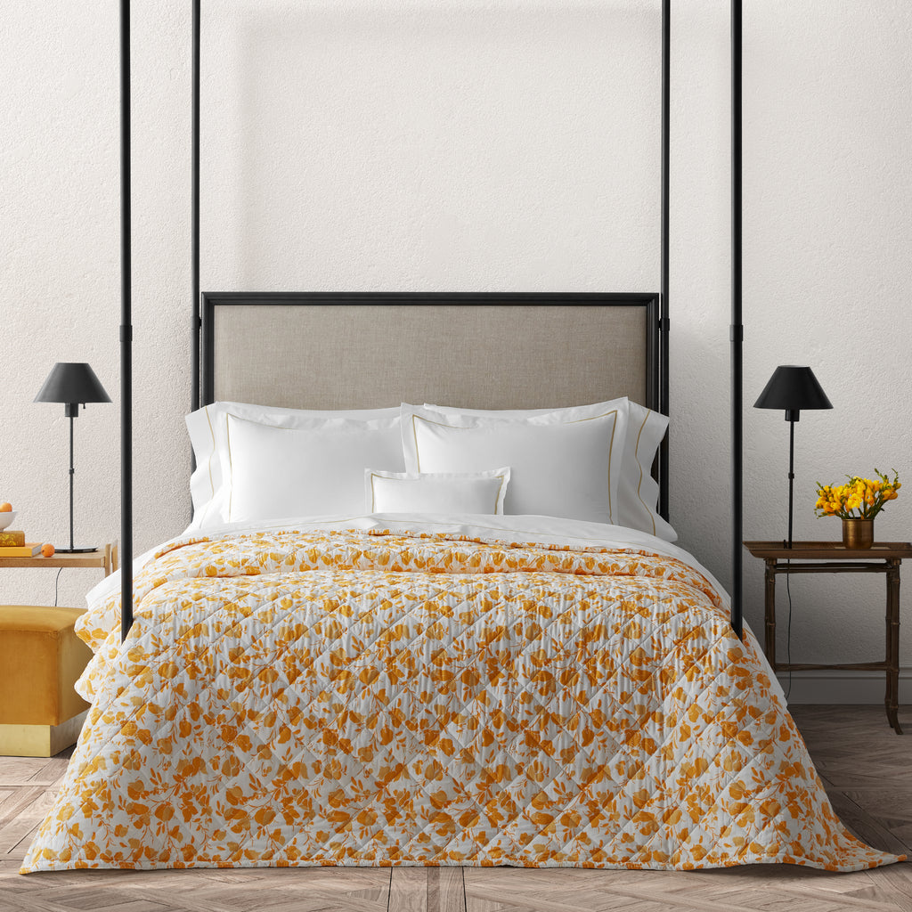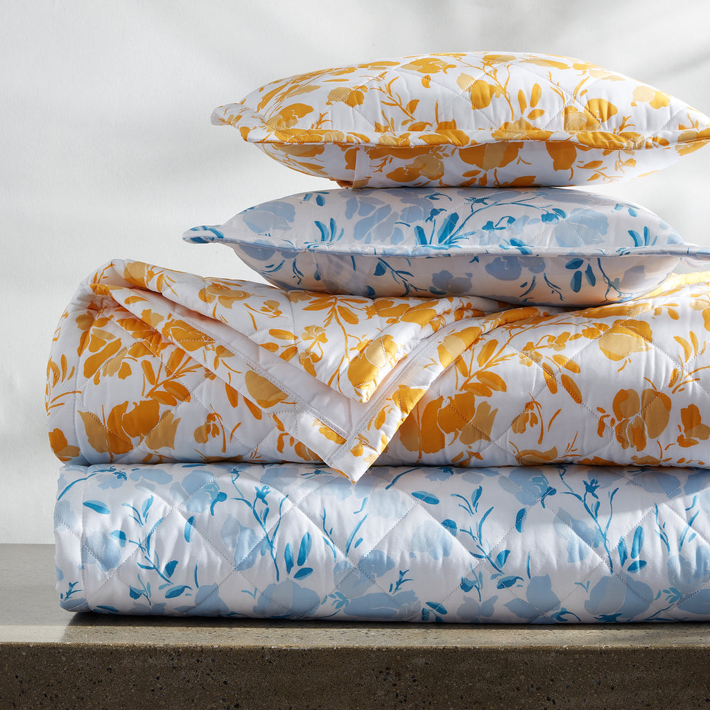 Matouk's most popular pattern in collaboration with artist Lulu de Kwiatkowski (Lulu DK) features happy, vibrant allium flowers on Luca cotton percale that is quilted in a 2" diamond pattern and finished with a soft wavy scallop edge.
