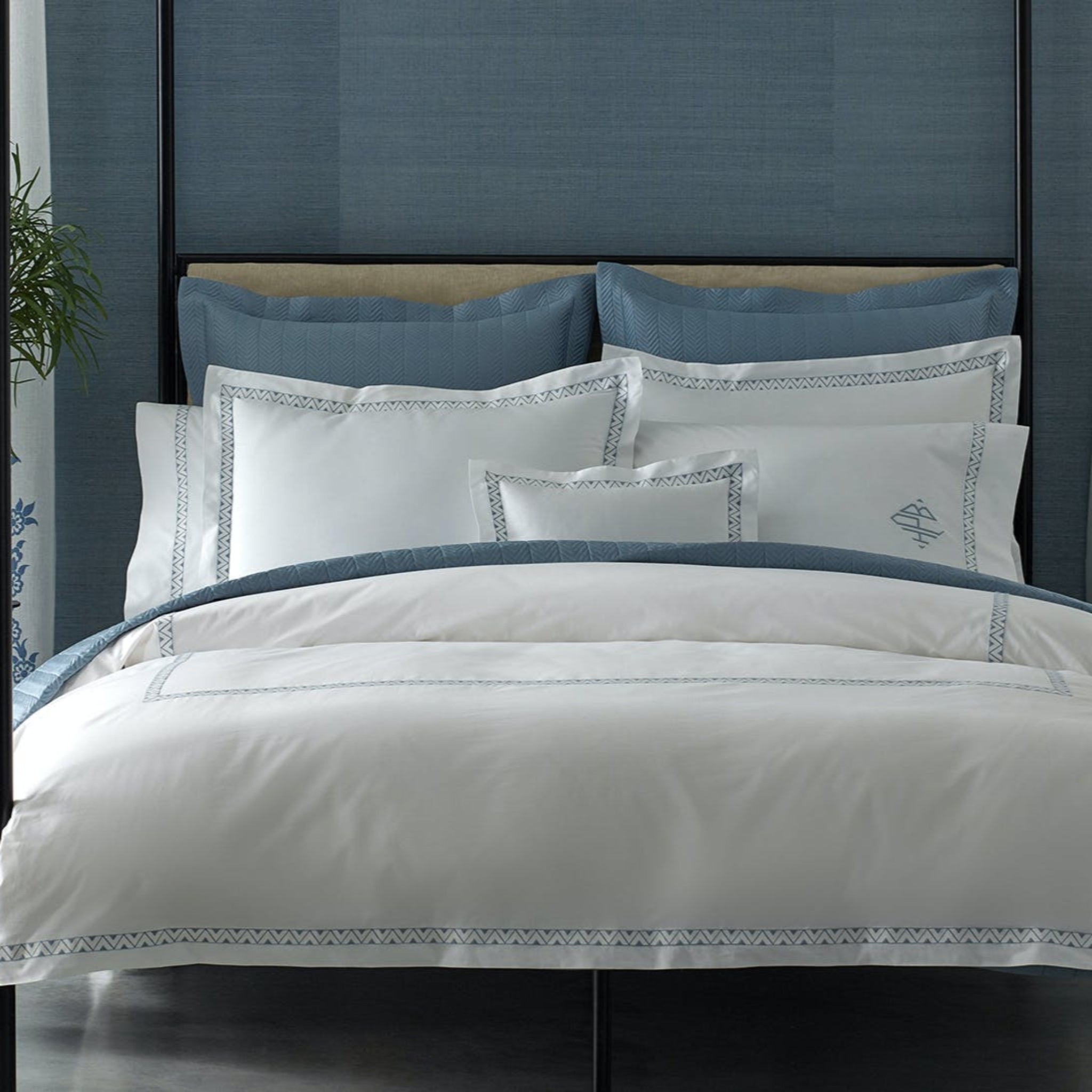 A detailed chevron quilt pattern is crafted on Nocturne sateen, for a light, lofty weight and soft, smooth touch 600 thread count Egyptian cotton woven in Italy