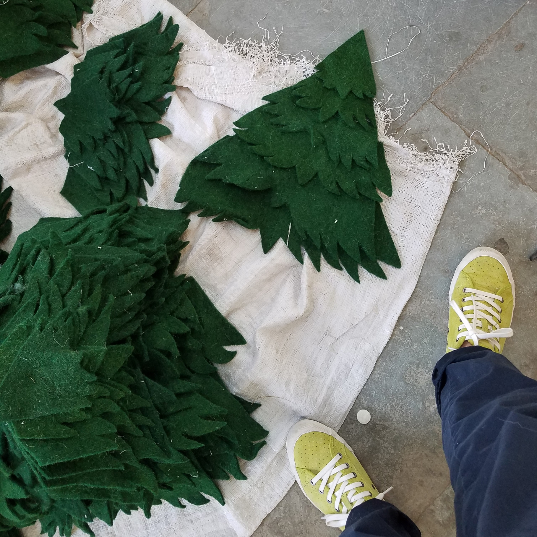 - Hand-felted and hand-appliquéd 100% sustainable wool tree skirt