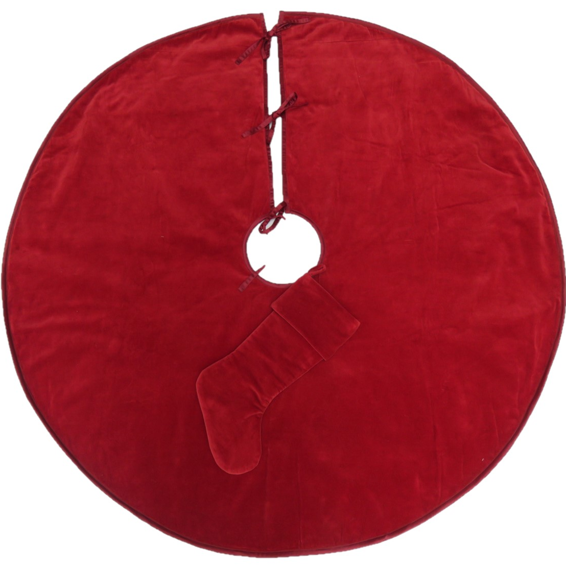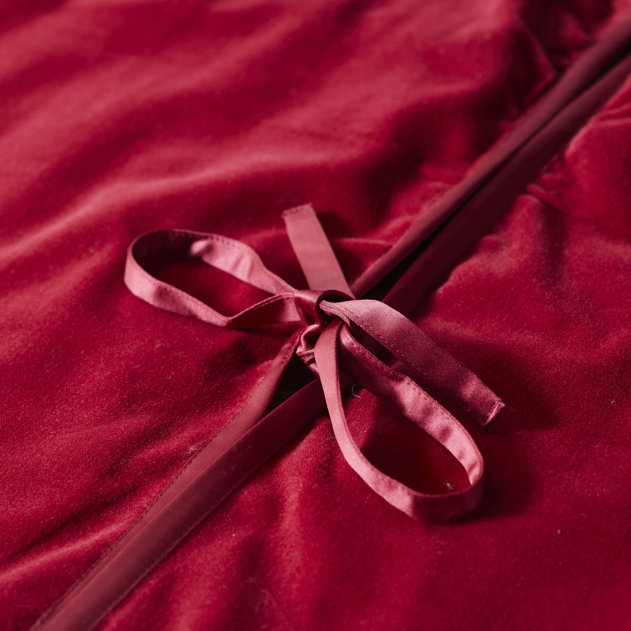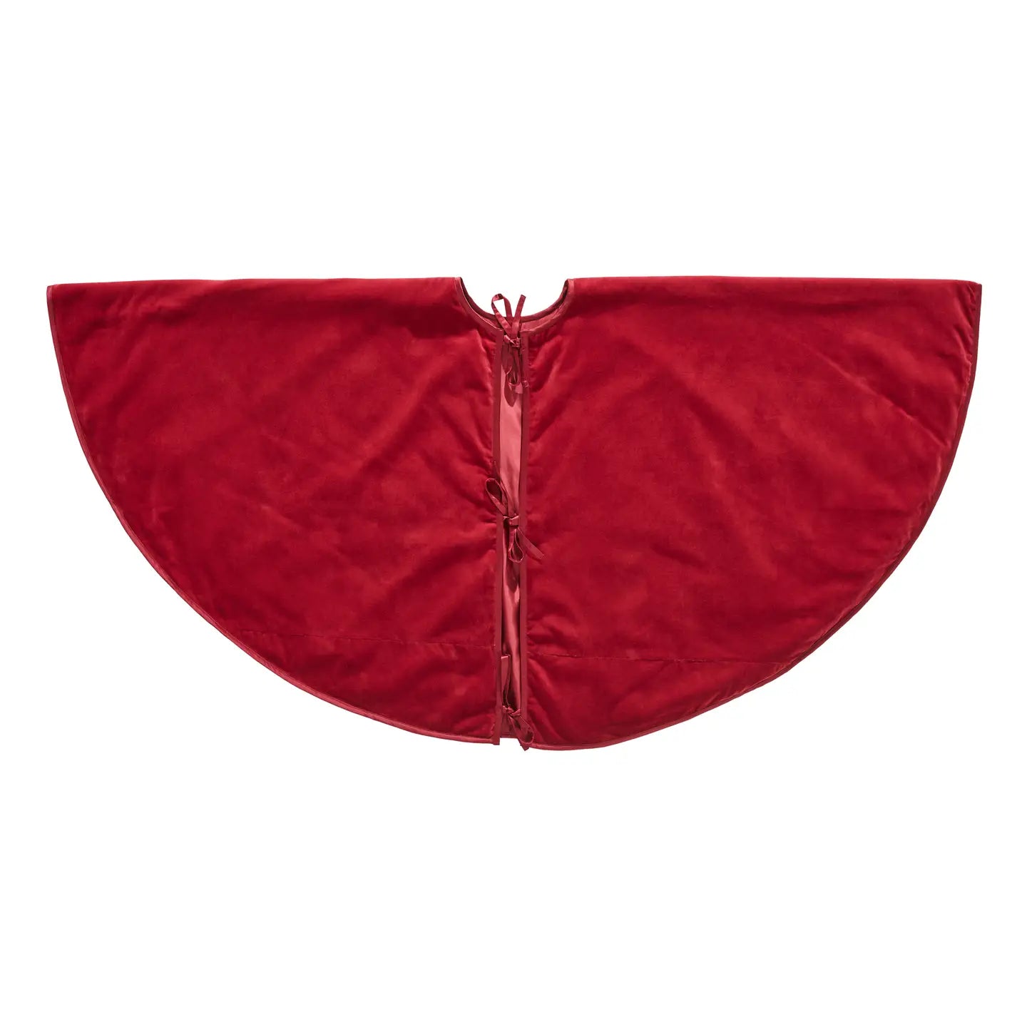 Timeless red velvet tree skirt is the right addition to any decor for Christmas. Satin ties and banding complete the elegant look.