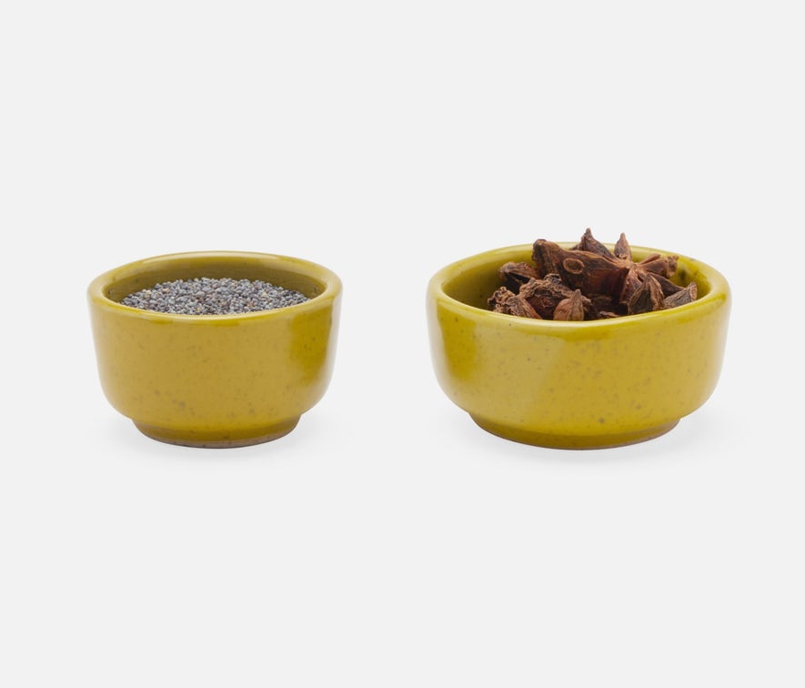 - Stoneware pinch bowl in chartreuse salt glaze finish