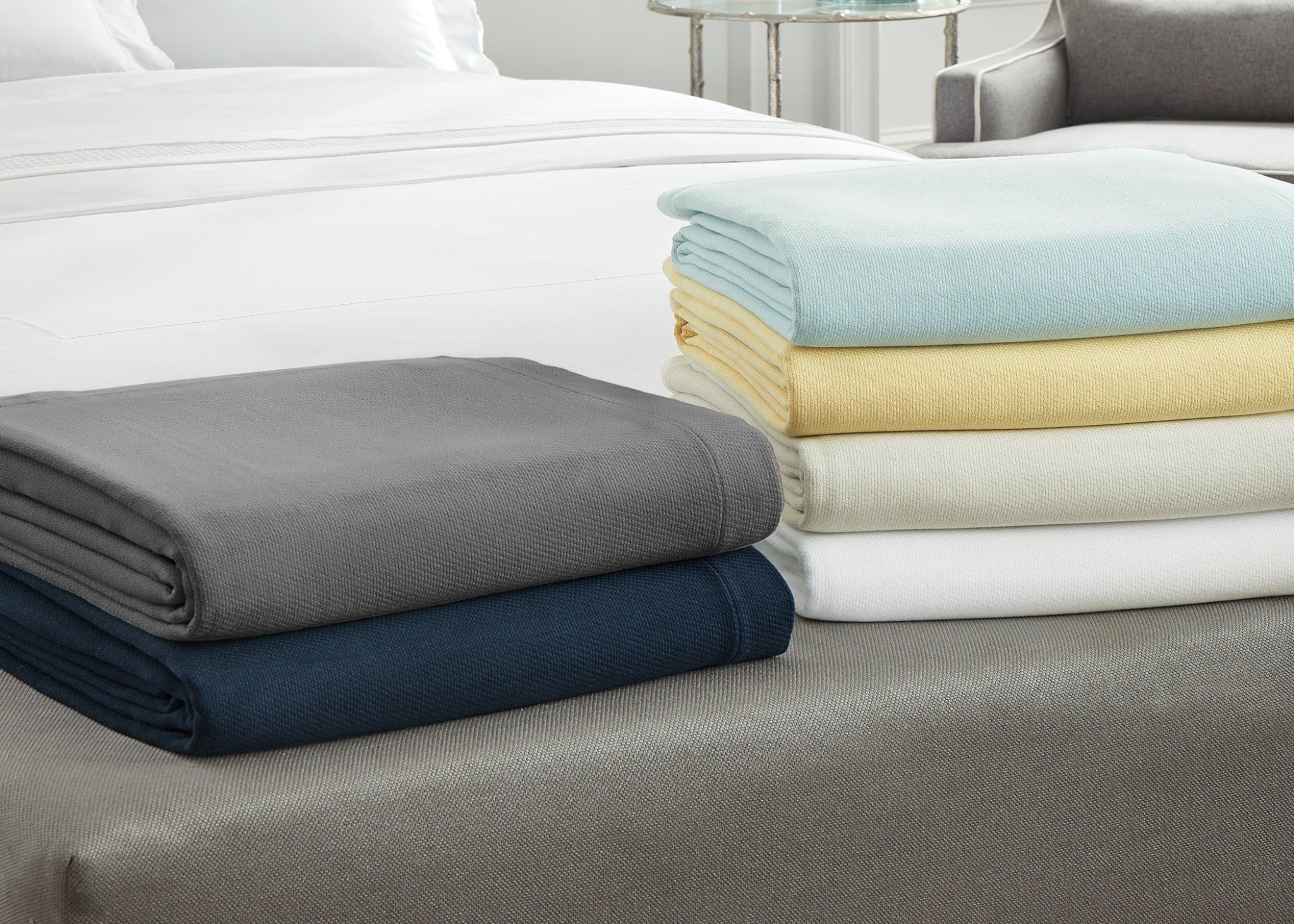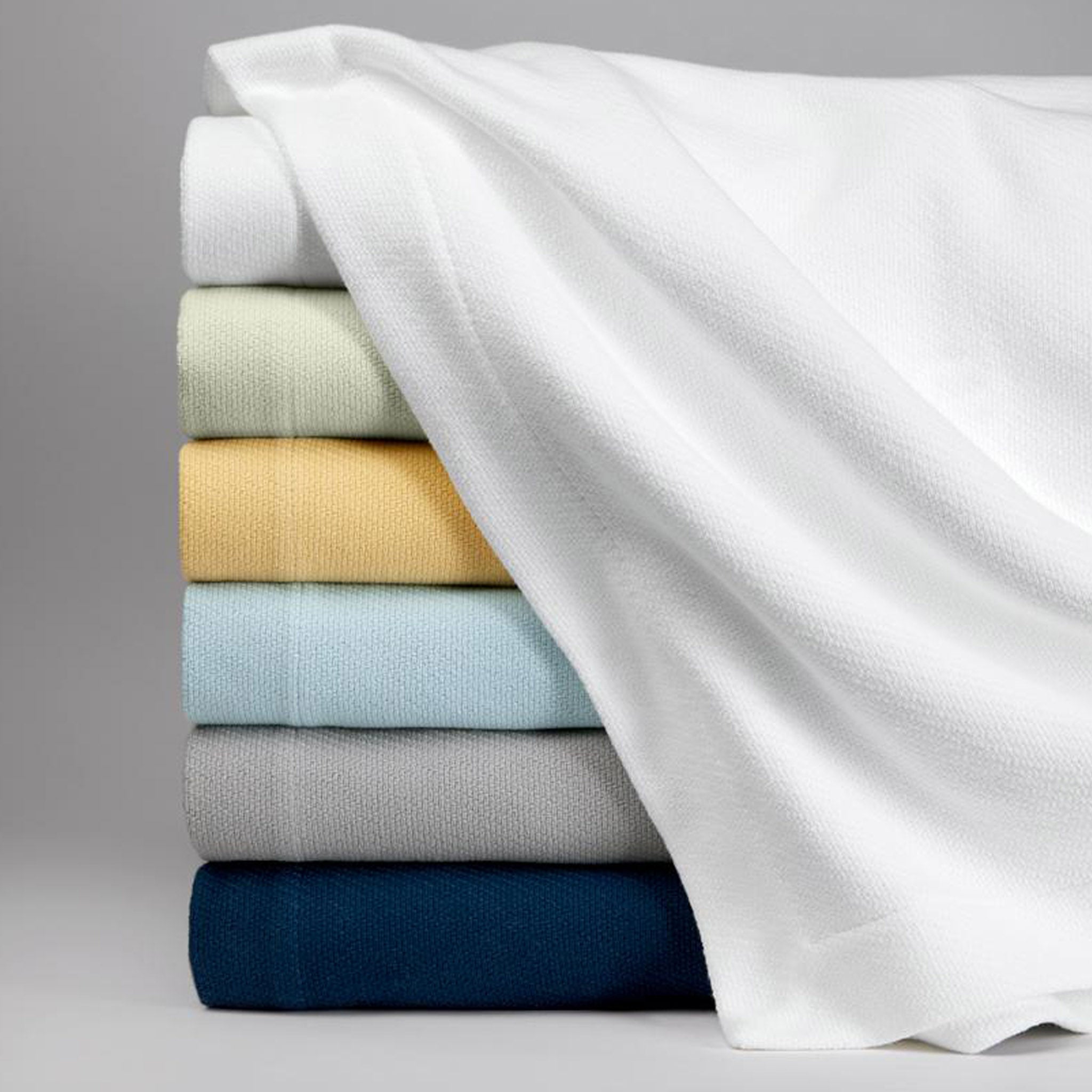 • Piece-dyed textural-weave blanket.