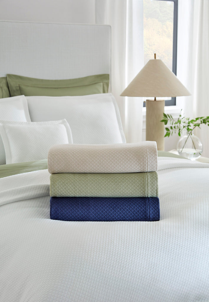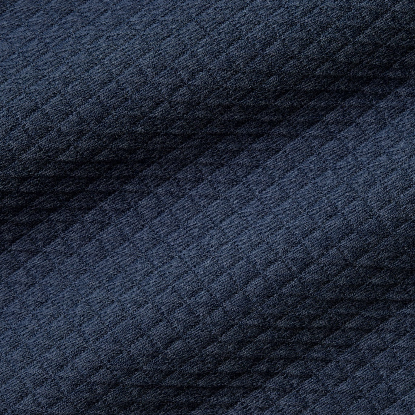 - Minimalist pre-shrunk piqué matelassé, finished with precise double needle stitching for a subtle diamond finish
