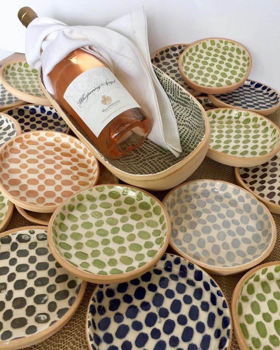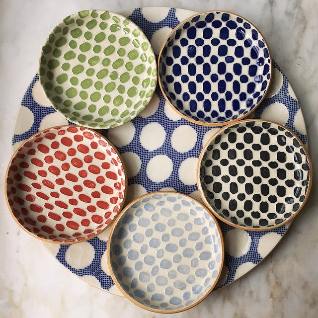 Stunning handmade stoneware wine coasters with Terrafirma Ceramics' Dot Pattern in an assortment of hand painted colors. Beauty in texture, pattern, and color.