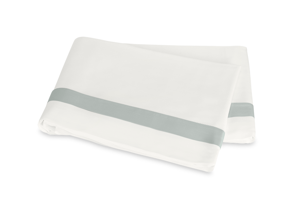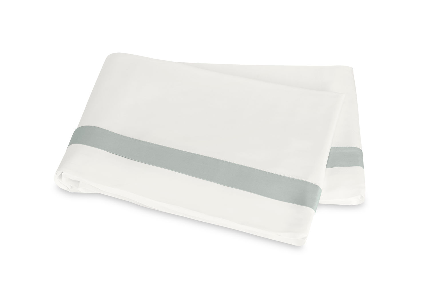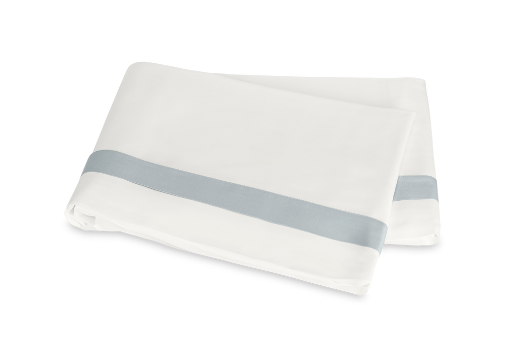 Matouk's beloved Nocturne sateen with a pleated complementary color double flange, finished with a delicate hemstitch