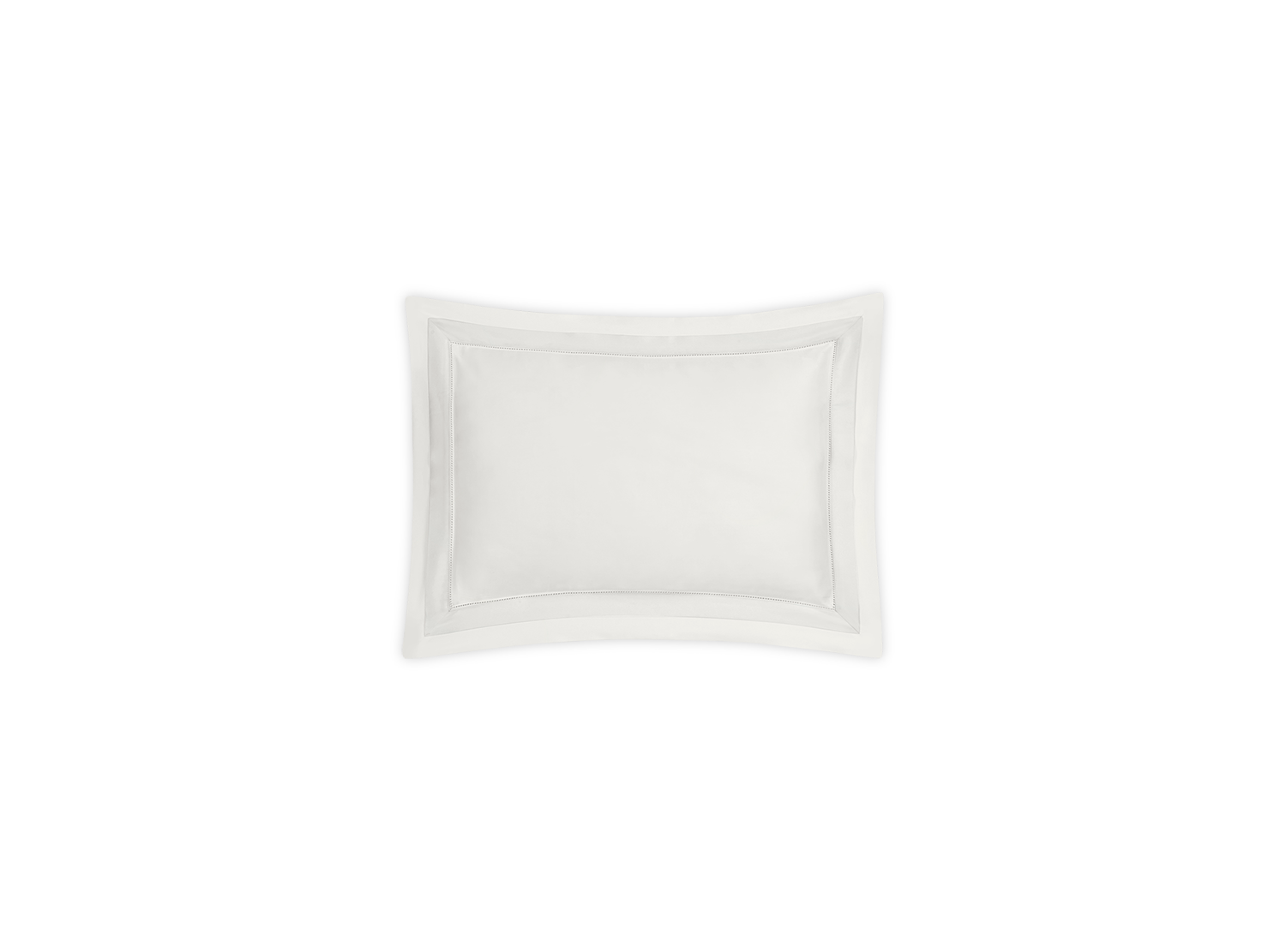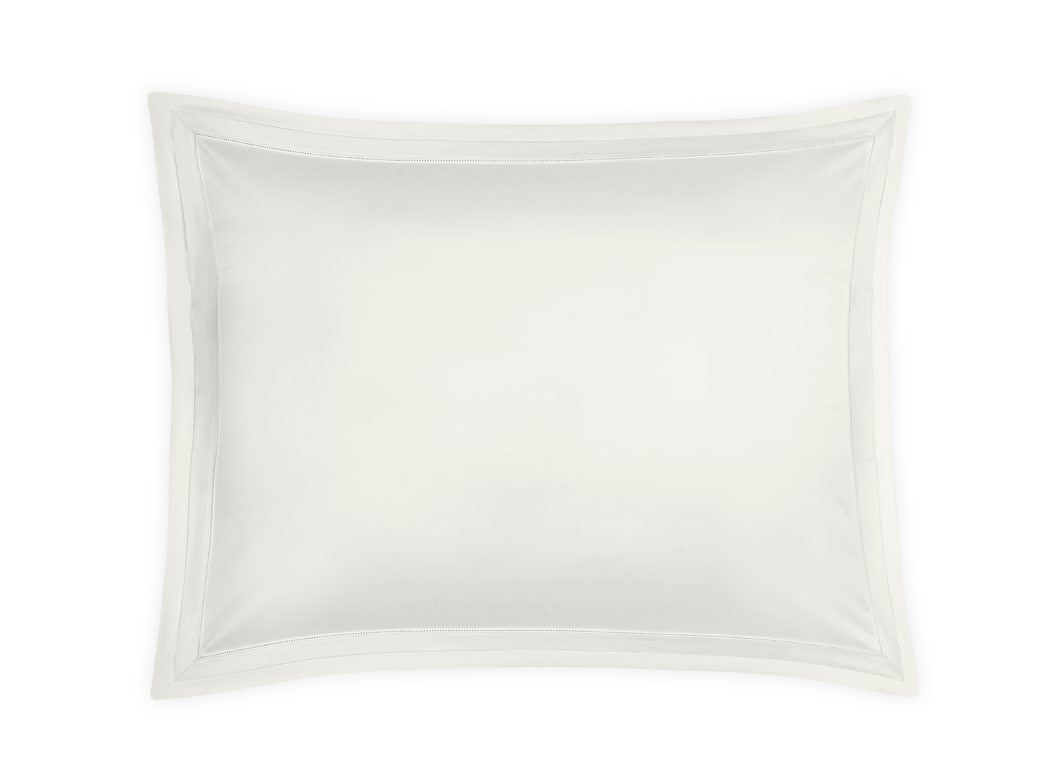 Matouk's beloved Nocturne sateen with a pleated complementary color double flange, finished with a delicate hemstitch