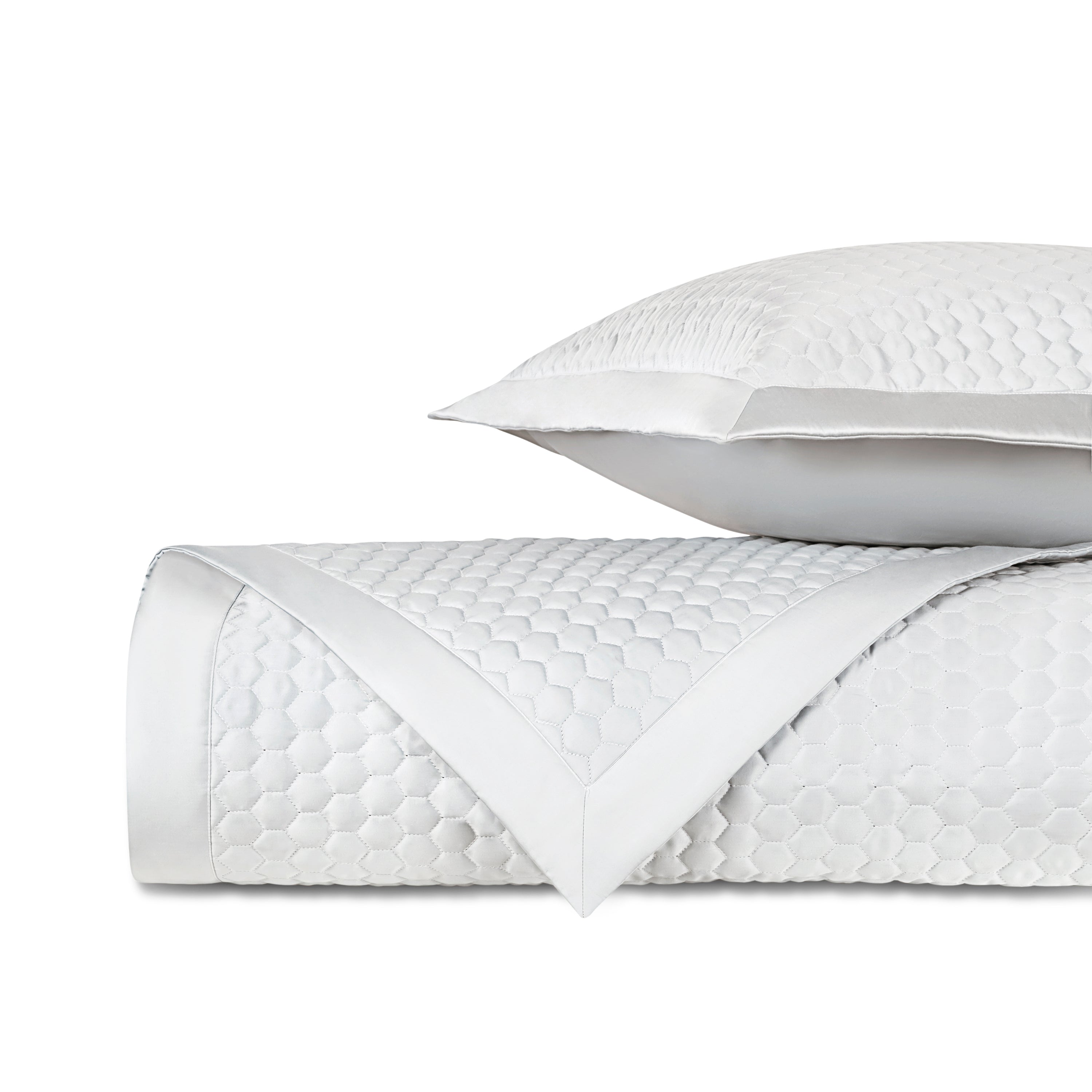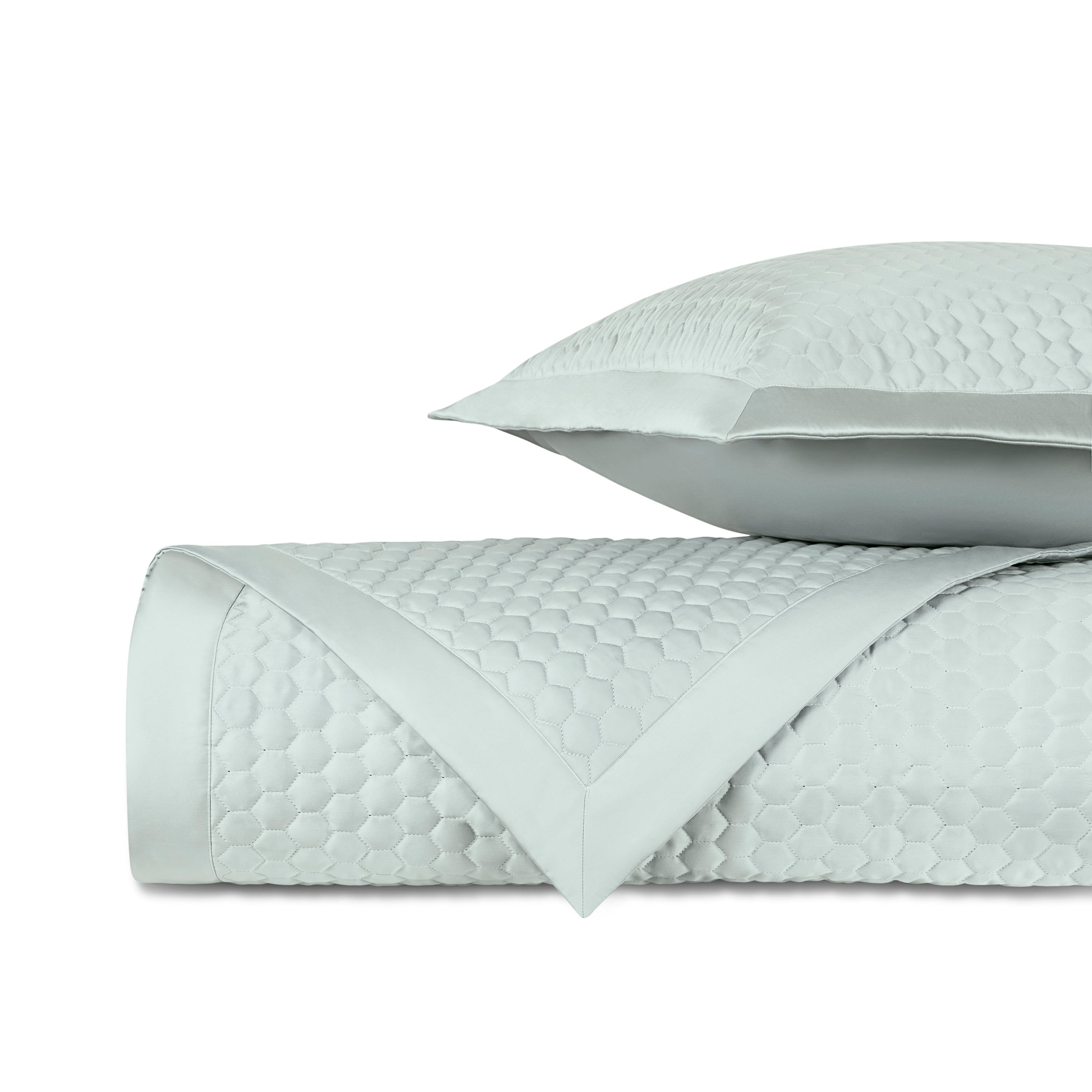 Apiary coverlets and shams are quilted in a honeycomb pattern on luxurious 100% Egyptian cotton sateen. Available in a wide range of colors to choose from, Apiary is made-to-order, so custom options are available. Please contact us for more information.