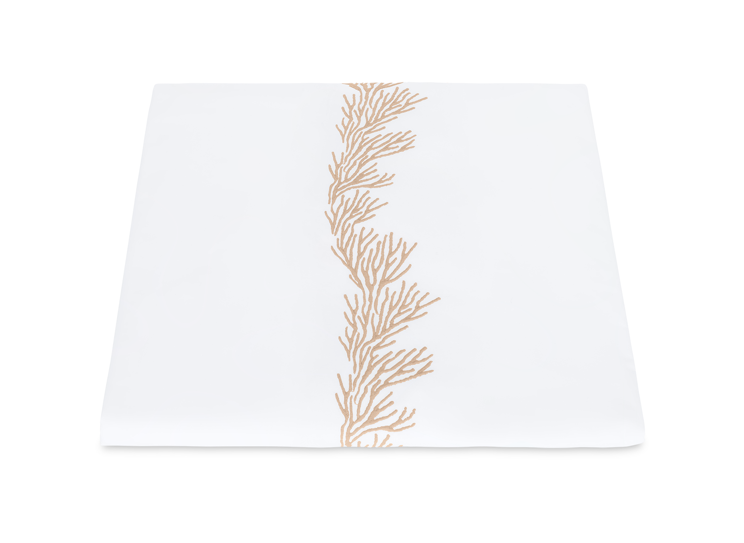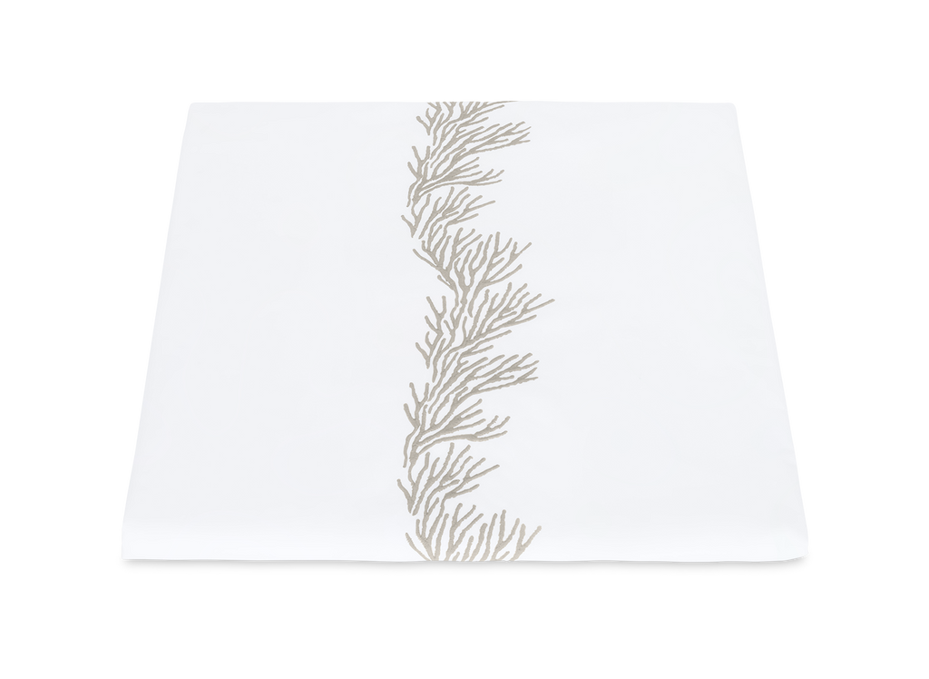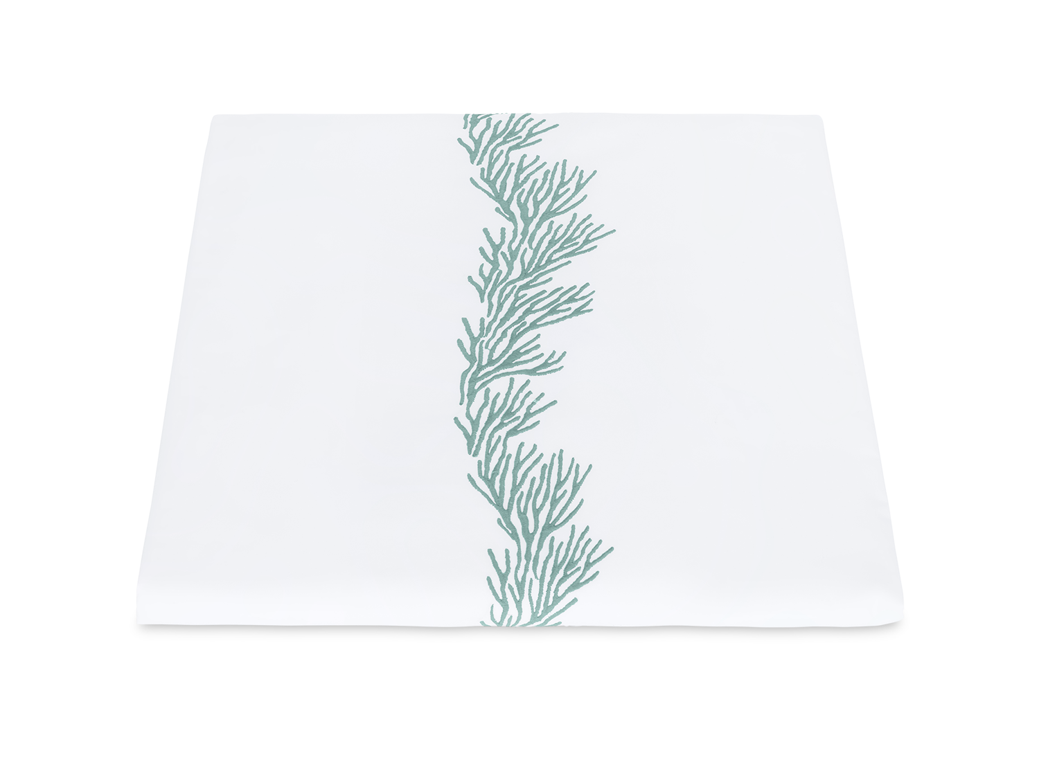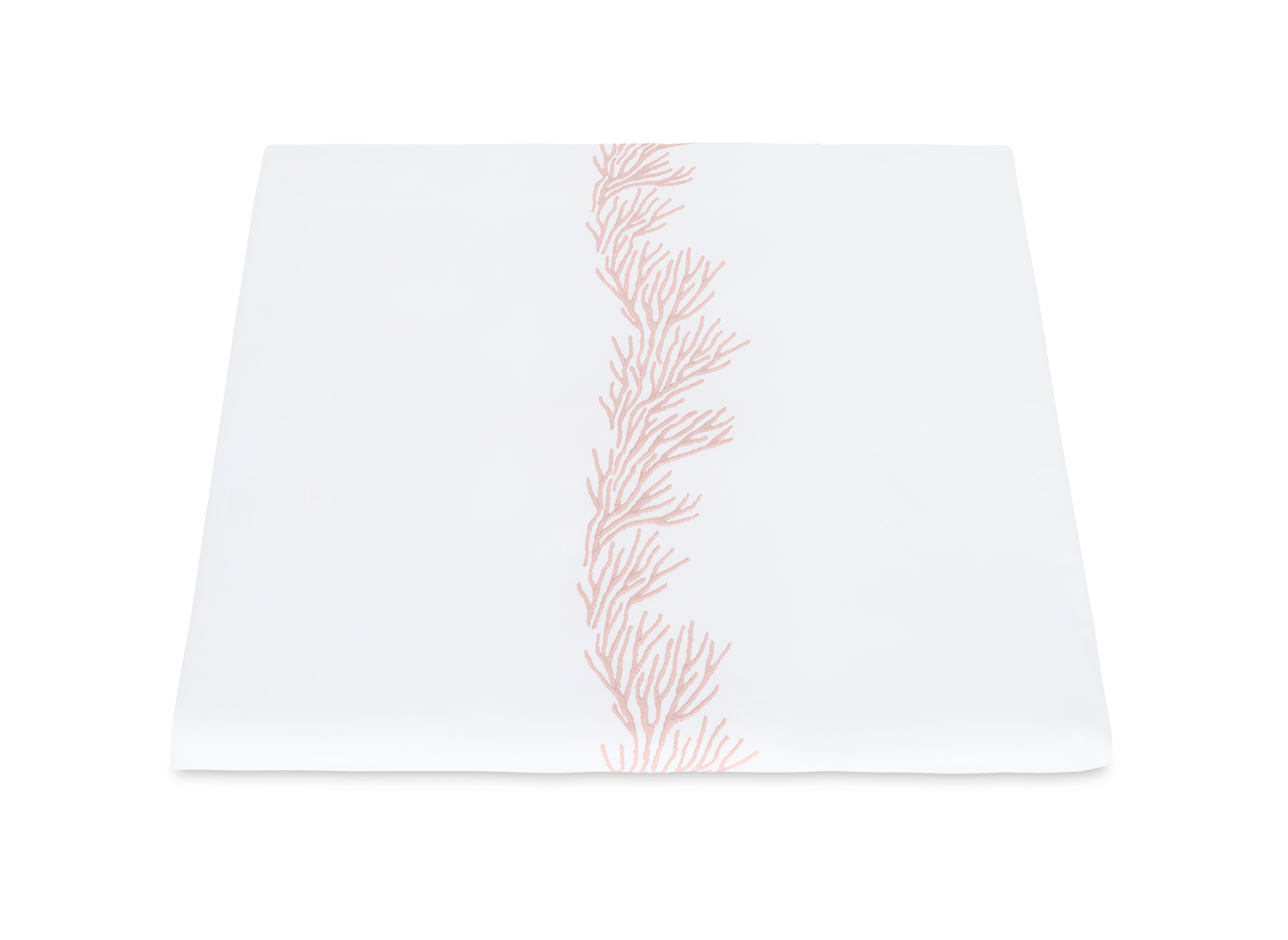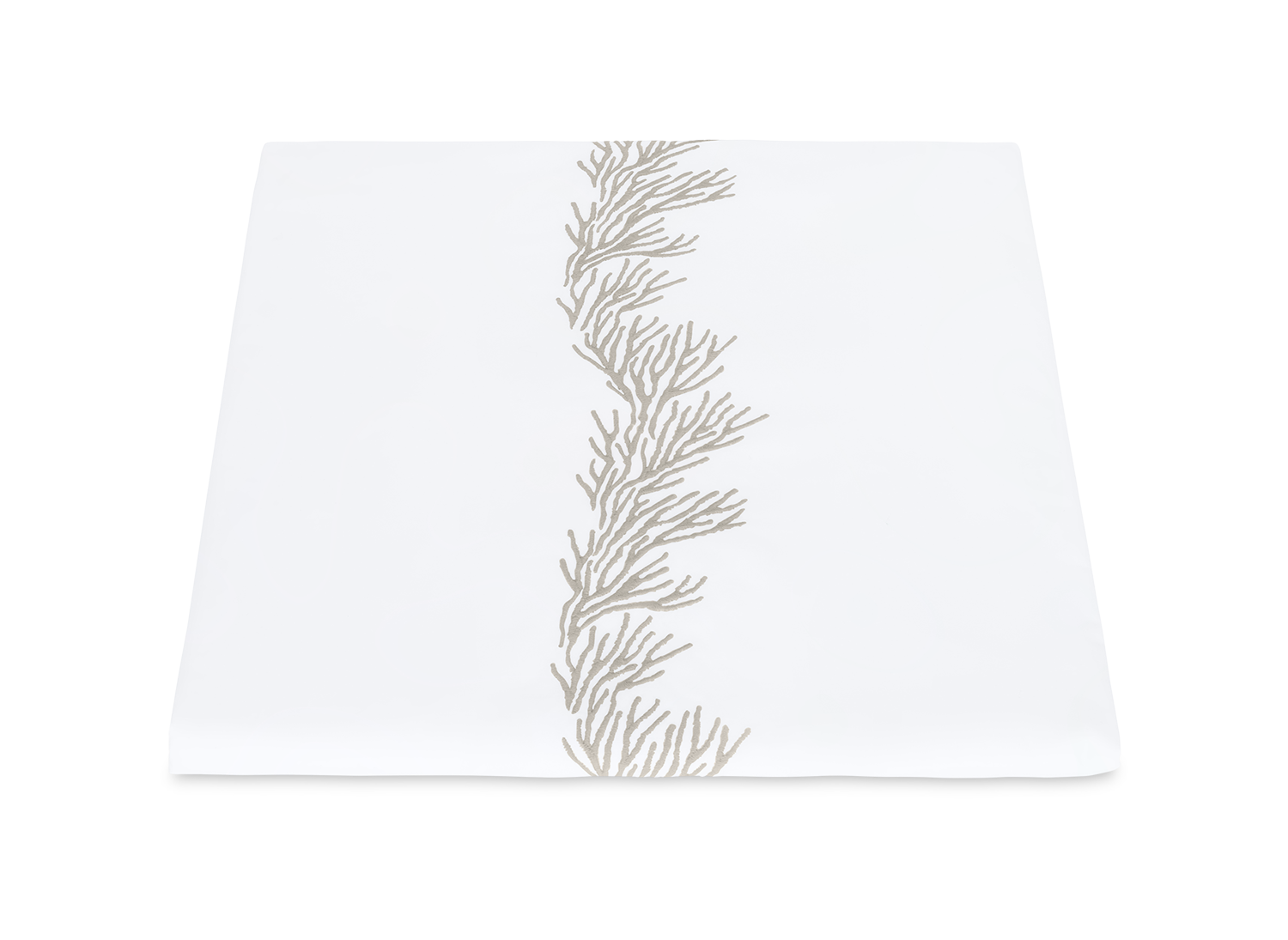 Feathery coral inspired embroidery on white Ceylon percale sheeting fabric.