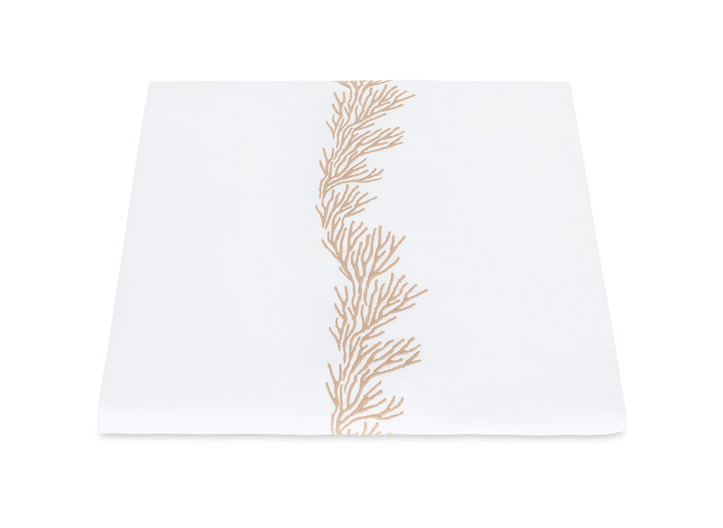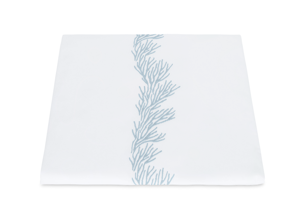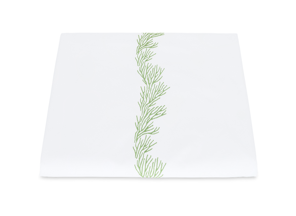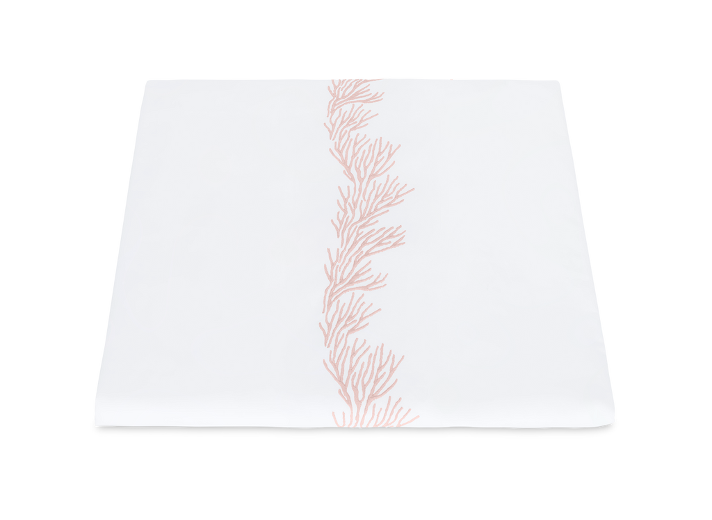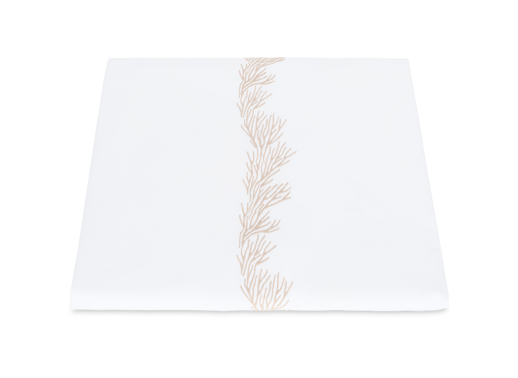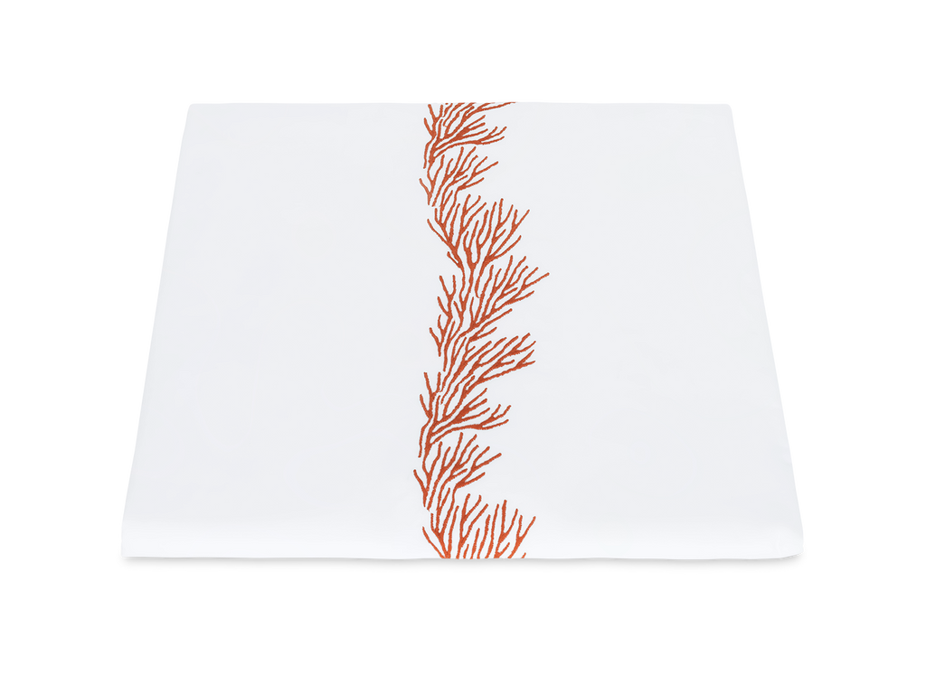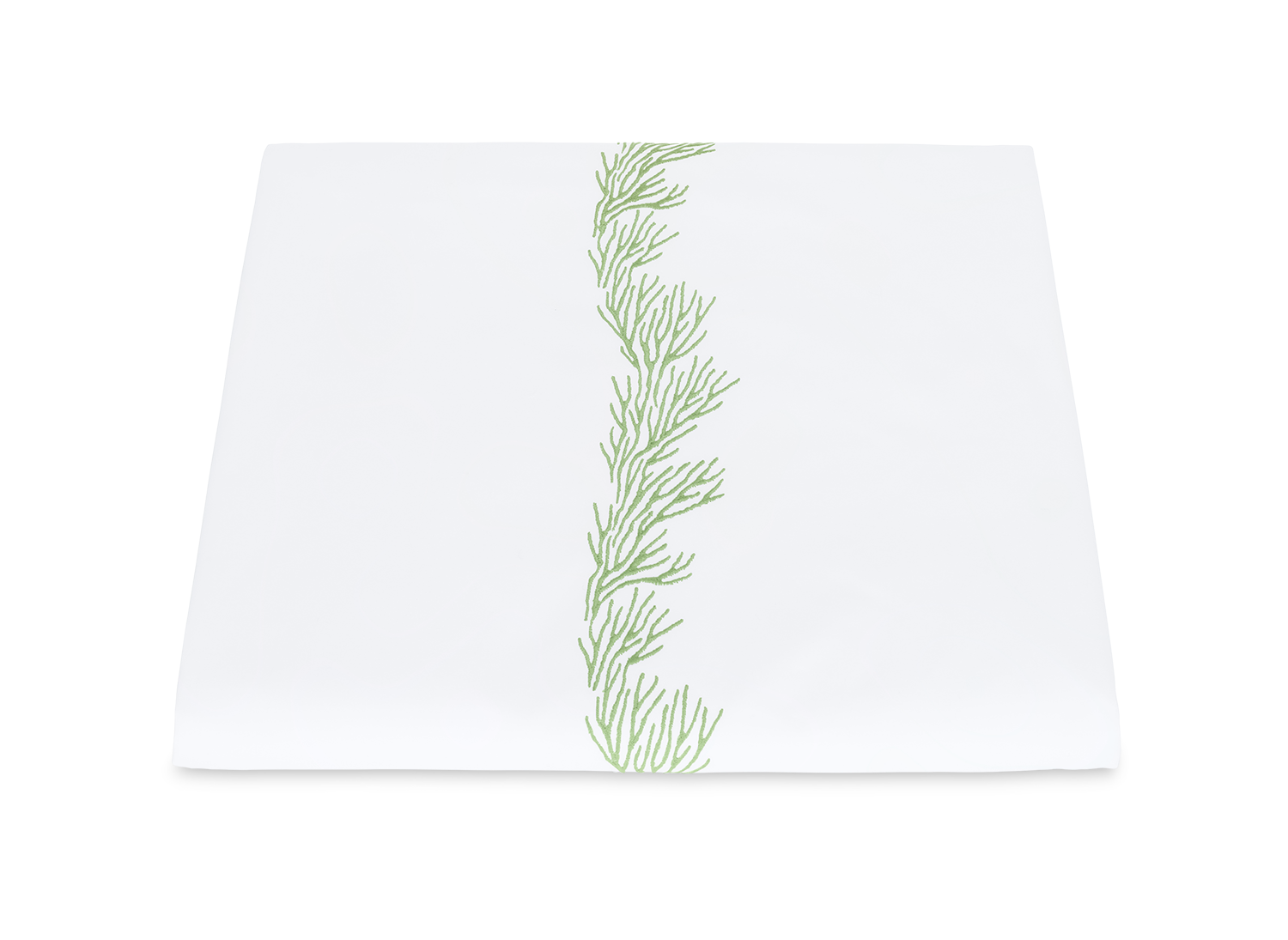 Feathery coral inspired embroidery on white Ceylon percale sheeting fabric.