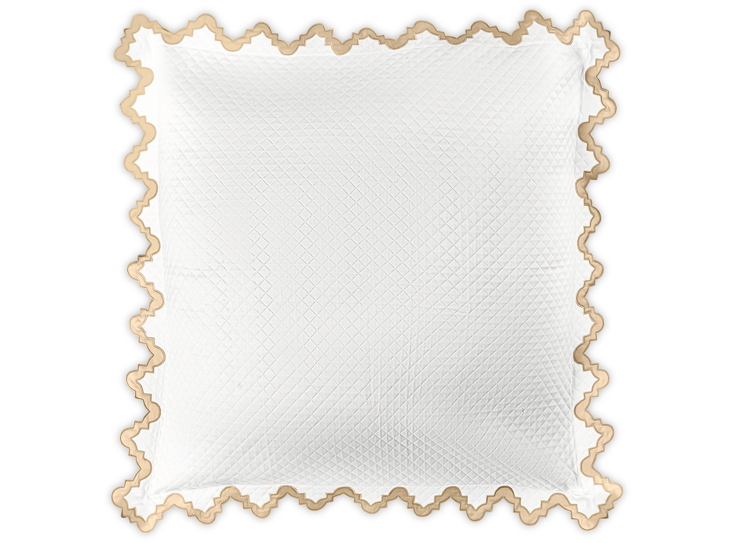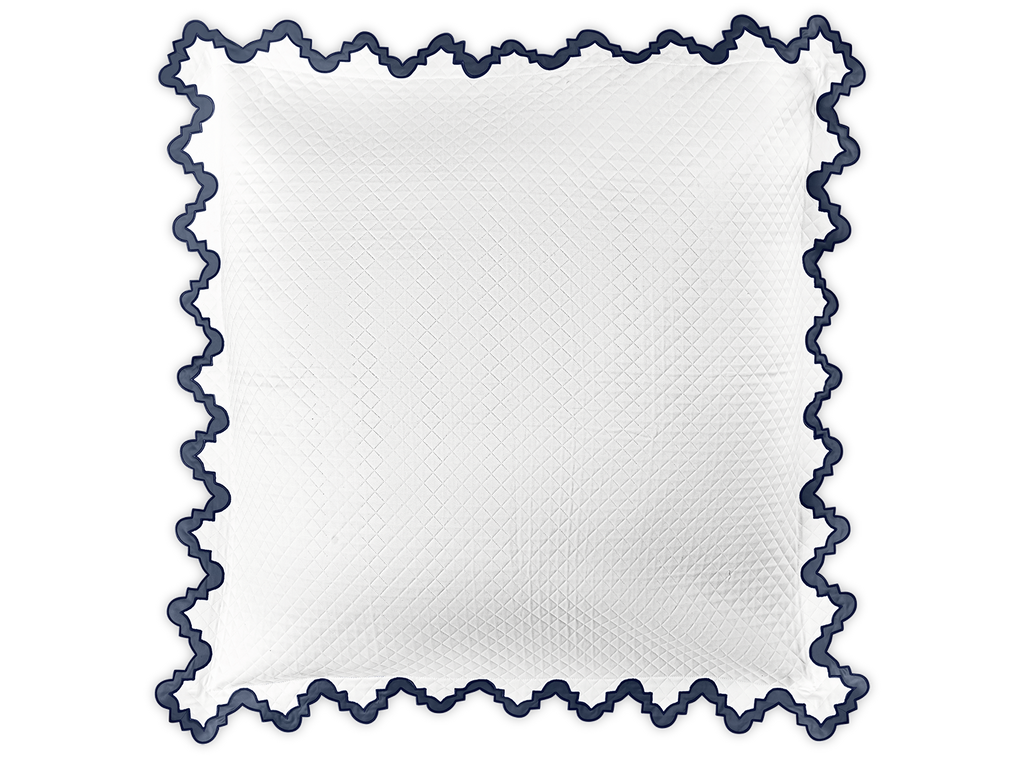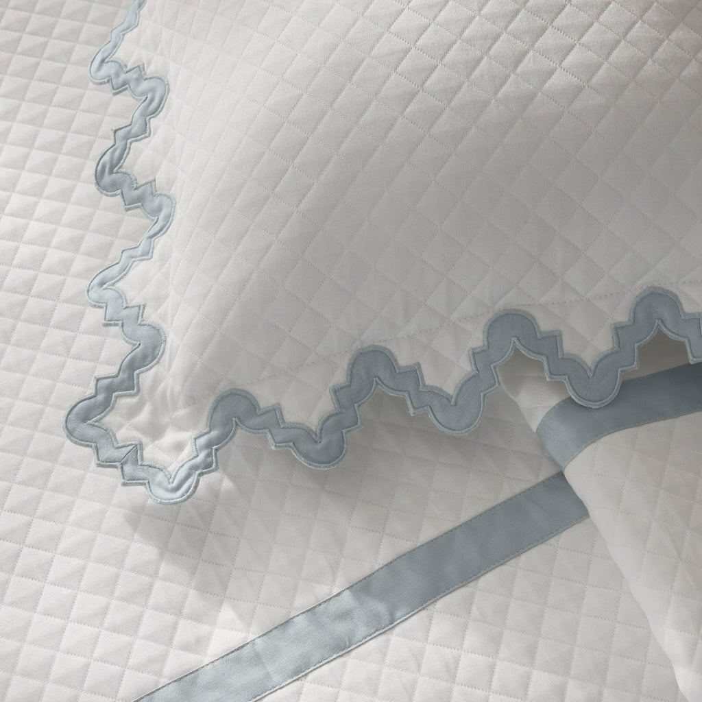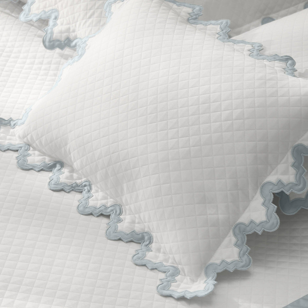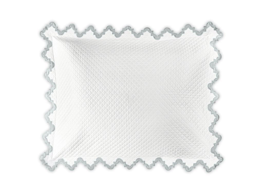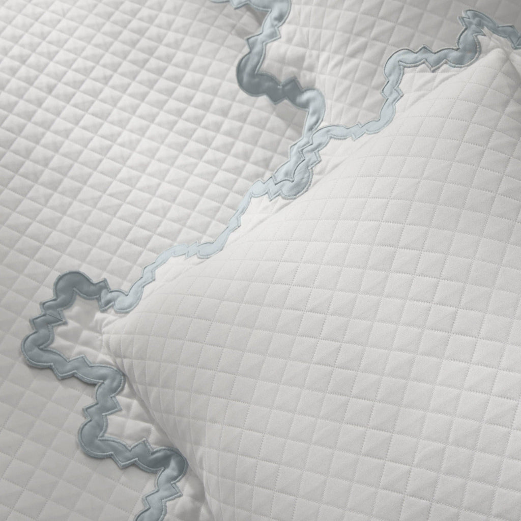 Inspired by the elegant geometry of Moroccan tile, Aziza appliqué adds a fresh boldness to diamond Petra 100% cotton matelassé