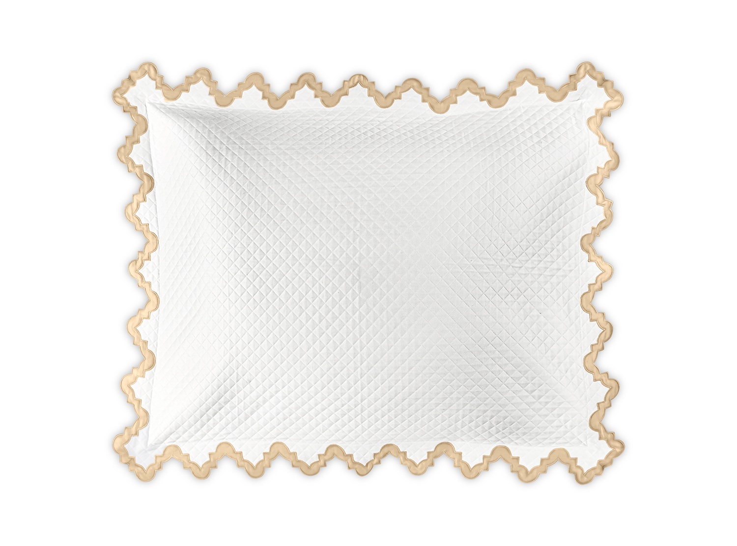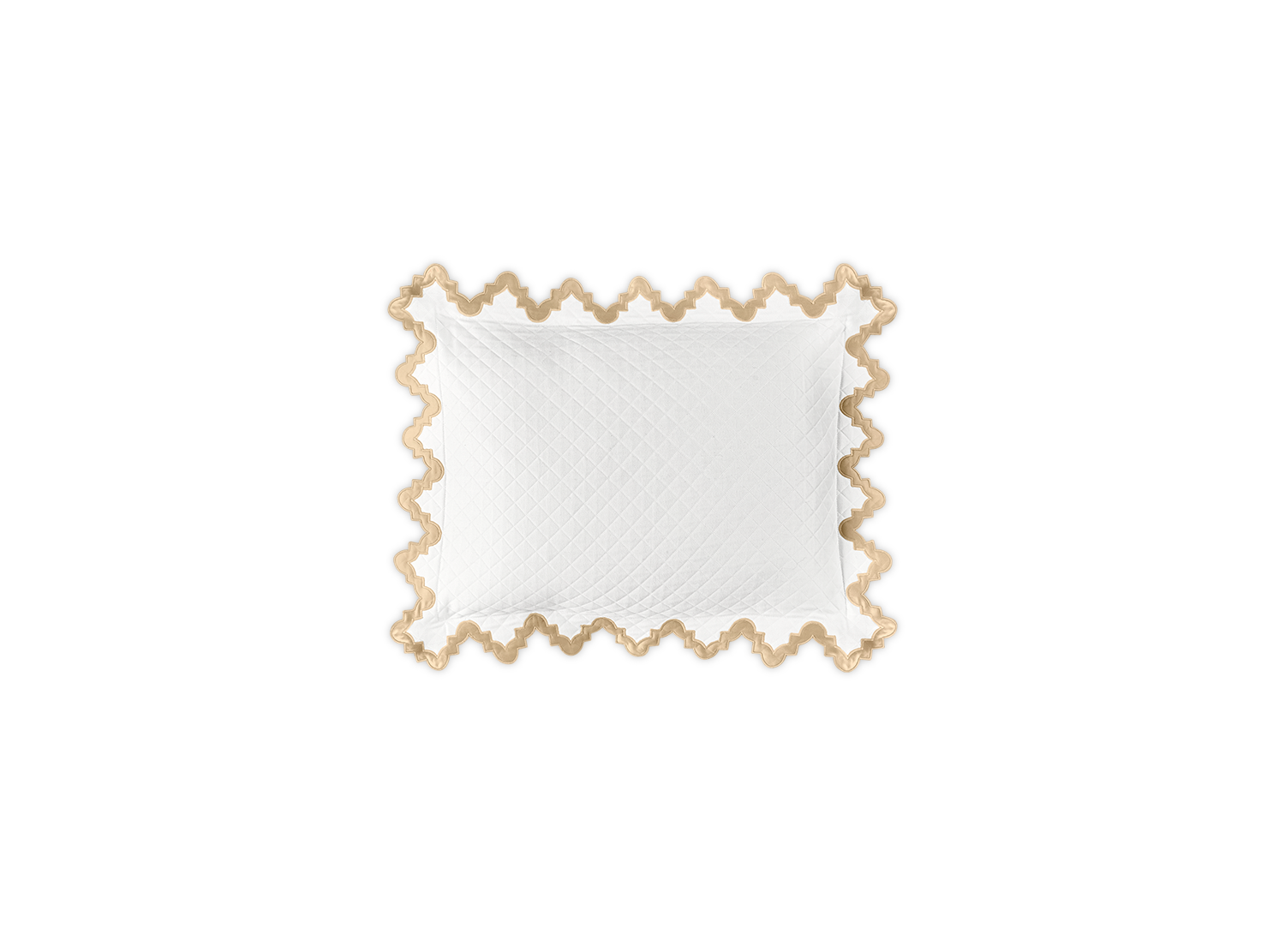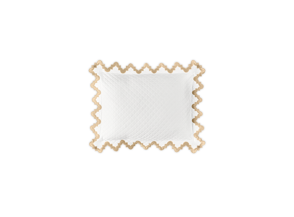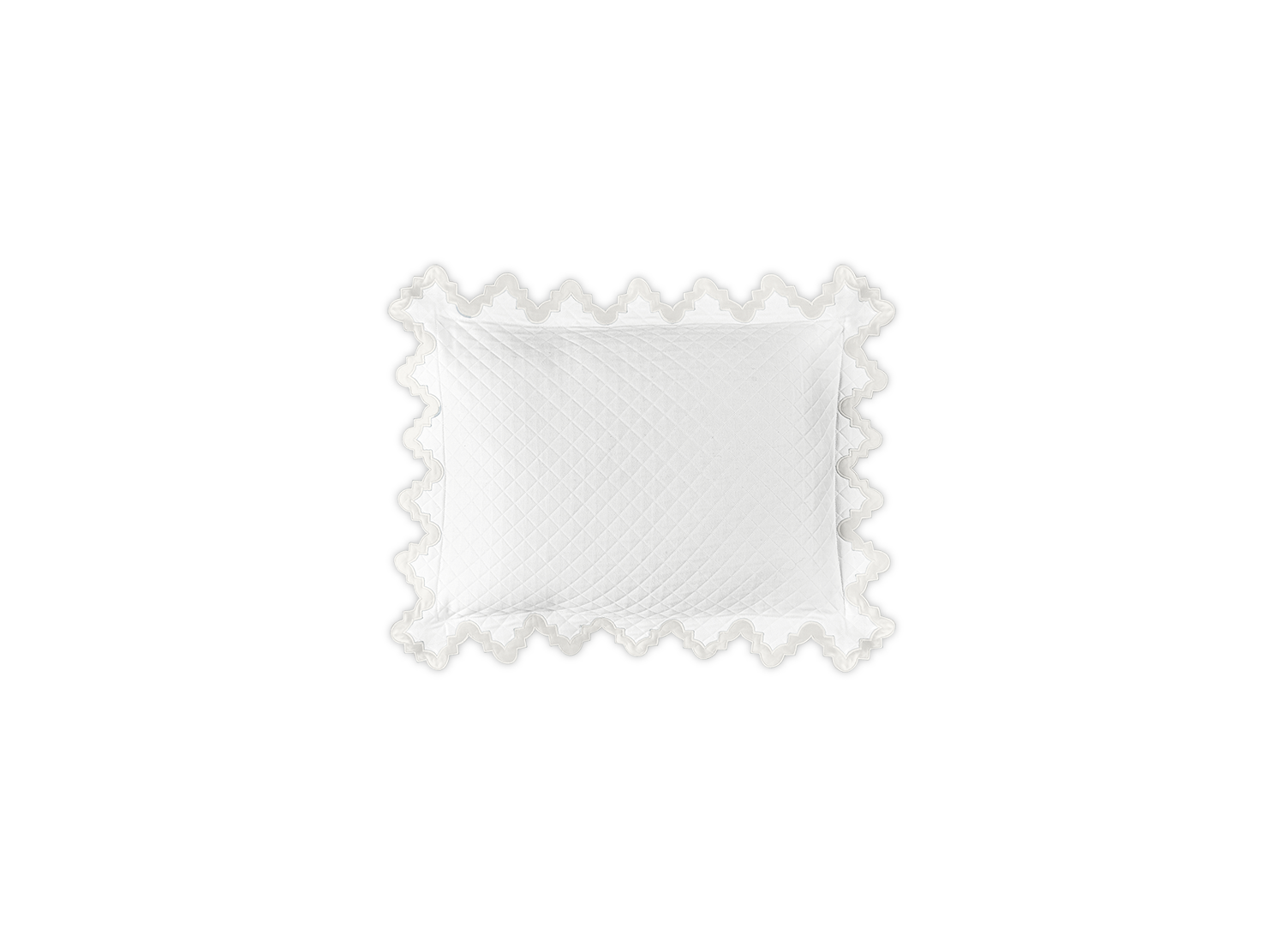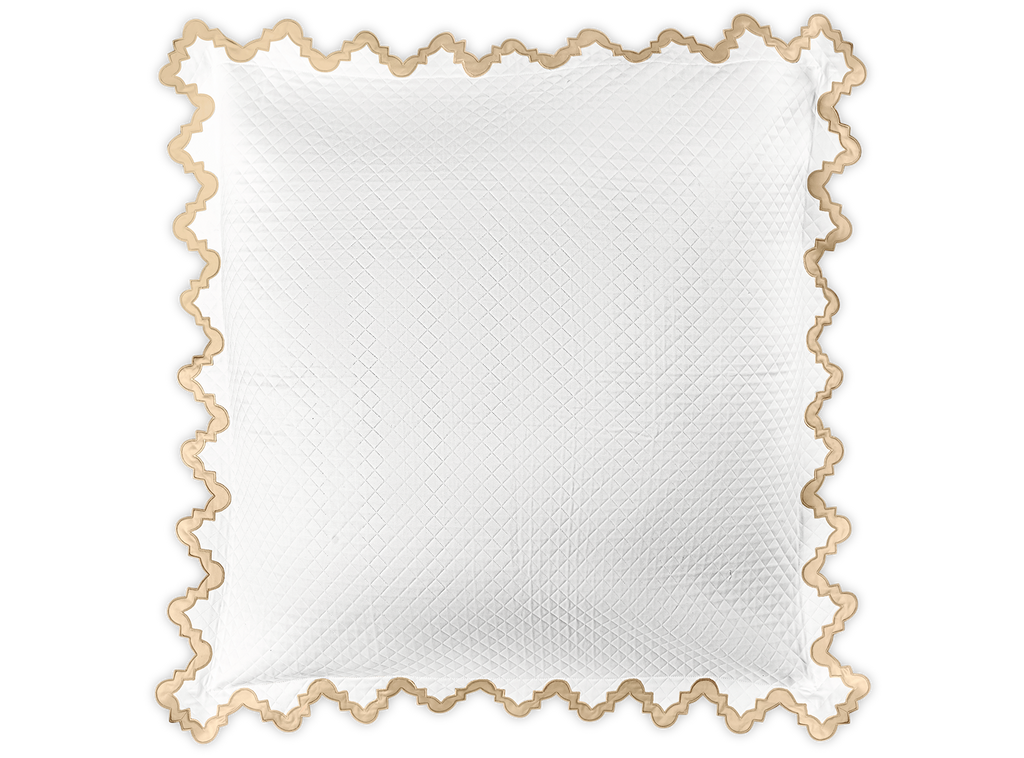 Inspired by the elegant geometry of Moroccan tile, Aziza appliqué adds a fresh boldness to diamond Petra 100% cotton matelassé