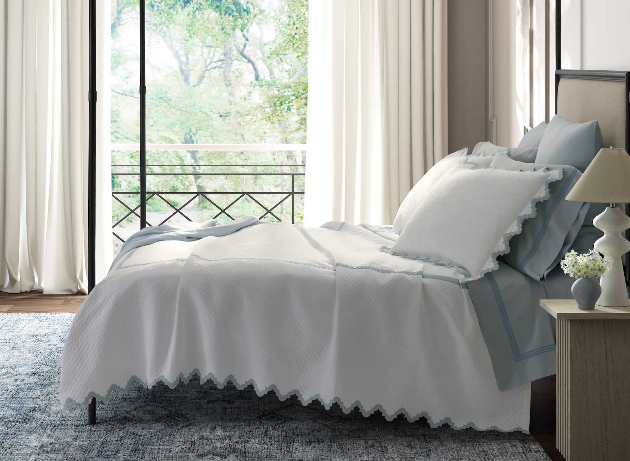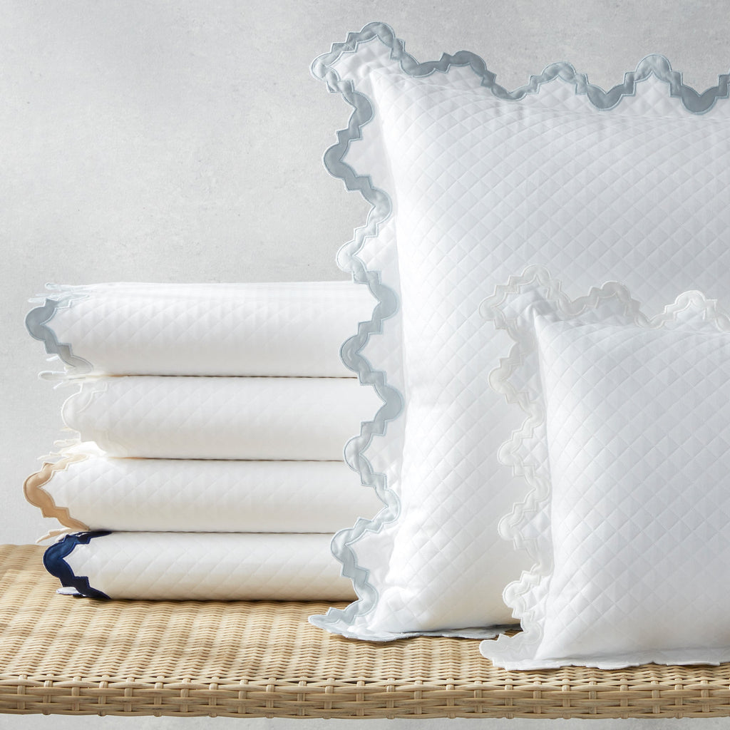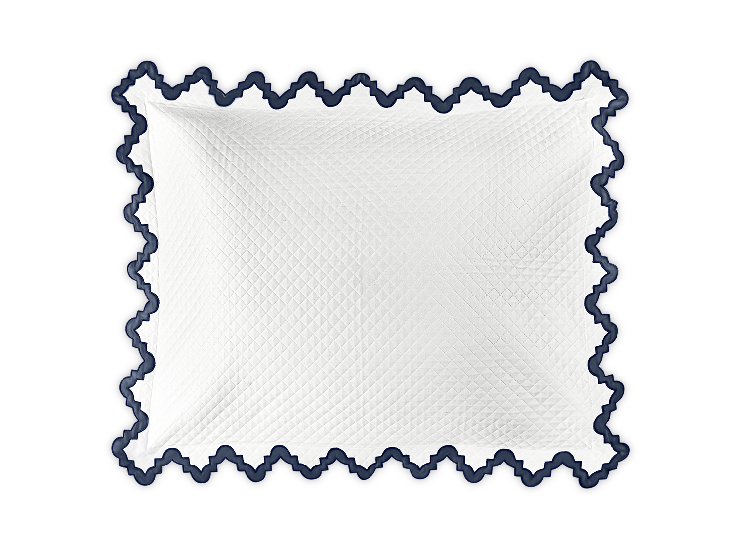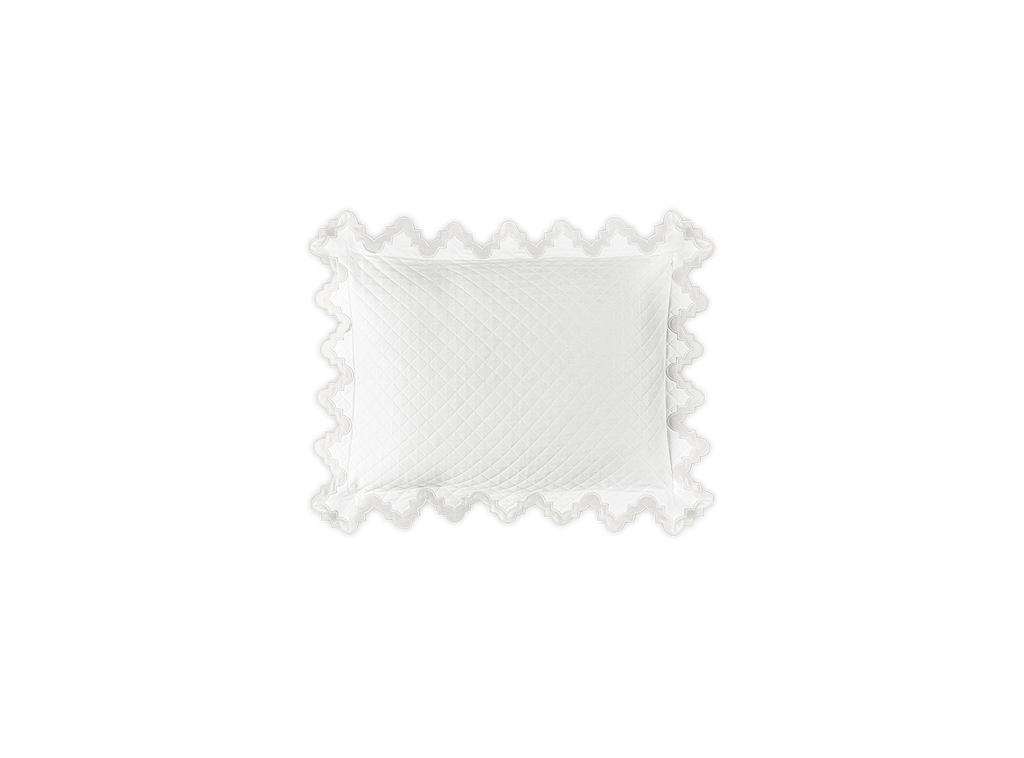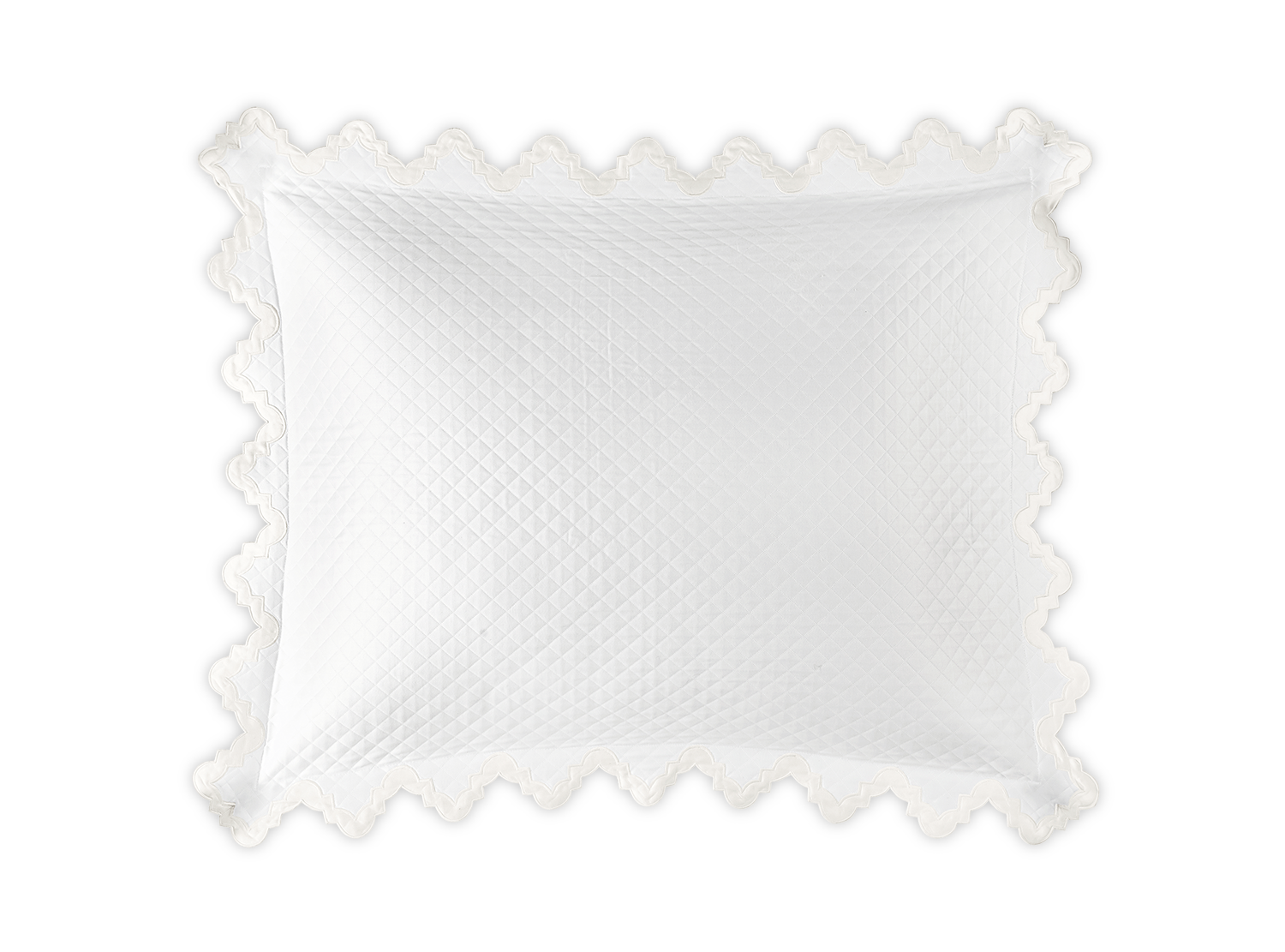 Inspired by the elegant geometry of Moroccan tile, Aziza appliqué adds a fresh boldness to diamond Petra 100% cotton matelassé