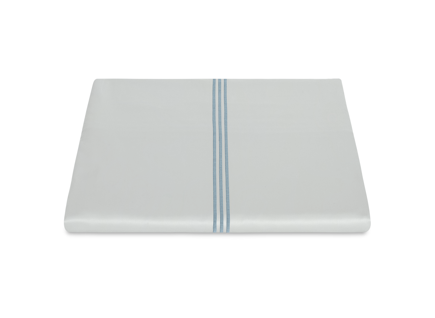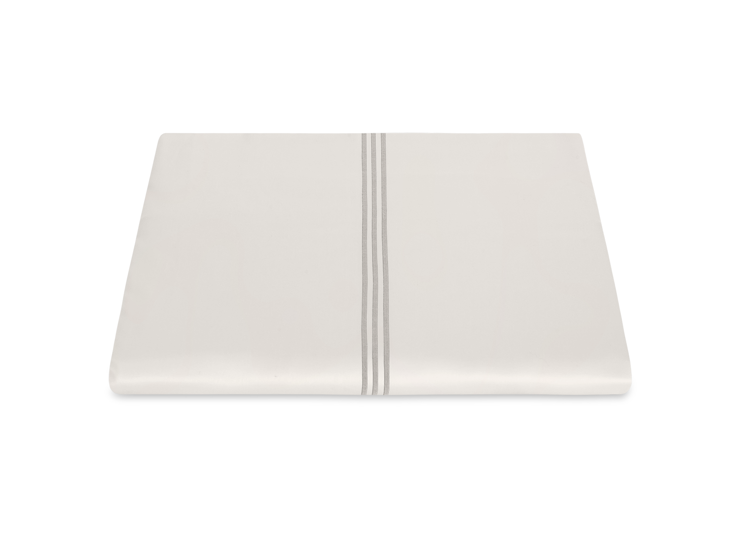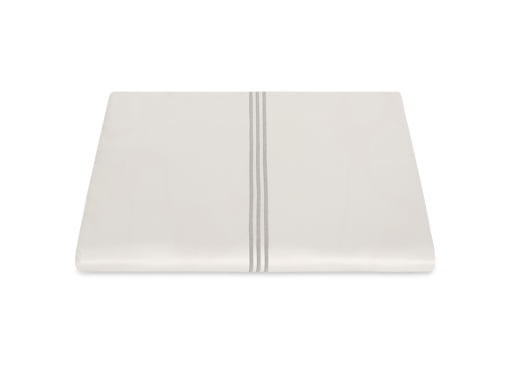 Matouk brings its signature Bel Tempo three-row-embroidery design to their beloved Nocturne sateen sheeting creating an iconic classic.