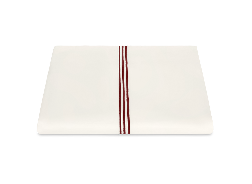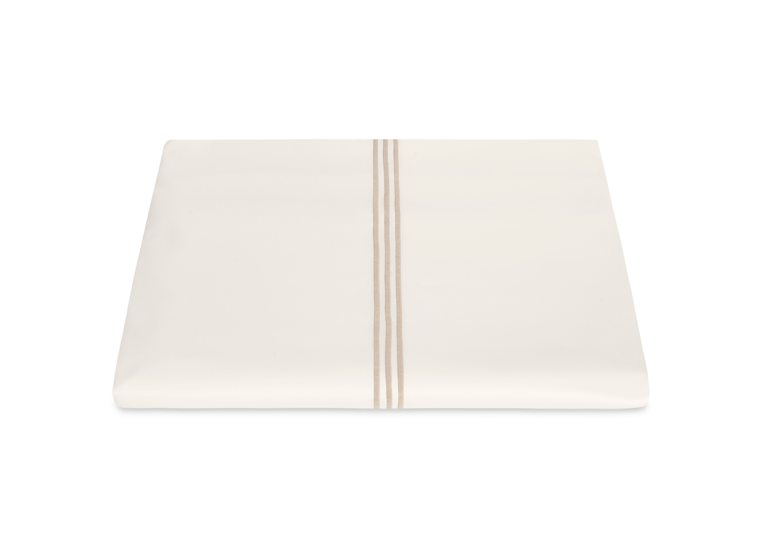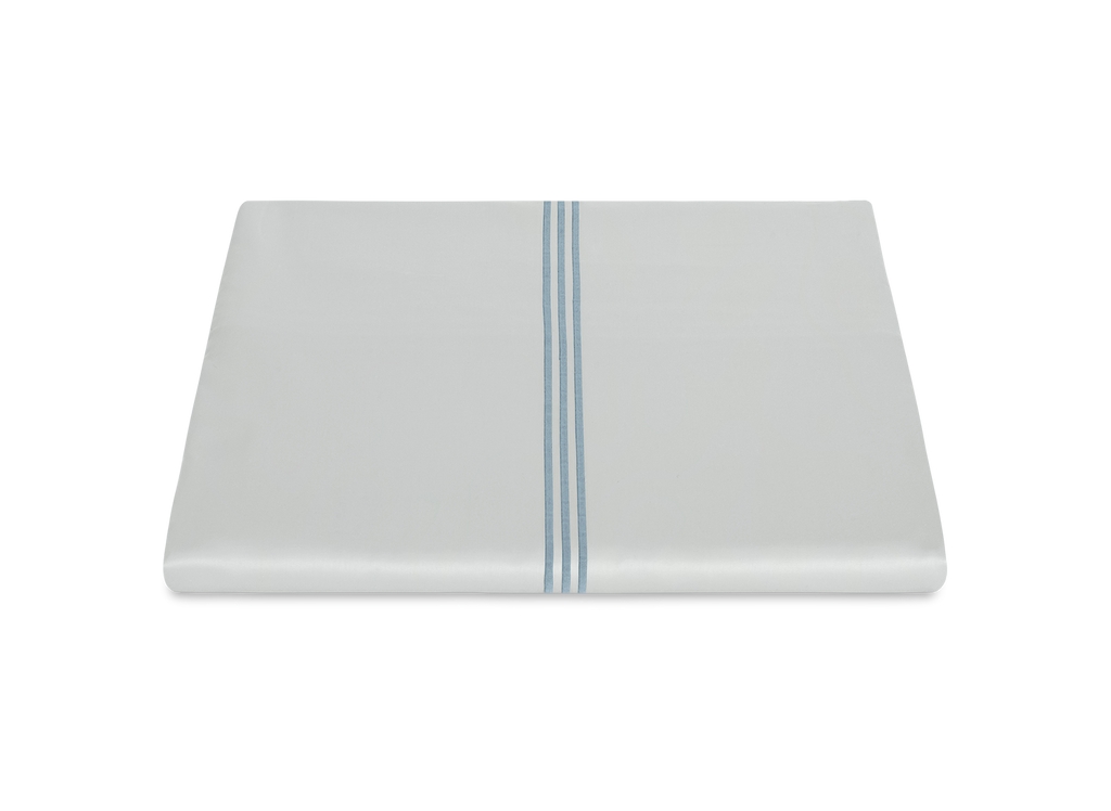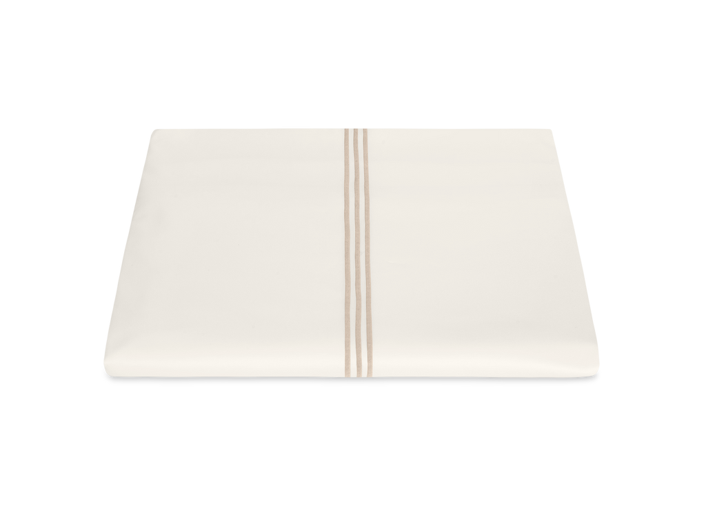 Matouk brings its signature Bel Tempo three-row-embroidery design to their beloved Nocturne sateen sheeting creating an iconic classic.