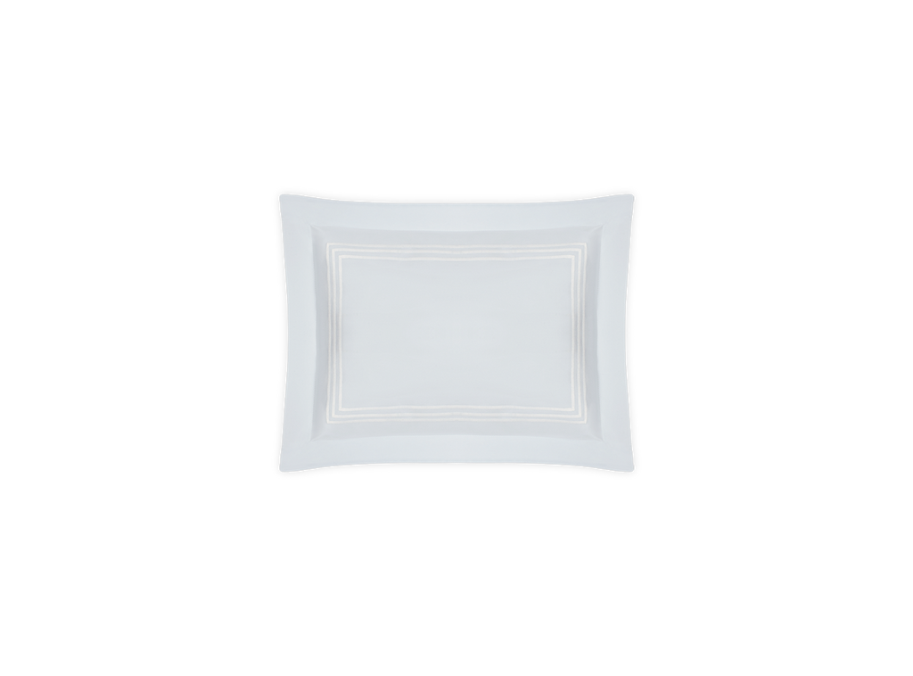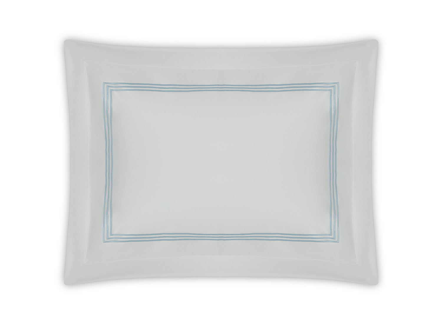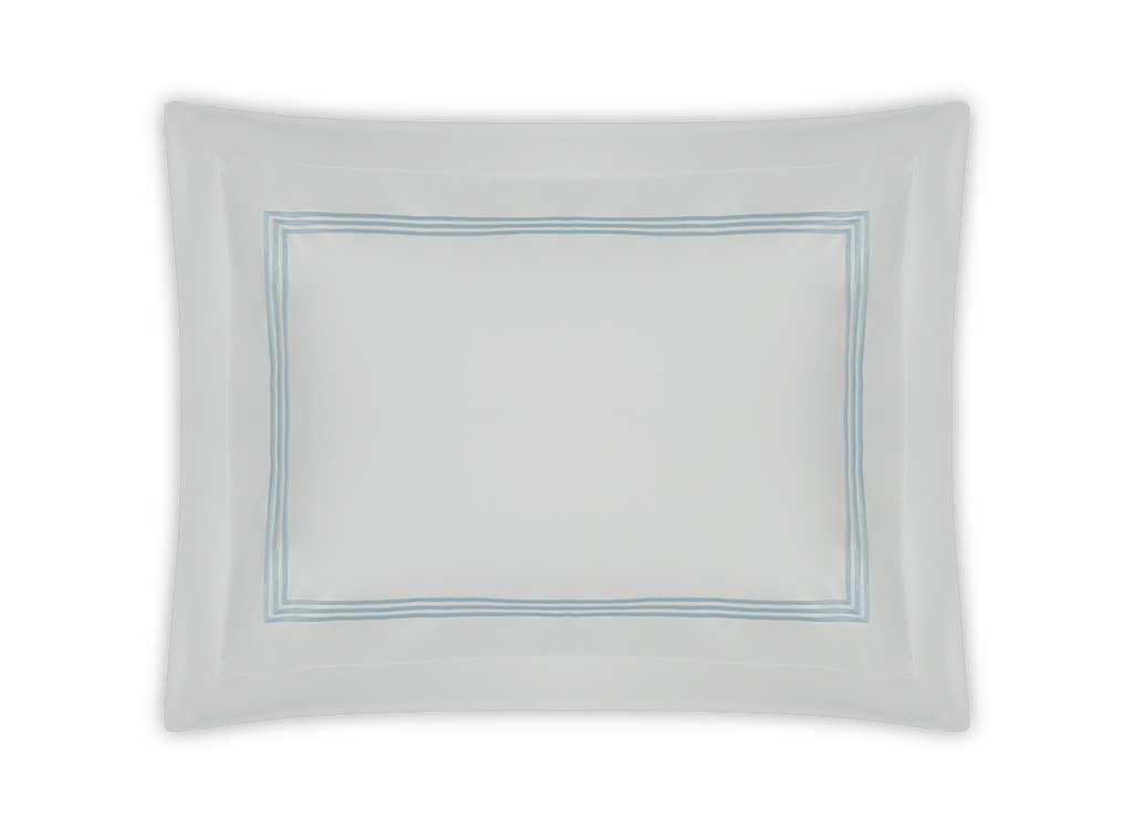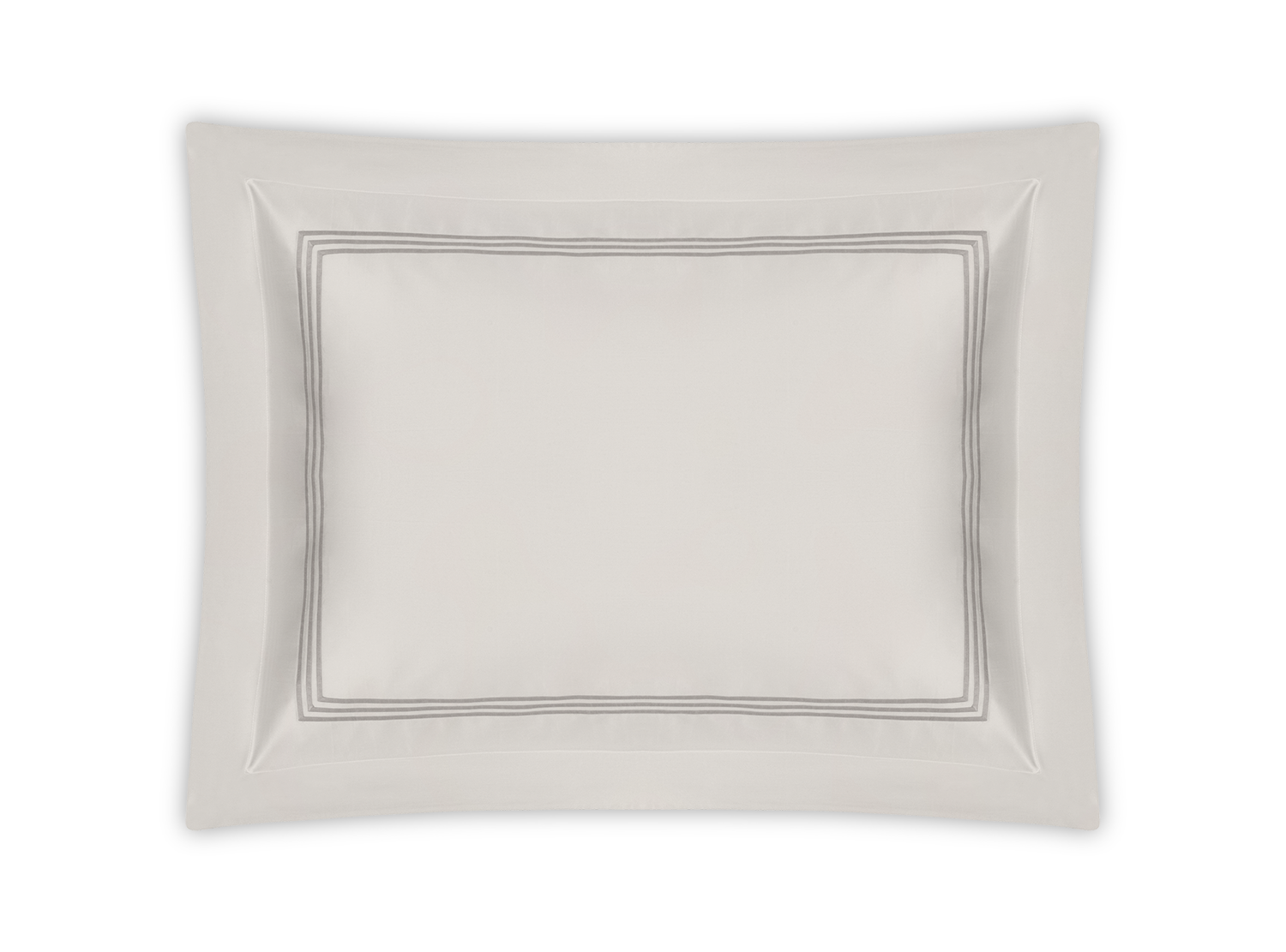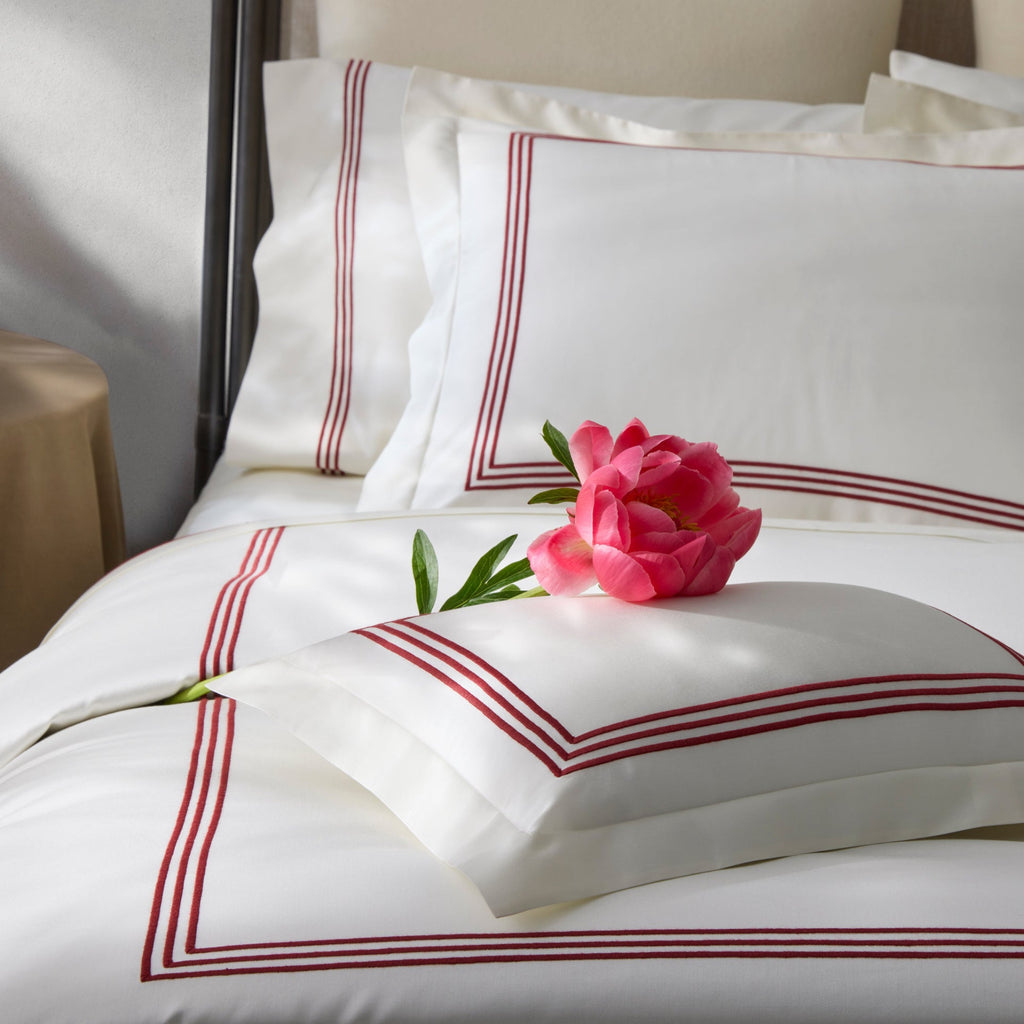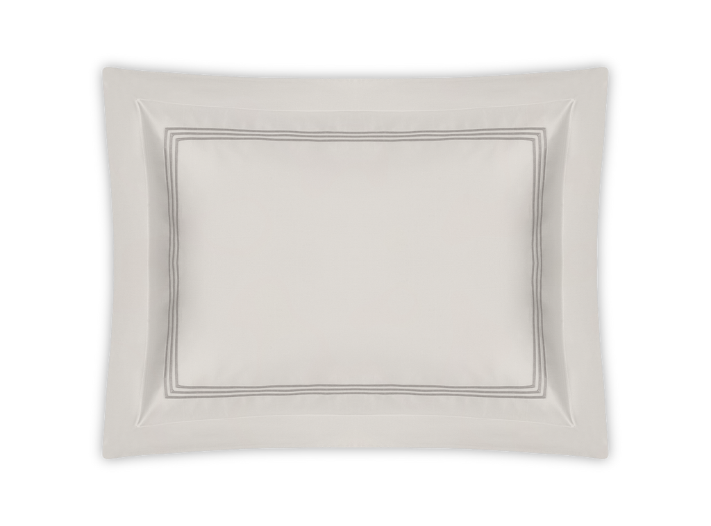 Matouk brings its signature Bel Tempo three-row-embroidery design to their beloved Nocturne sateen sheeting creating an iconic classic.