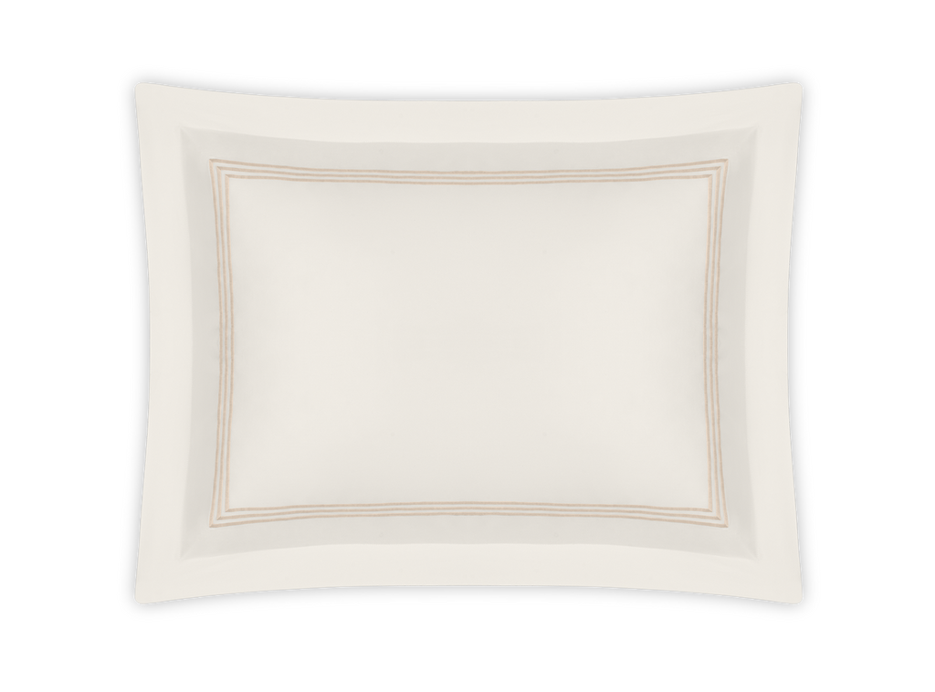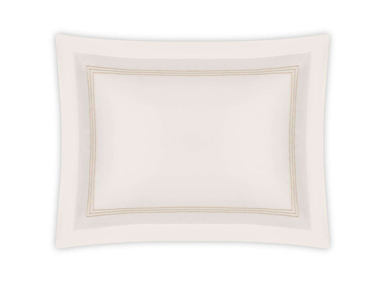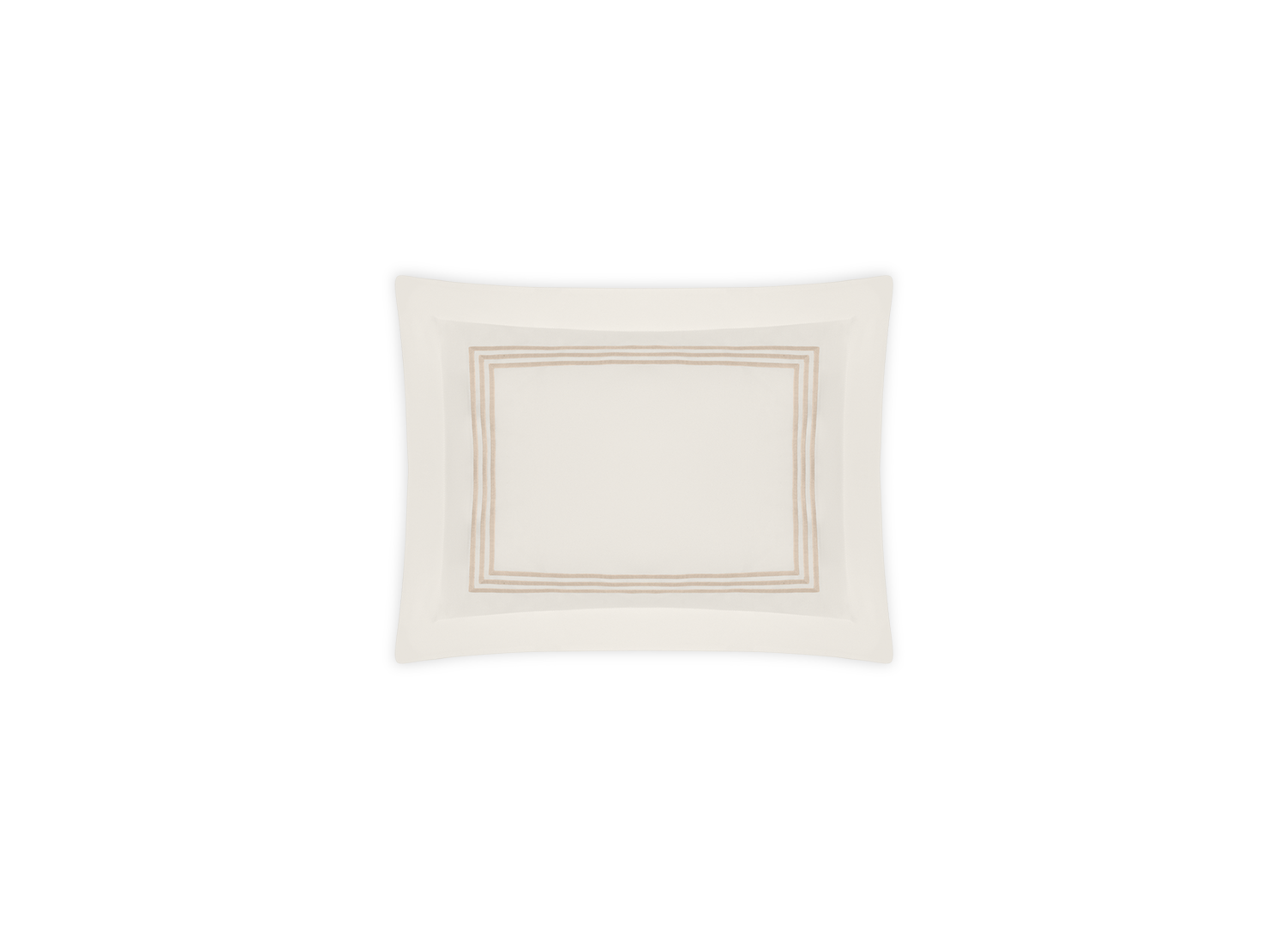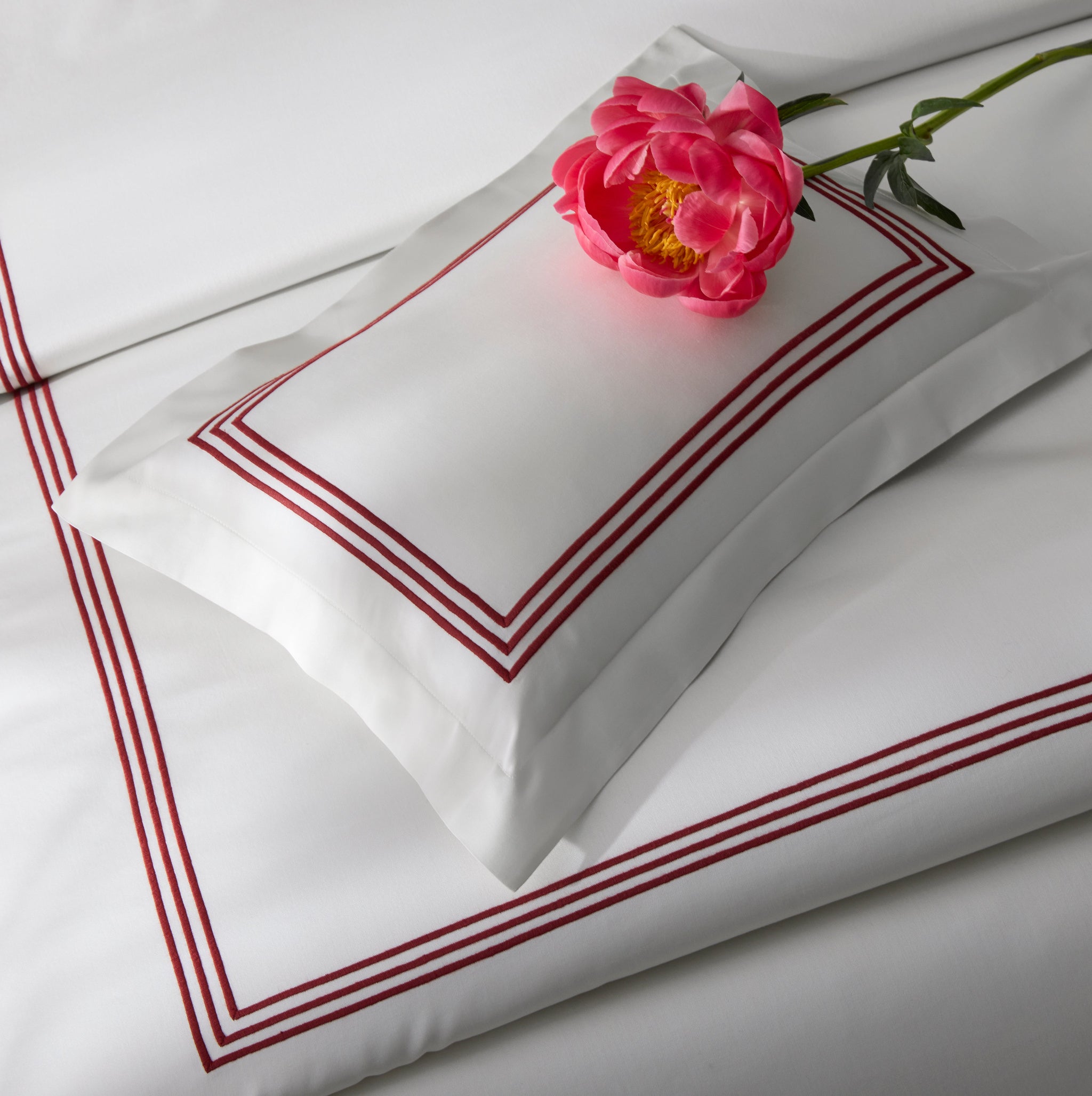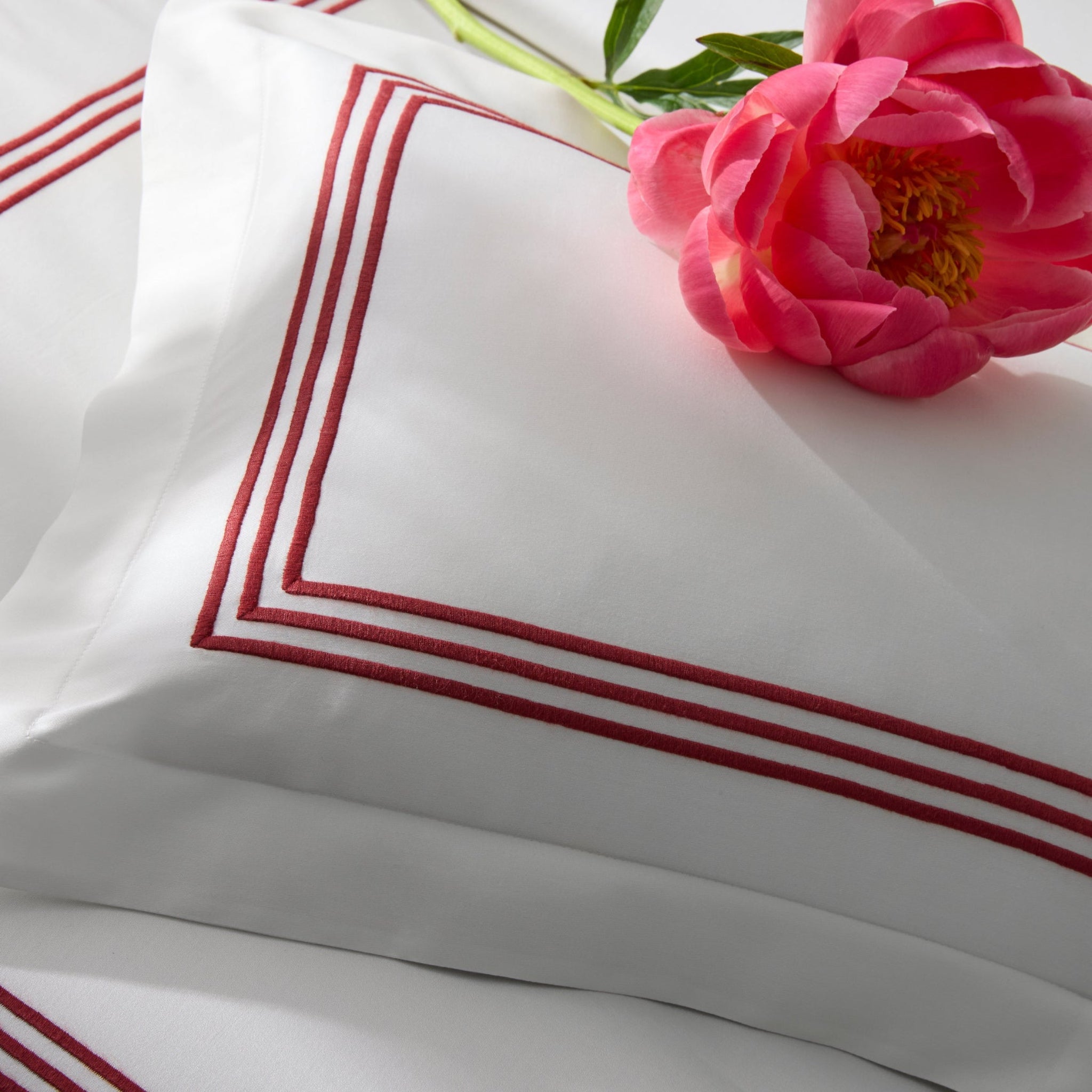 Matouk brings its signature Bel Tempo three-row-embroidery design to their beloved Nocturne sateen sheeting creating an iconic classic.