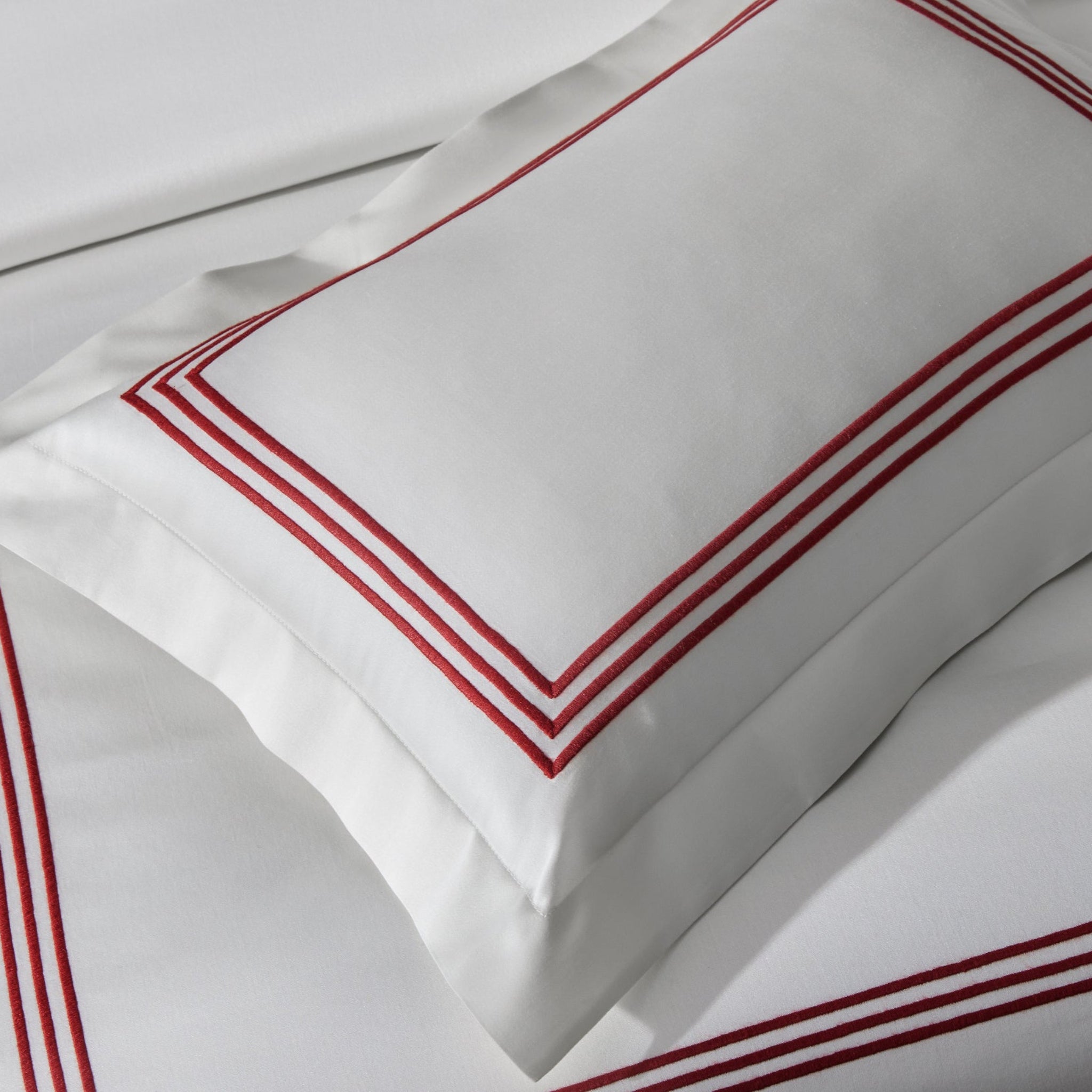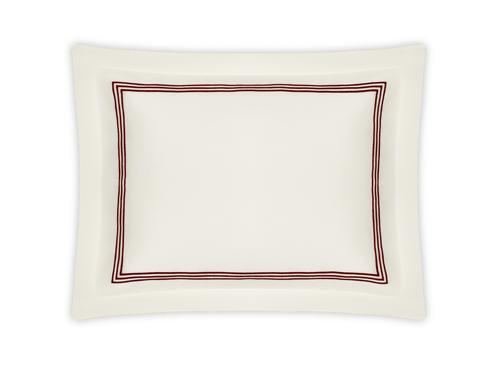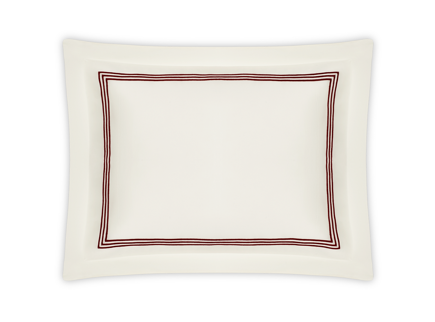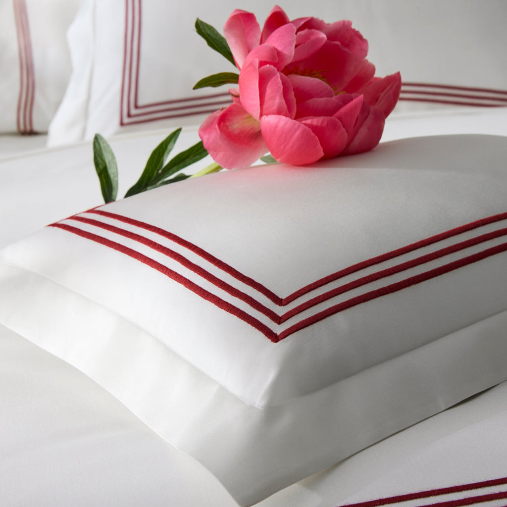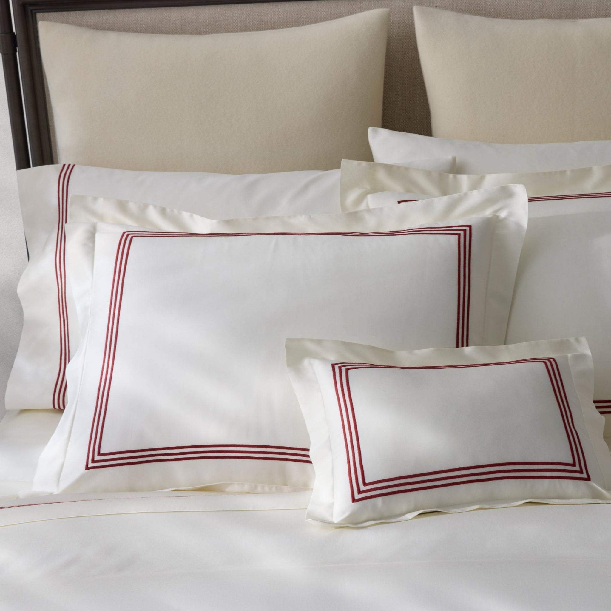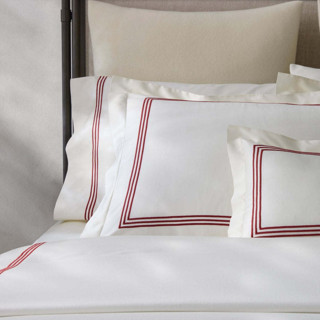 Matouk brings its signature Bel Tempo three-row-embroidery design to their beloved Nocturne sateen sheeting creating an iconic classic.