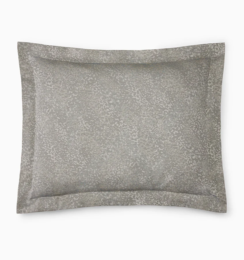 - Yarn-dyed sateen jacquard with a rich textural pattern that gracefully unfolds across an elegant palette of slate blue, taupe, and grey.