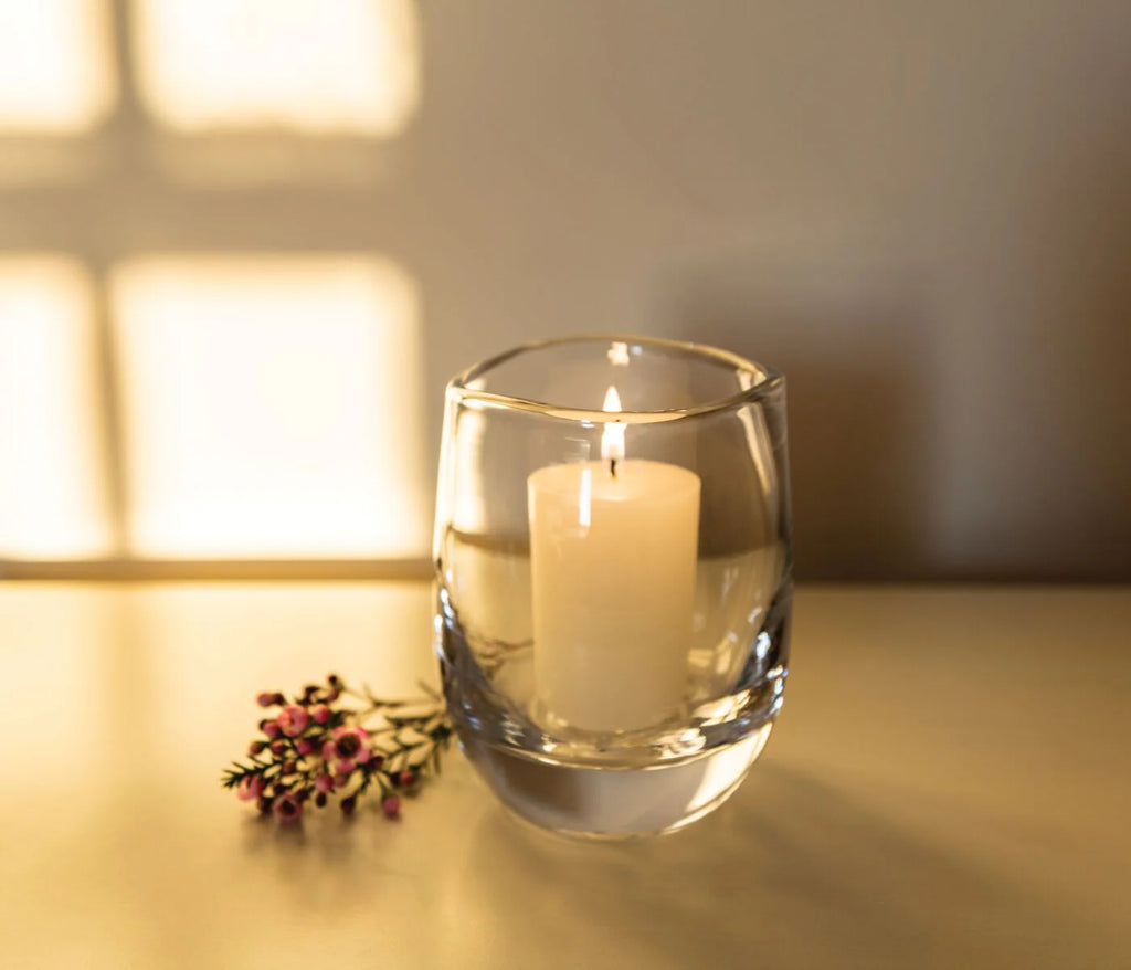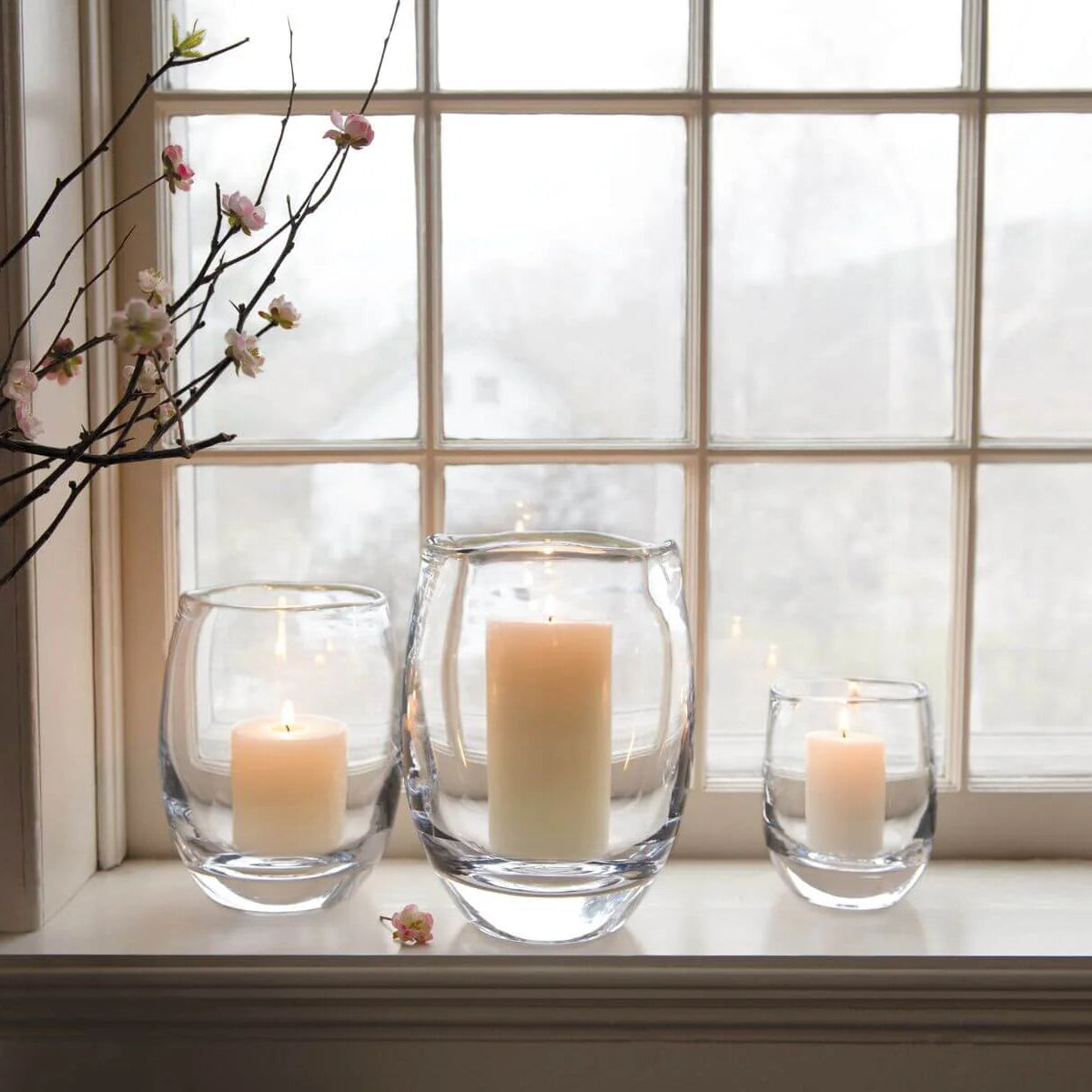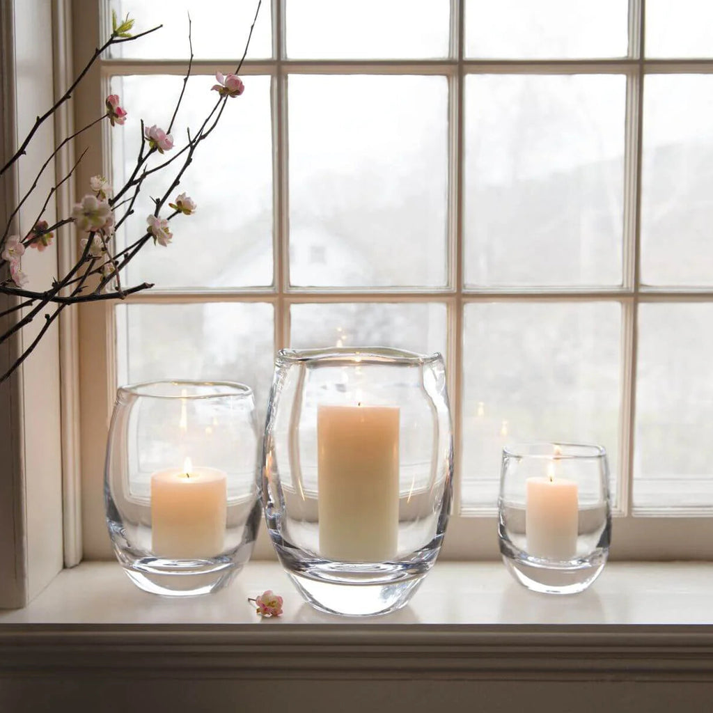 Care: Clean with glass cleaner and a soft cloth. Extinguish candles before the flame reaches the base. Do not expose glass to extreme heat changes, such as placing in the freezer. A shock in temperature can cause fractures.