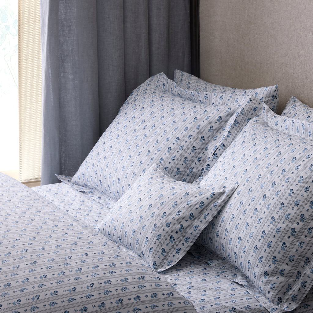 This Matouk Schumacher print’s delicate stripes and small-scale florals evoke a French Provincial sensibility on crisp percale