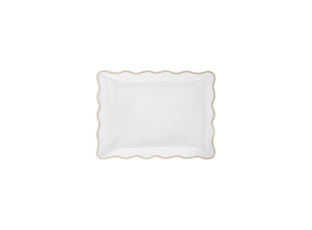 Lightweight with a soft texture, this charming pique is finished with a subtle wavy scallop edge
