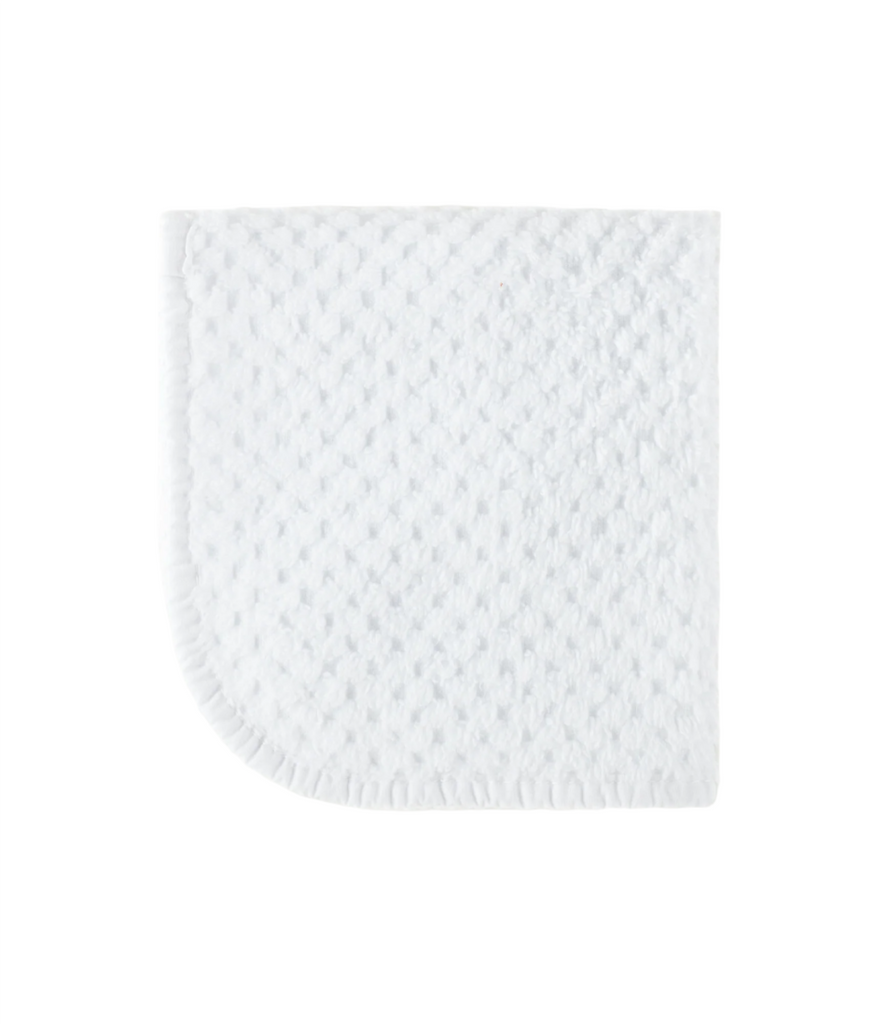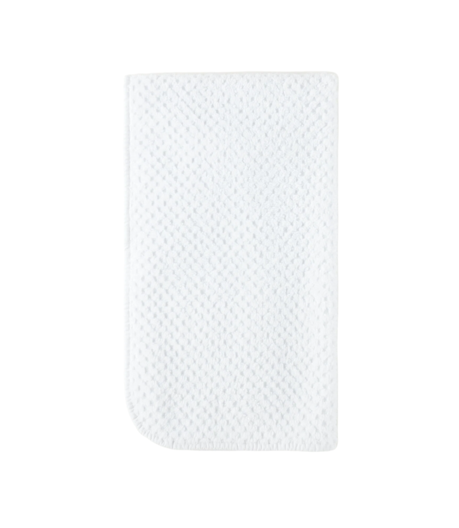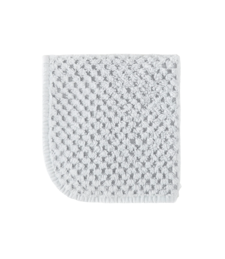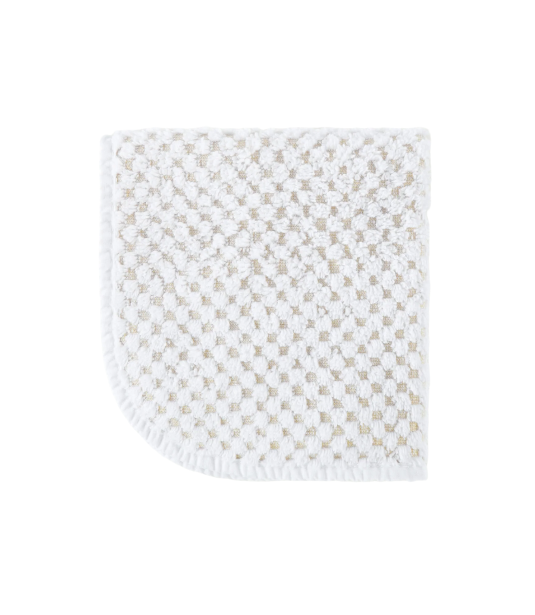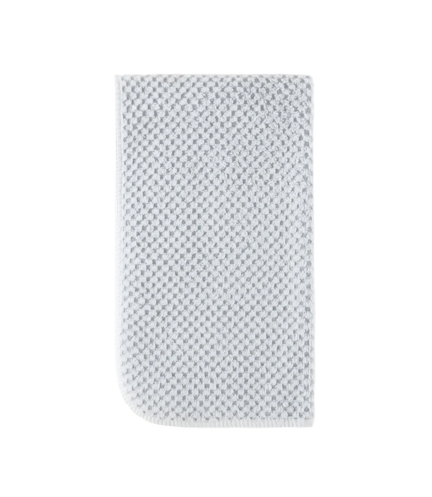 • Features a two-tone checkerboard design on one size, and solid terry on reverse with white trim and rounded corners