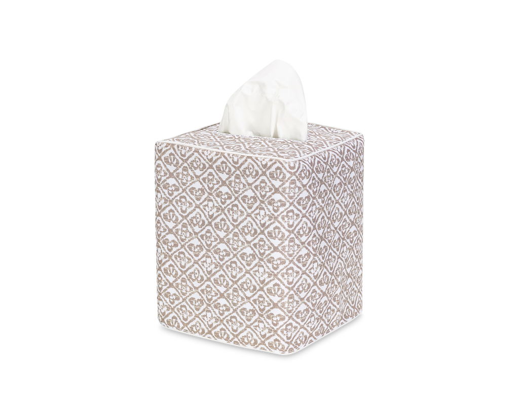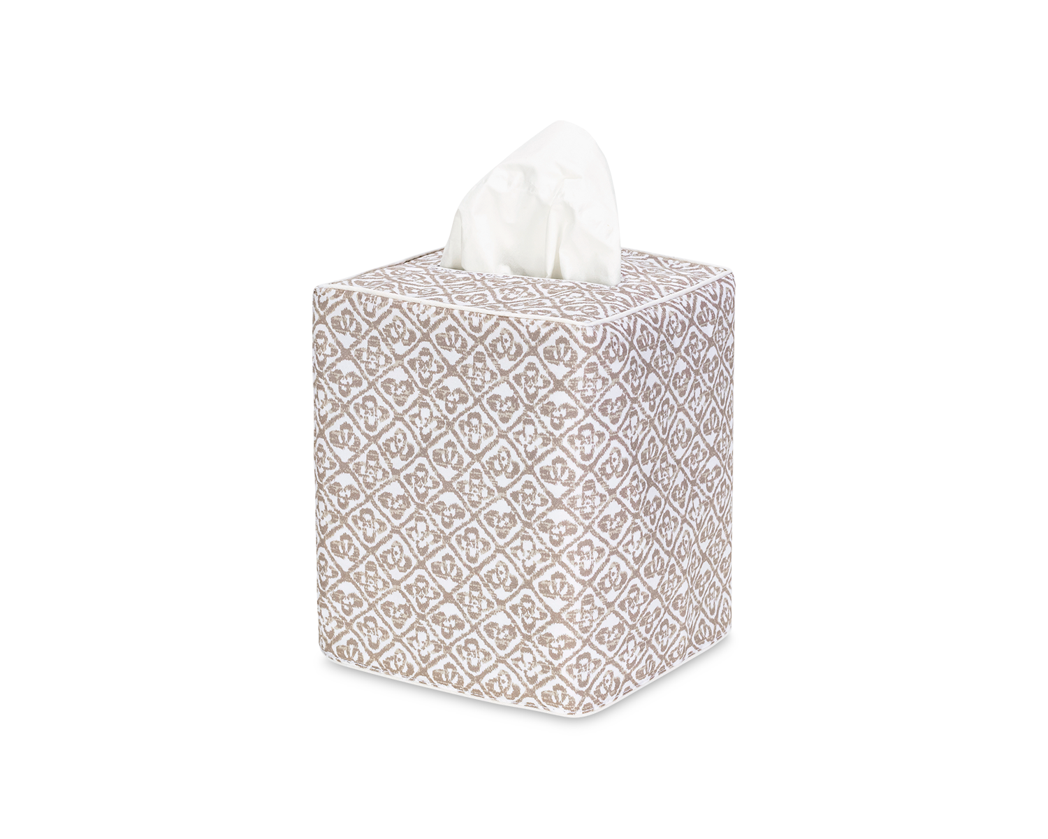Schumacher's multi-dimensional repeat motif adds a warm, handcrafted effect to Matouk's luxurious Luca percale fabric
