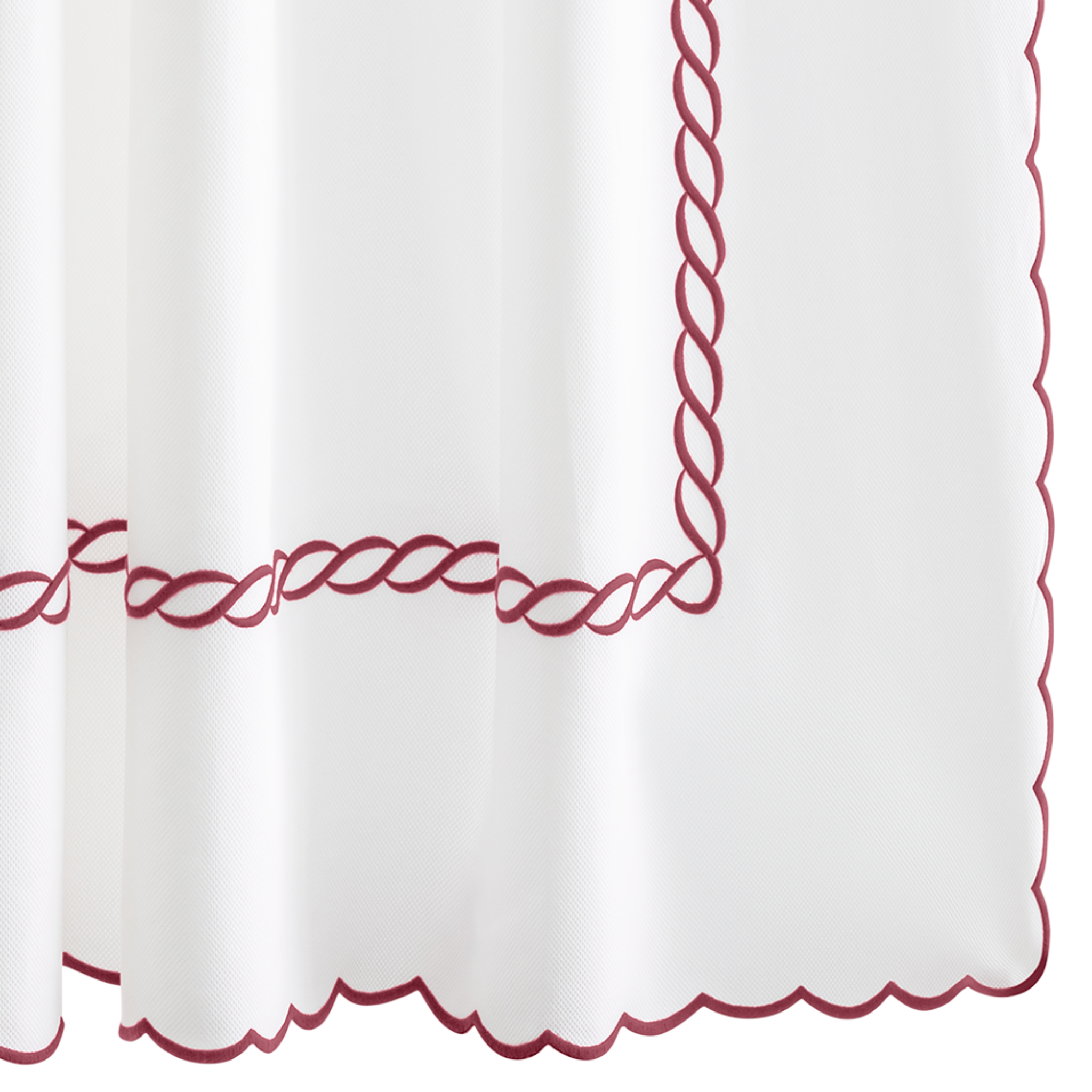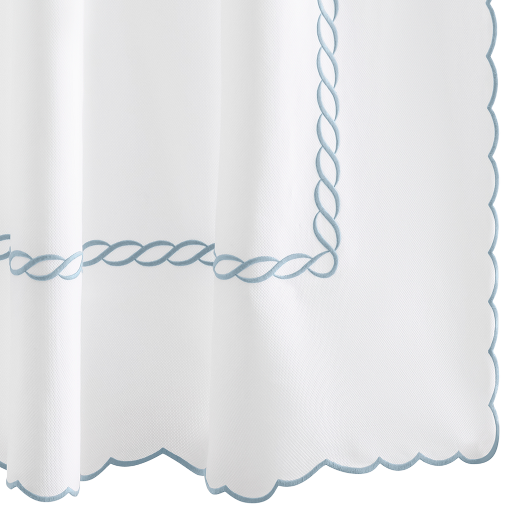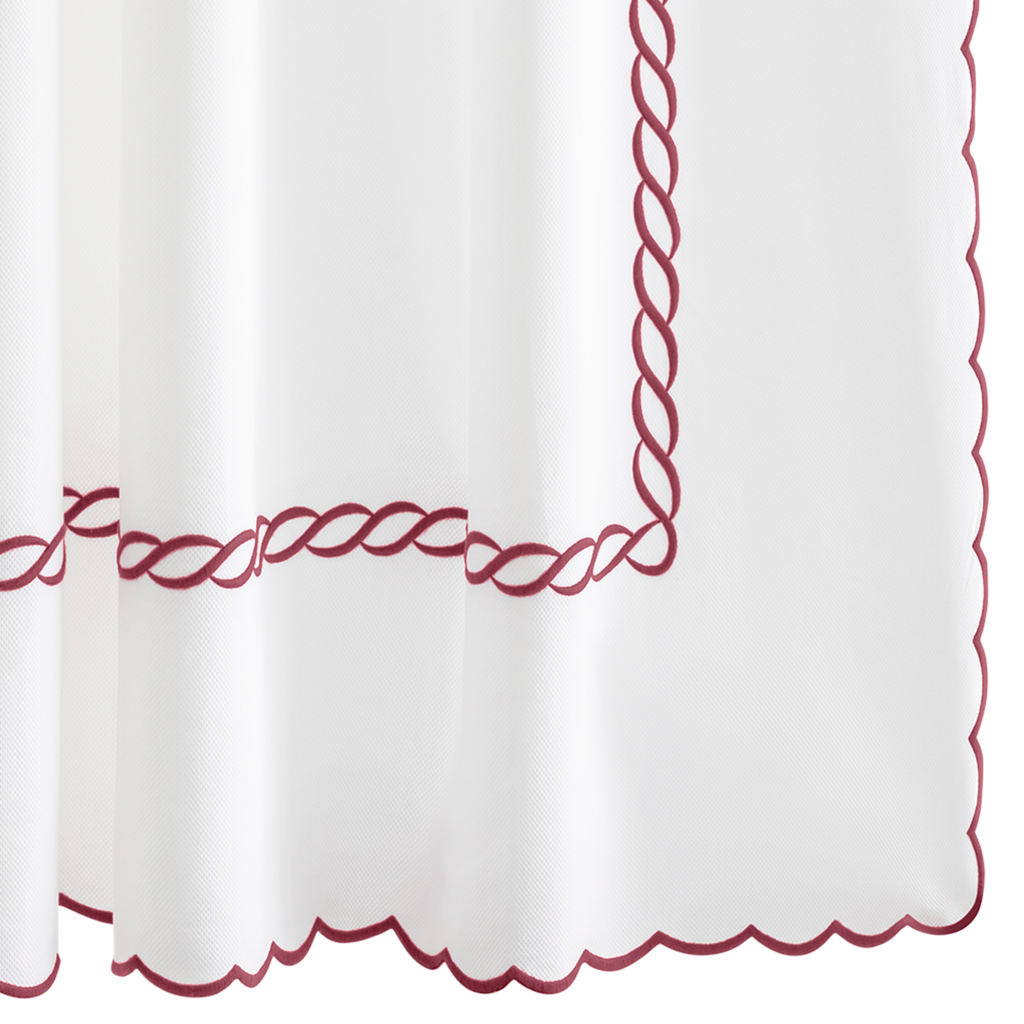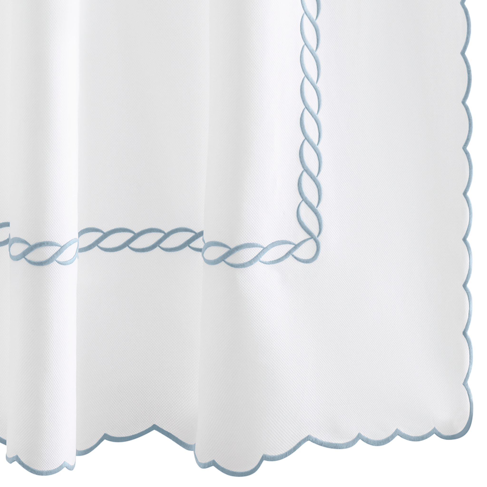 Classic Chain Scallop shower curtains offer quality, beauty, and a timeless design. A continuous chain of meticulous embroidery complements the 100% cotton white pique fabric. That same color embroidery is then used to complete the scalloped design on the edges of the shower curtain, completing this traditional look.