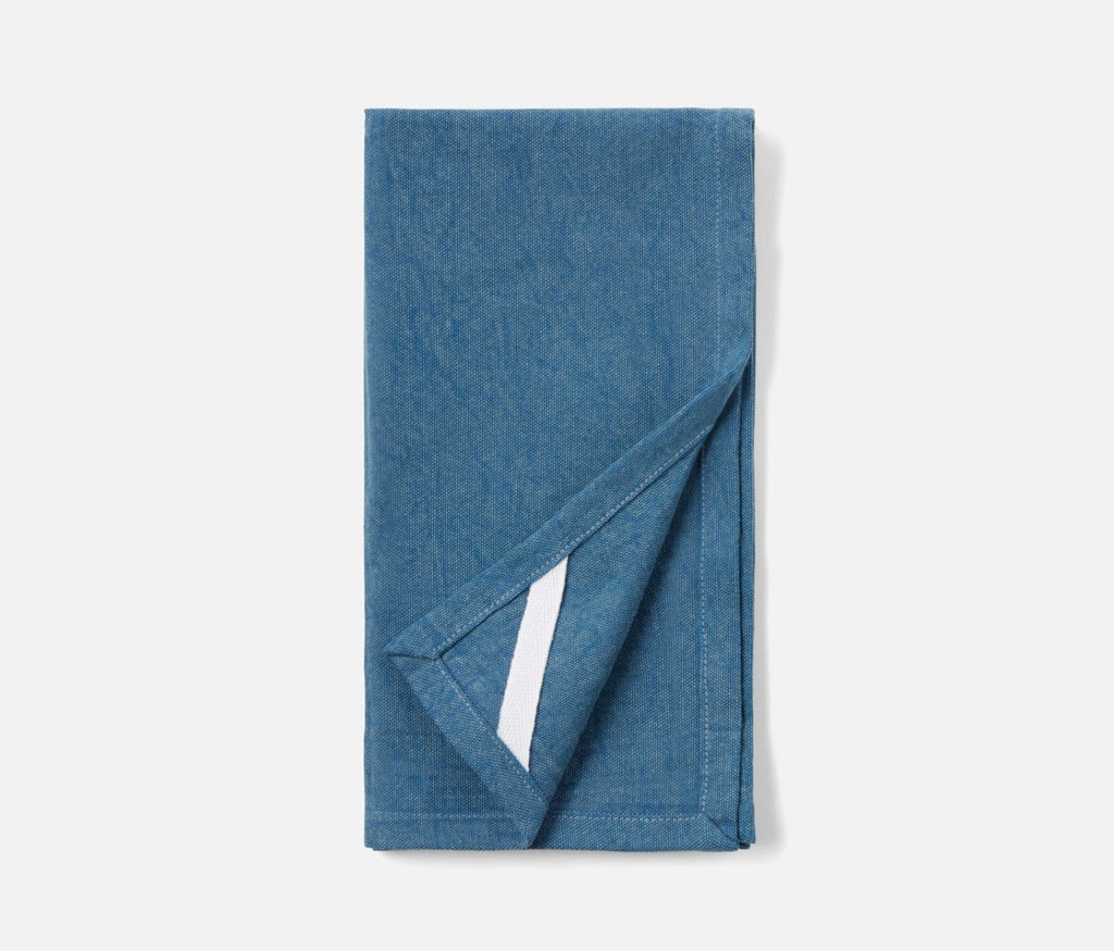 • 100% cotton canvas napkin in an acid wash dark blue shade
