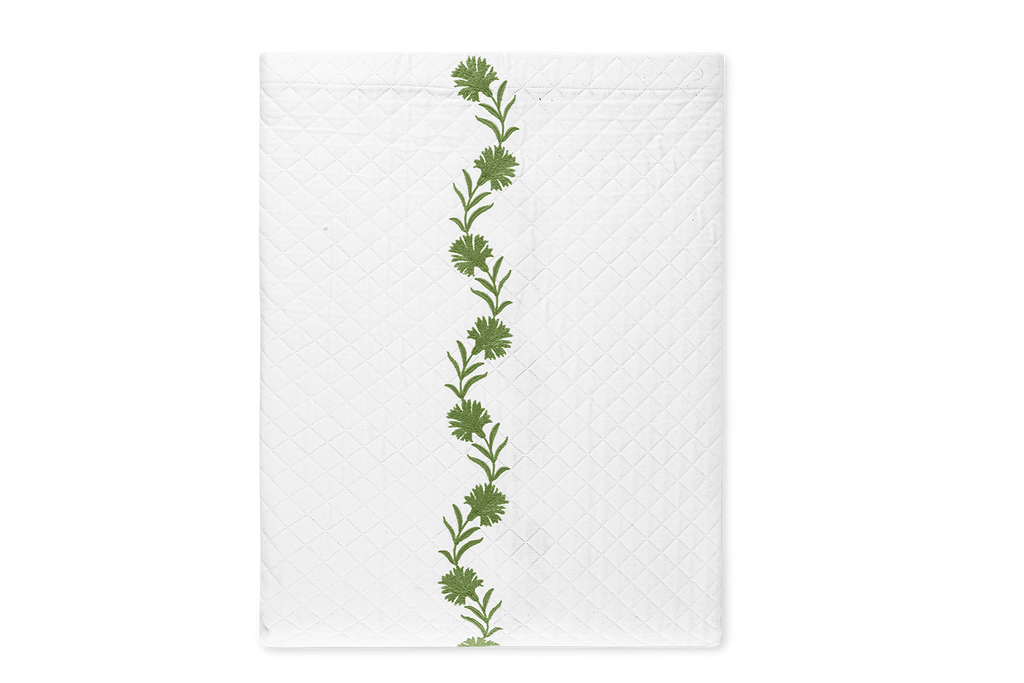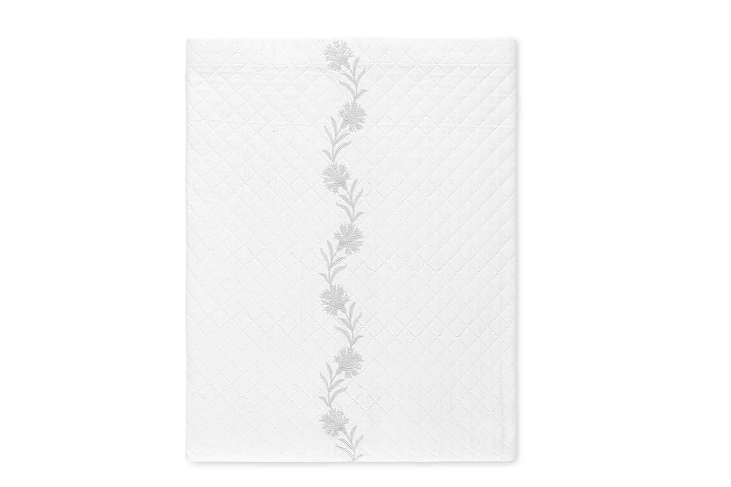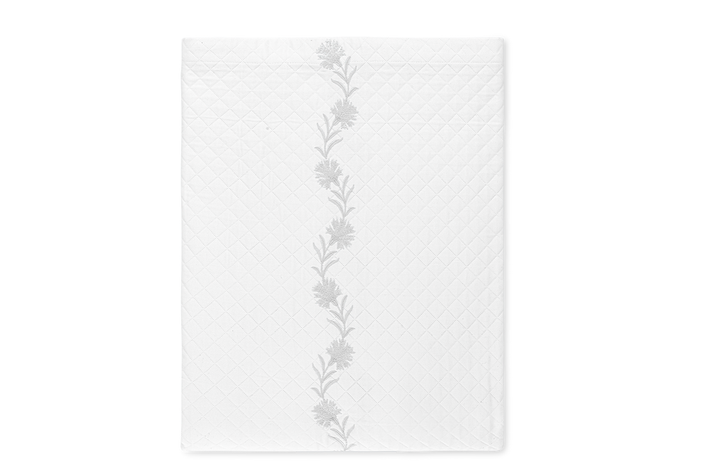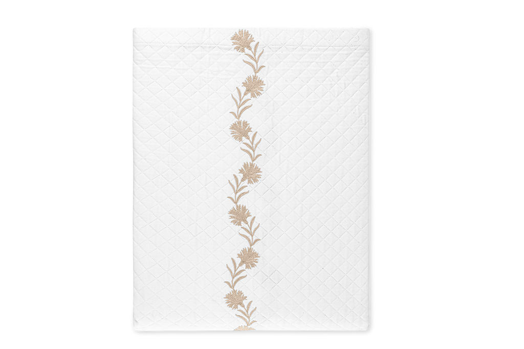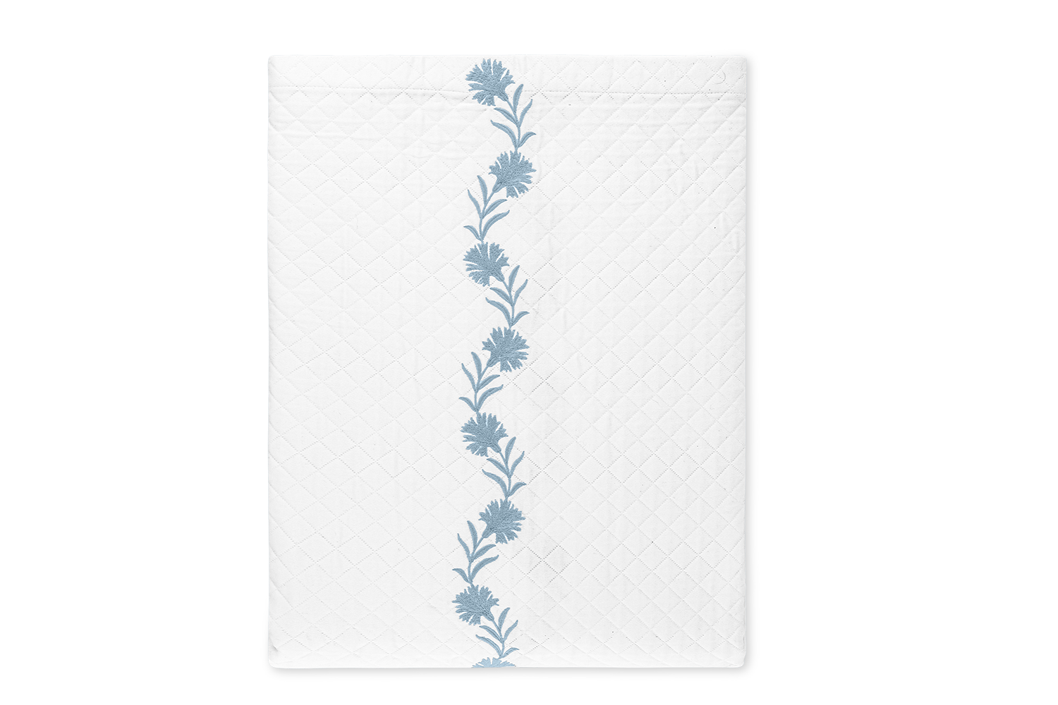 Embroidered daphne flowers create a classic style on Matouk's luxury diamond matelassé