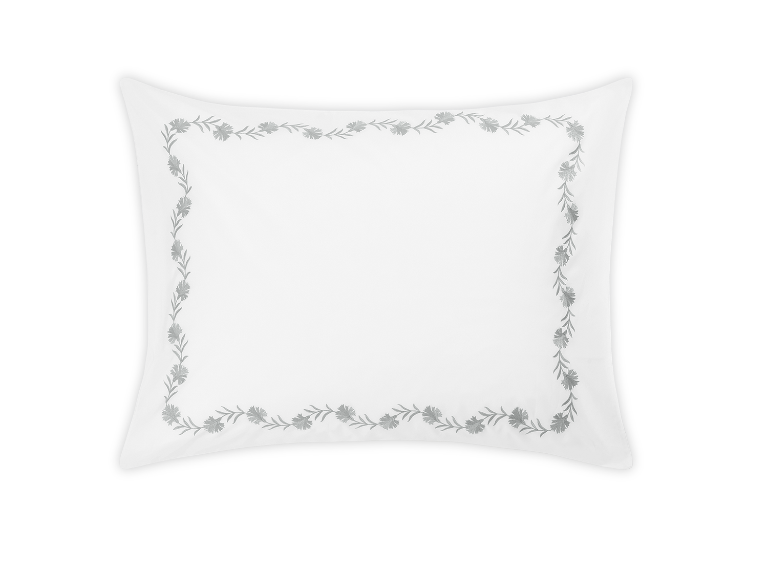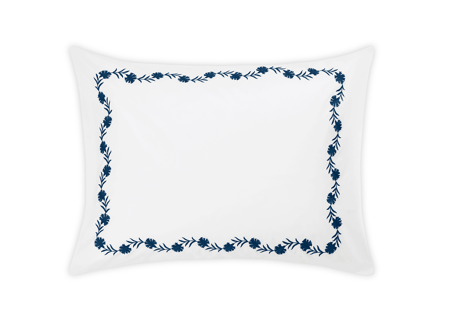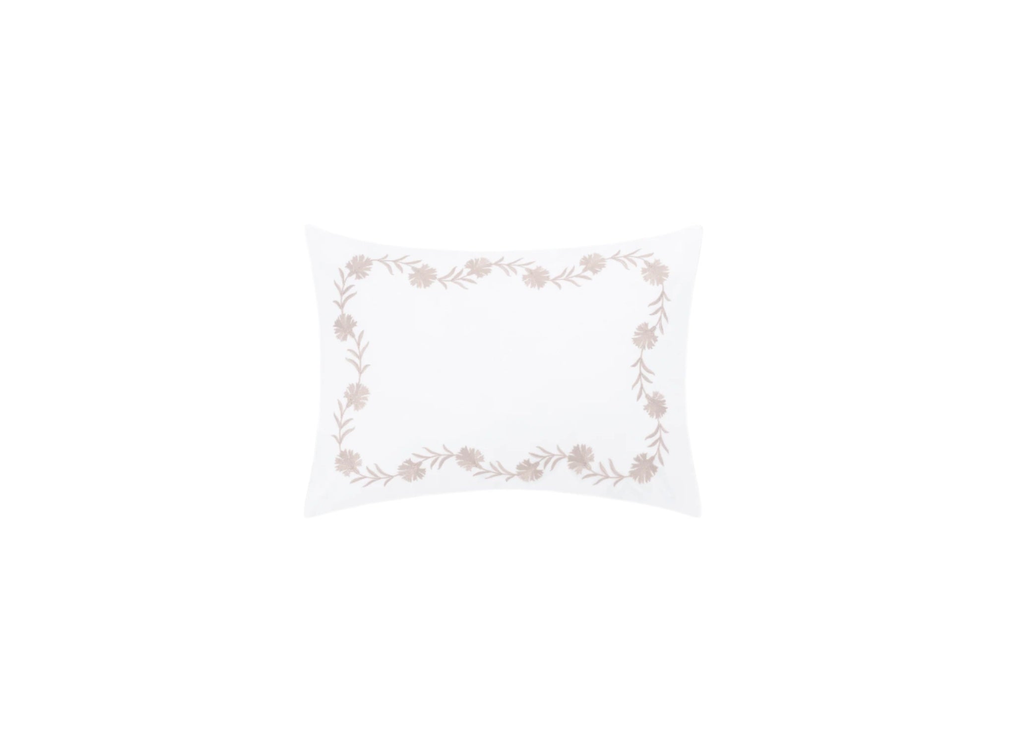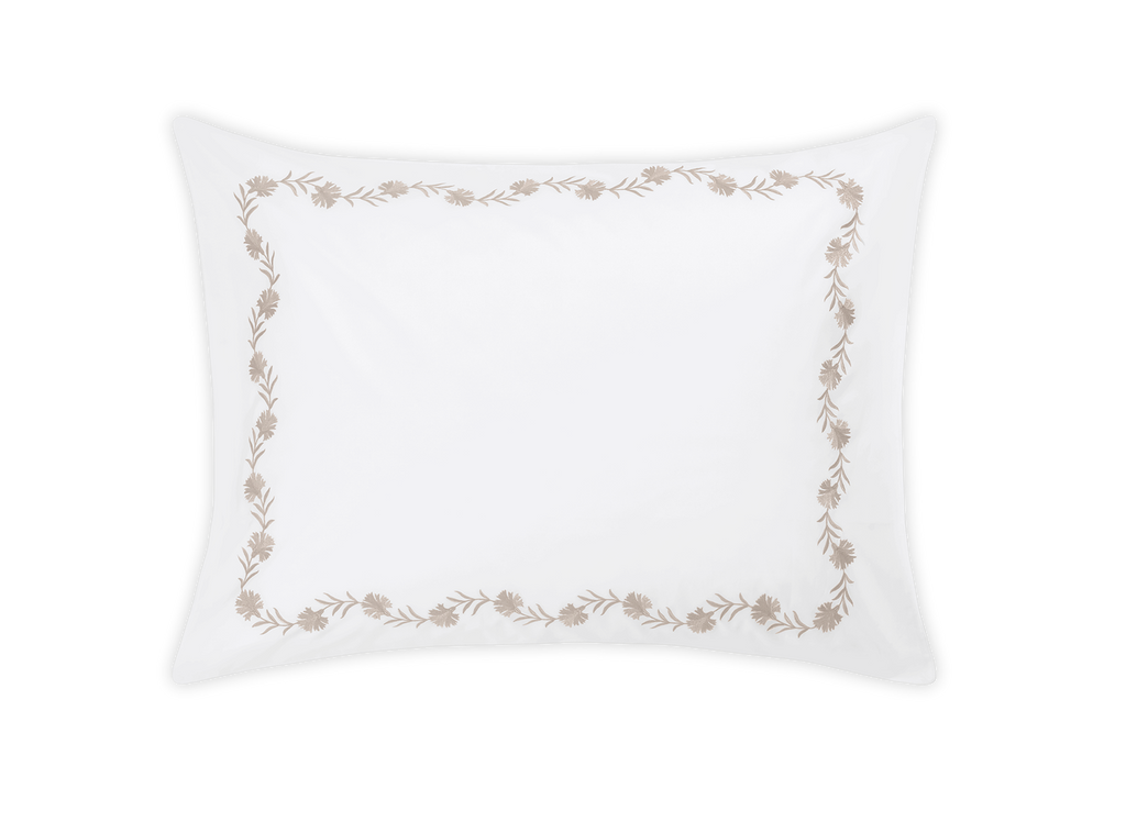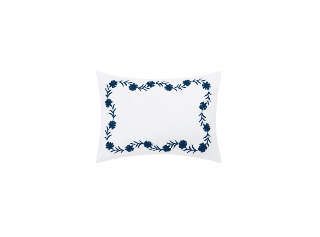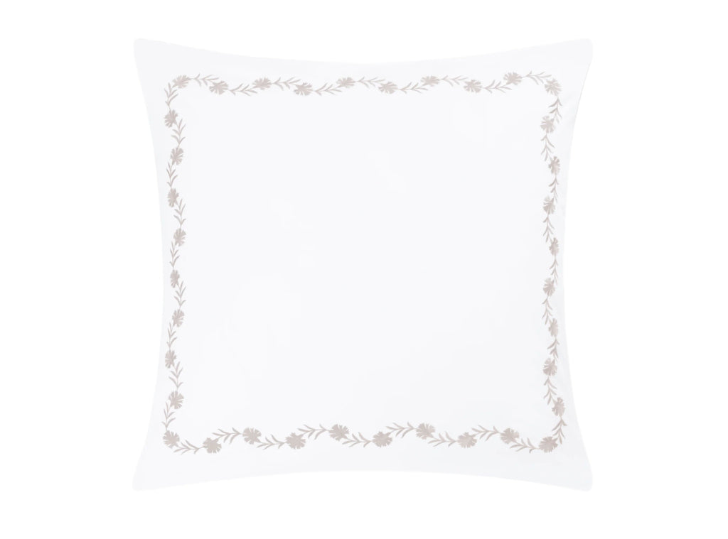 Floral vine embroidery on white Ceylon percale. Both quietly classic or vibrant and bold.