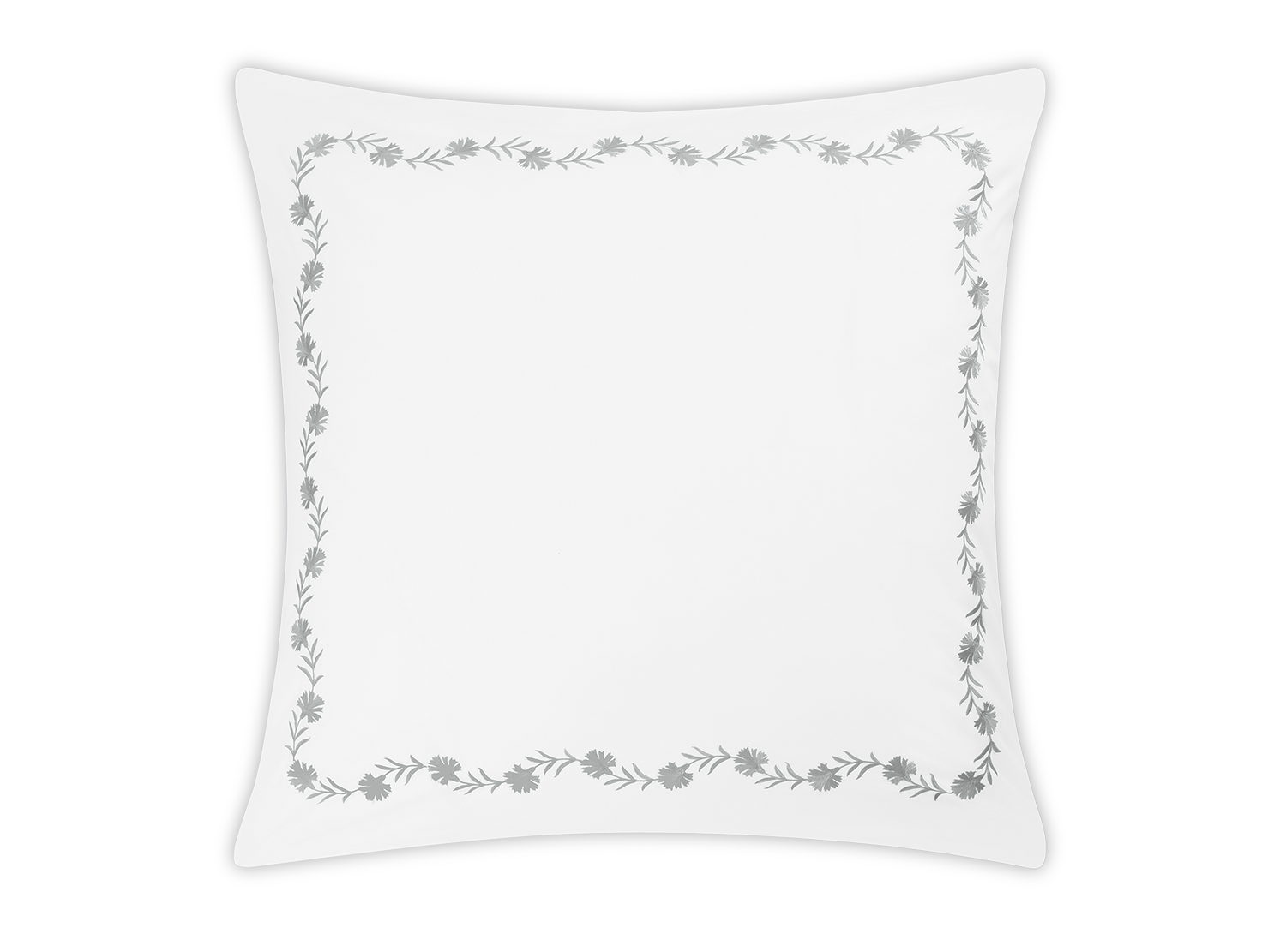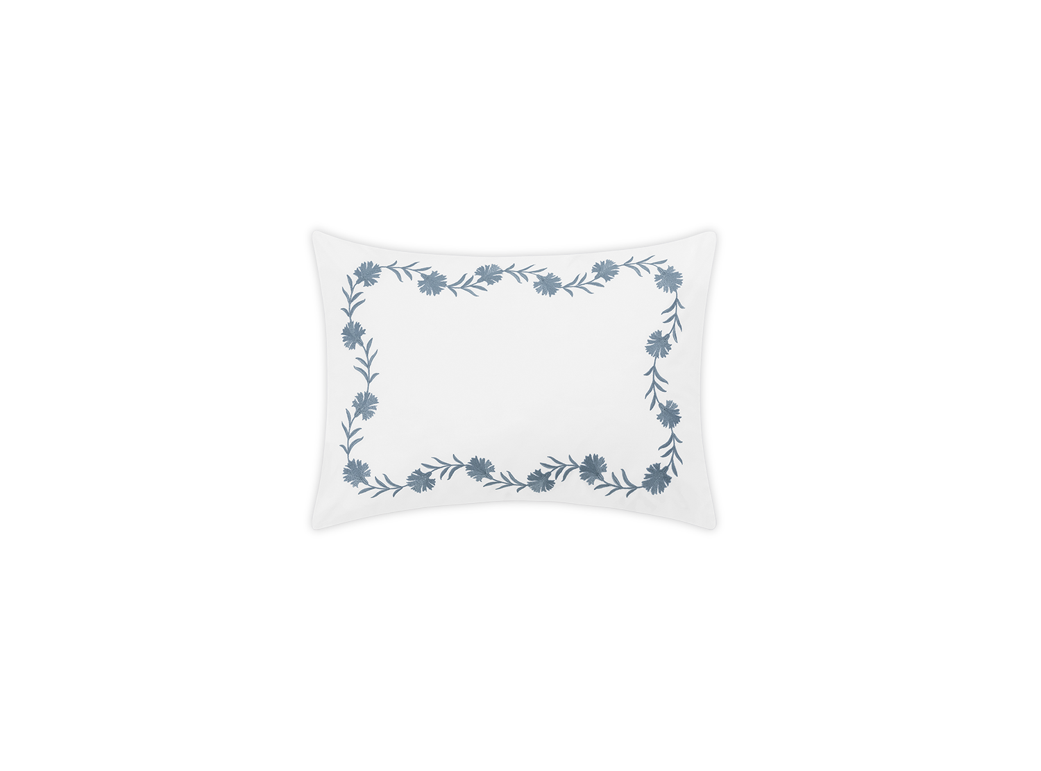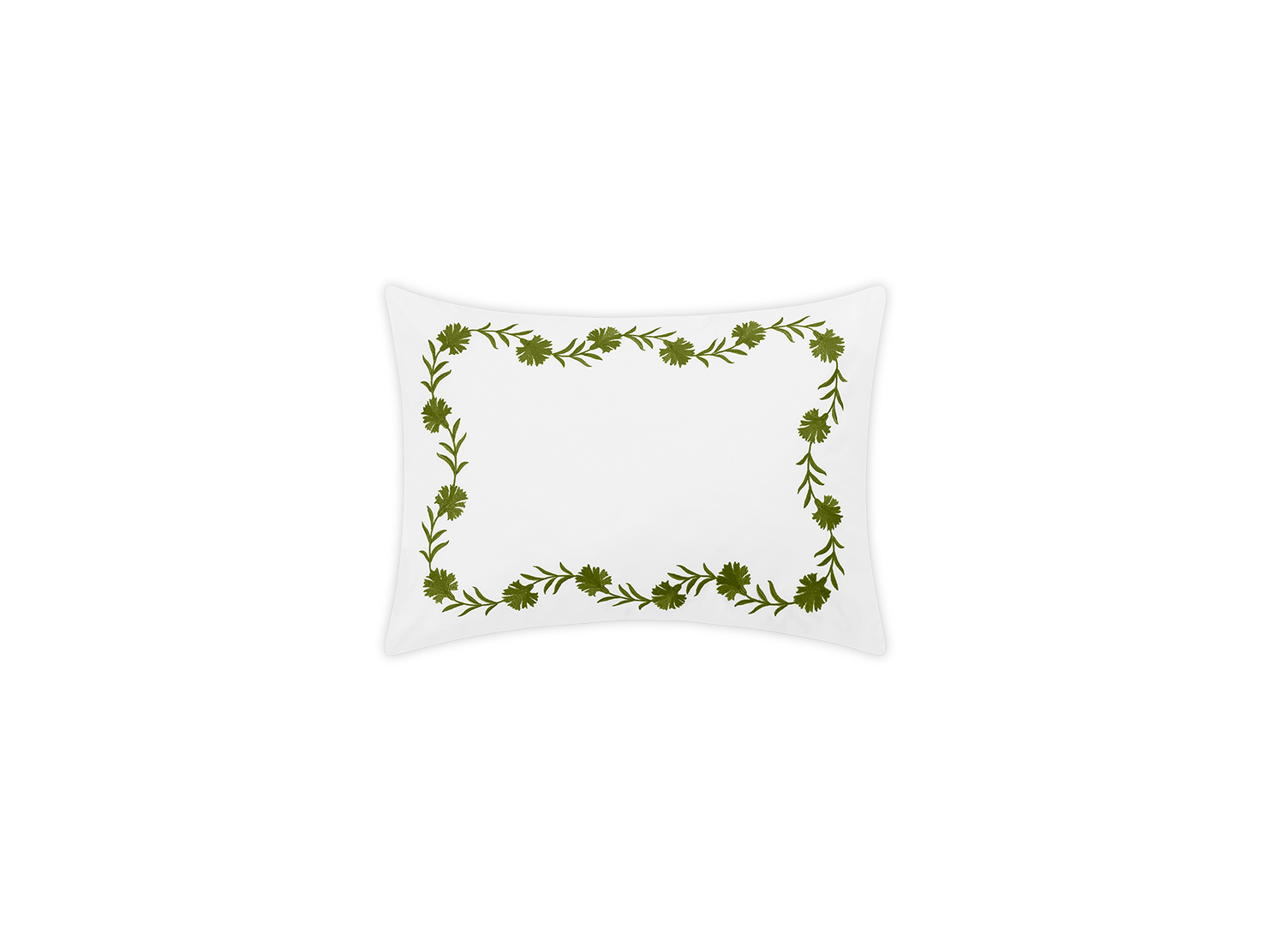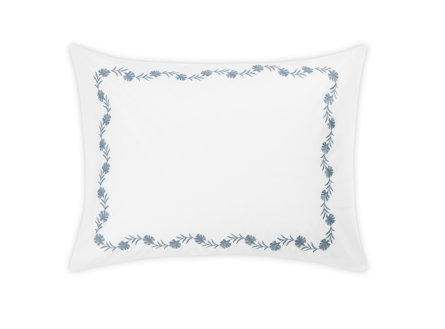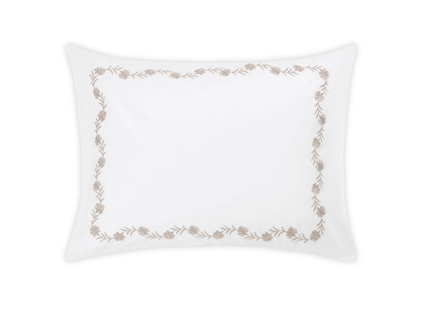 Floral vine embroidery on white Ceylon percale. Both quietly classic or vibrant and bold.