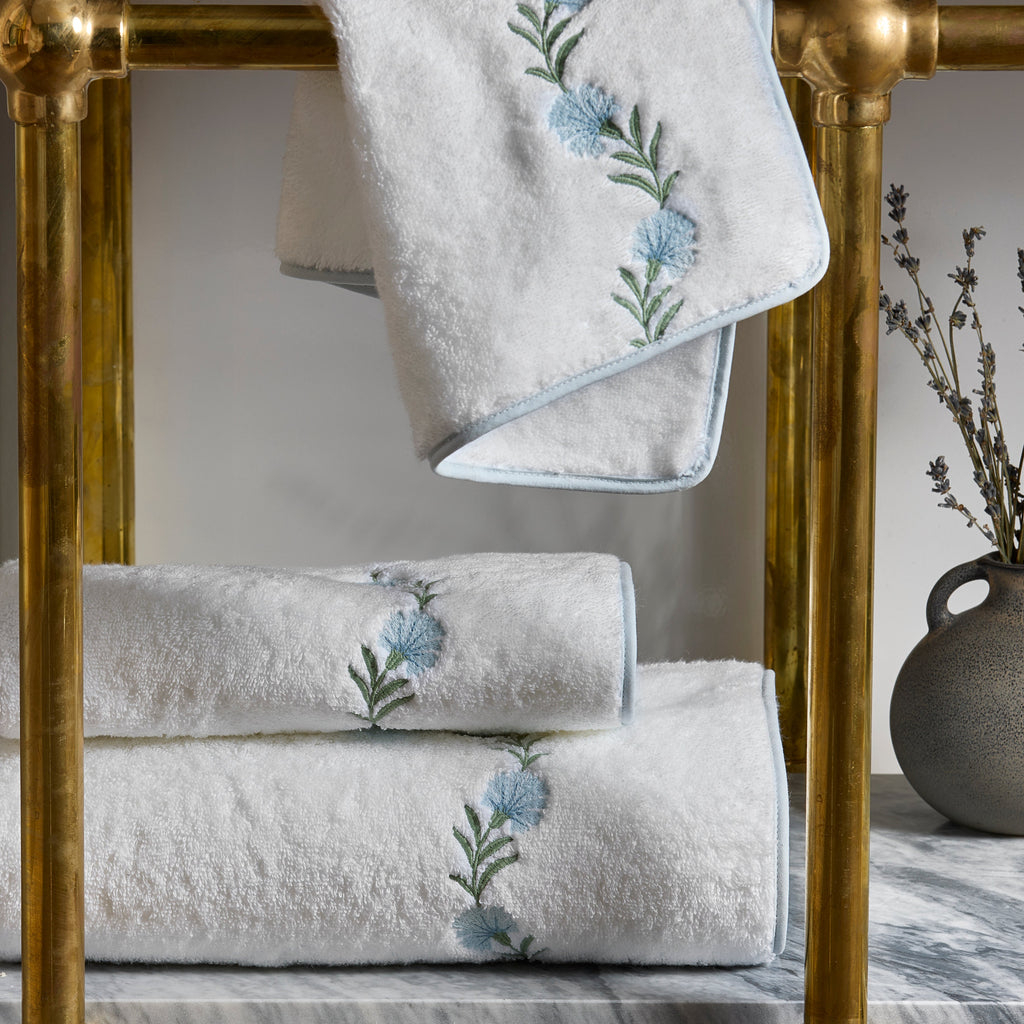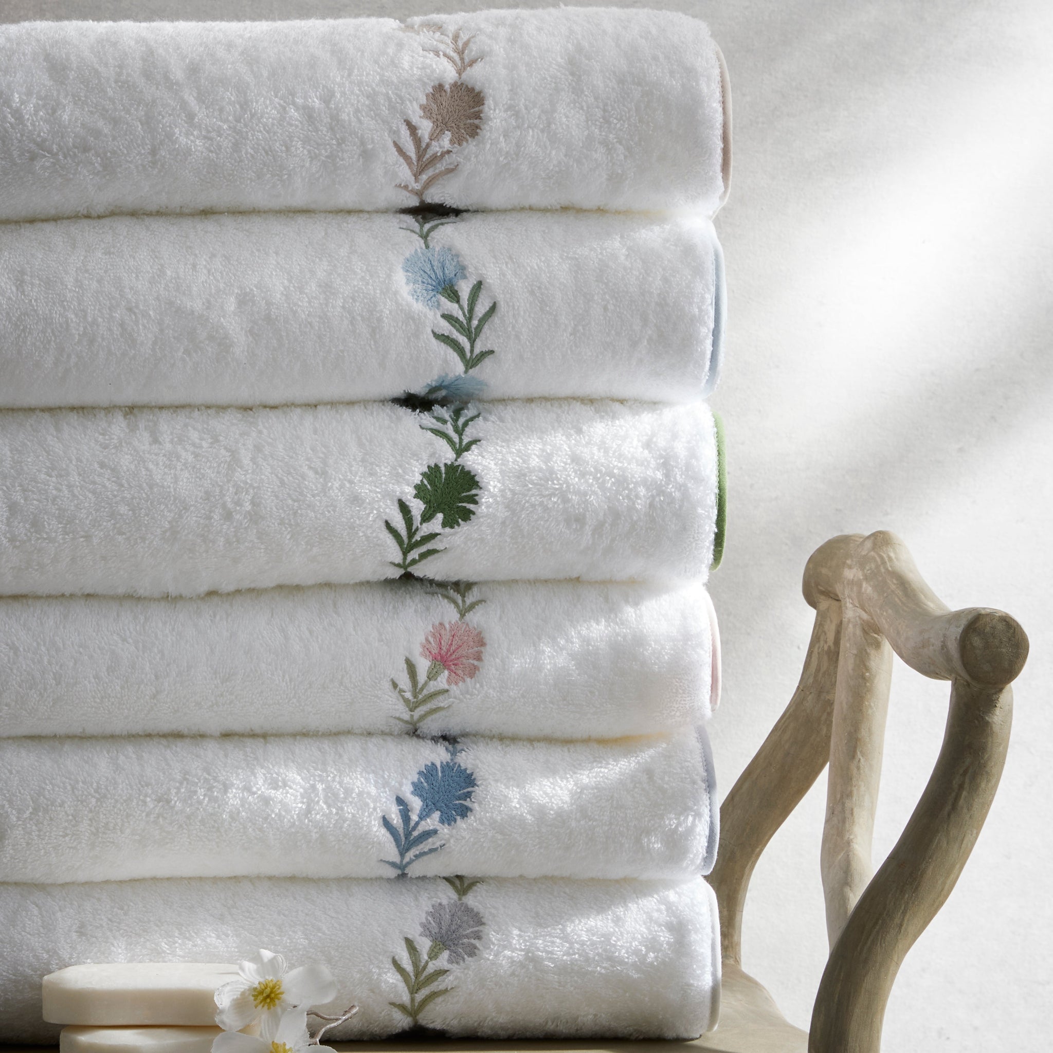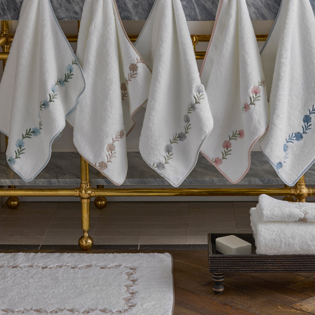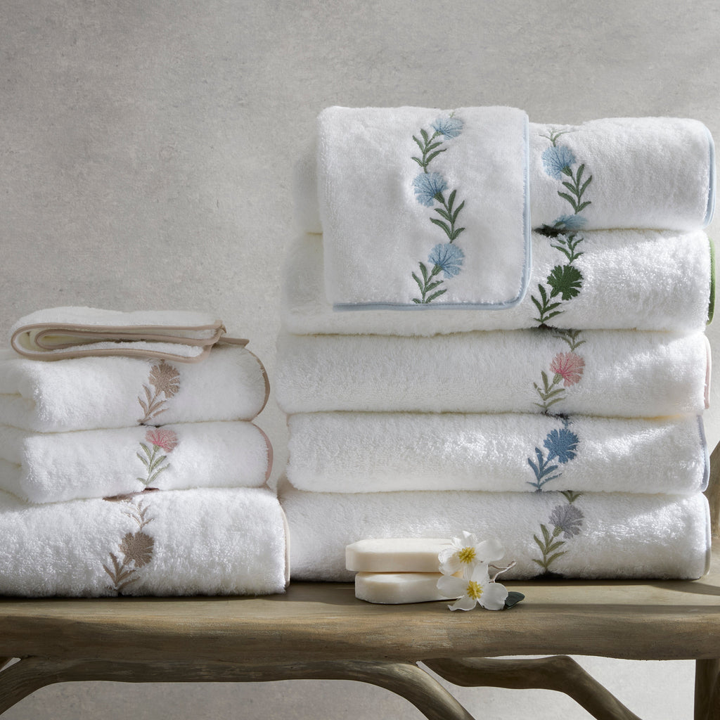 Daphne’s delicate floral embroidery adds a pop of color to lush Cairo long-staple cotton terry, creating a towel that brings charm to the bath