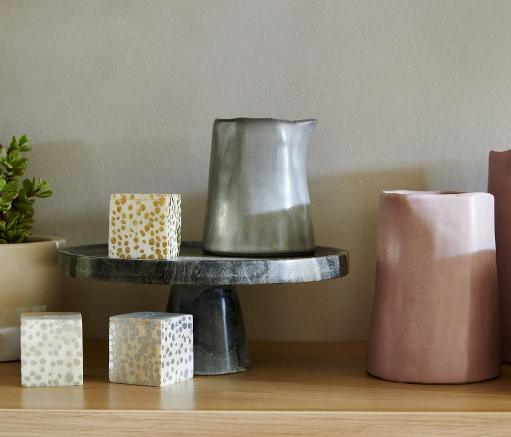 - Bone cube with spotted silver finish