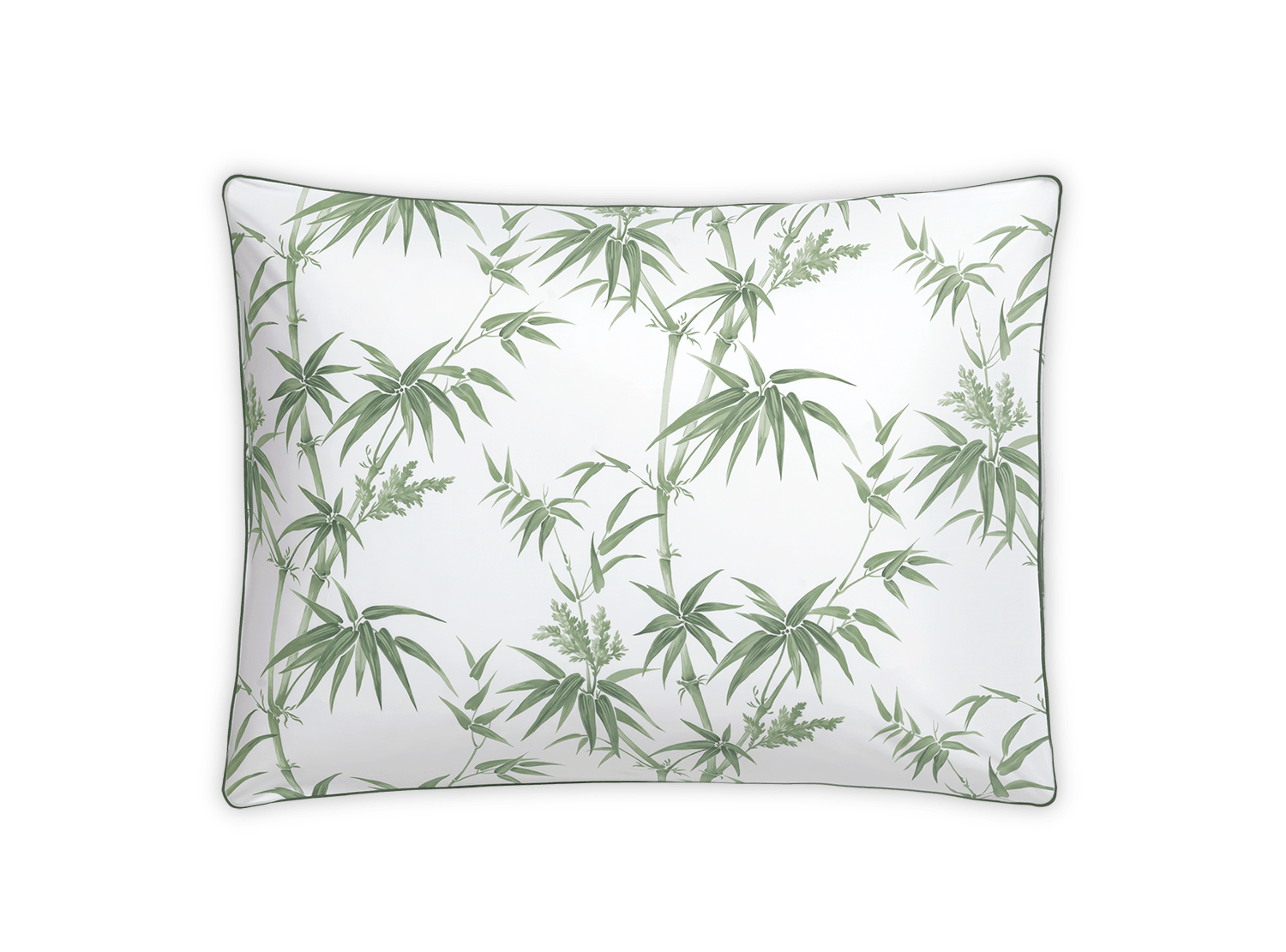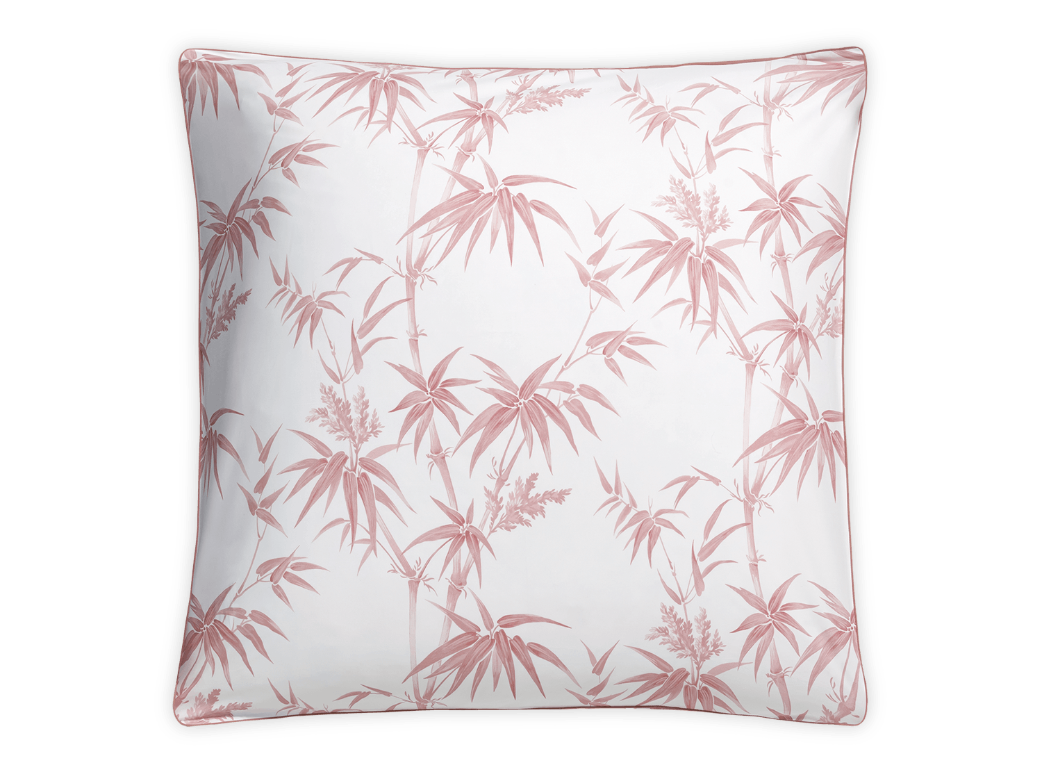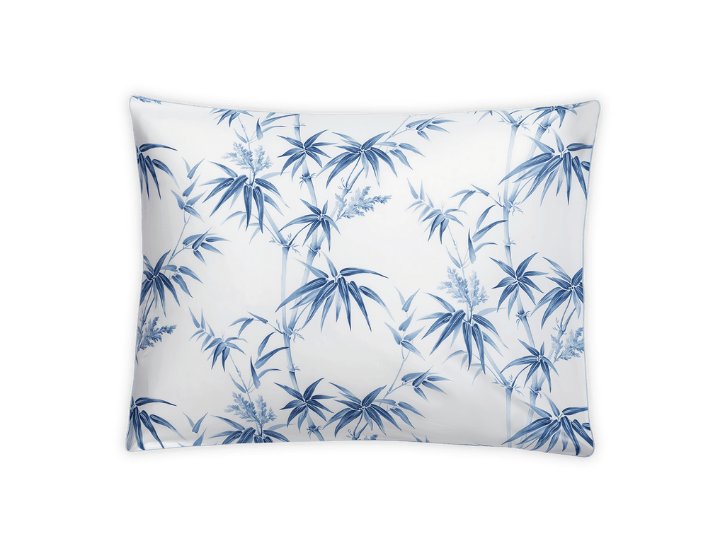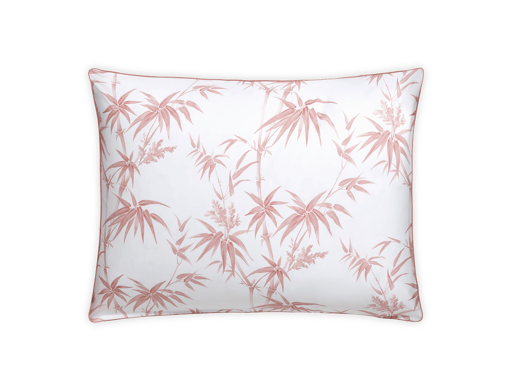 A reimagining of Schumacher’s Arita floral, Dominique features tropical bamboos and airy botanicals on Luca percale