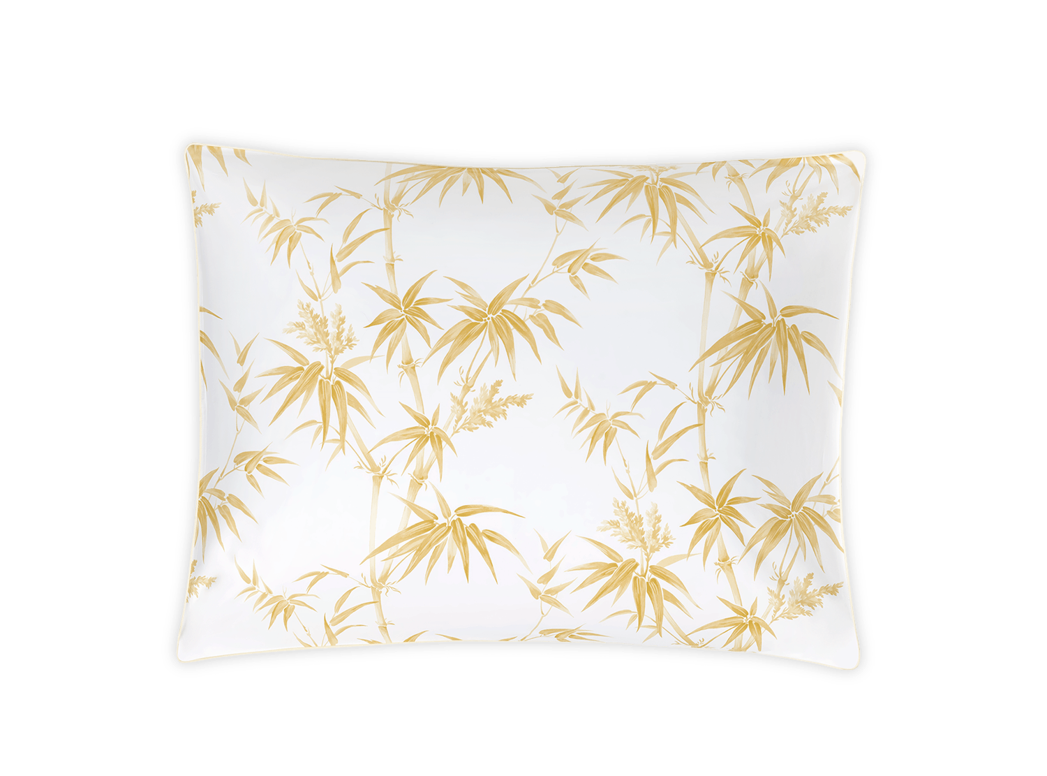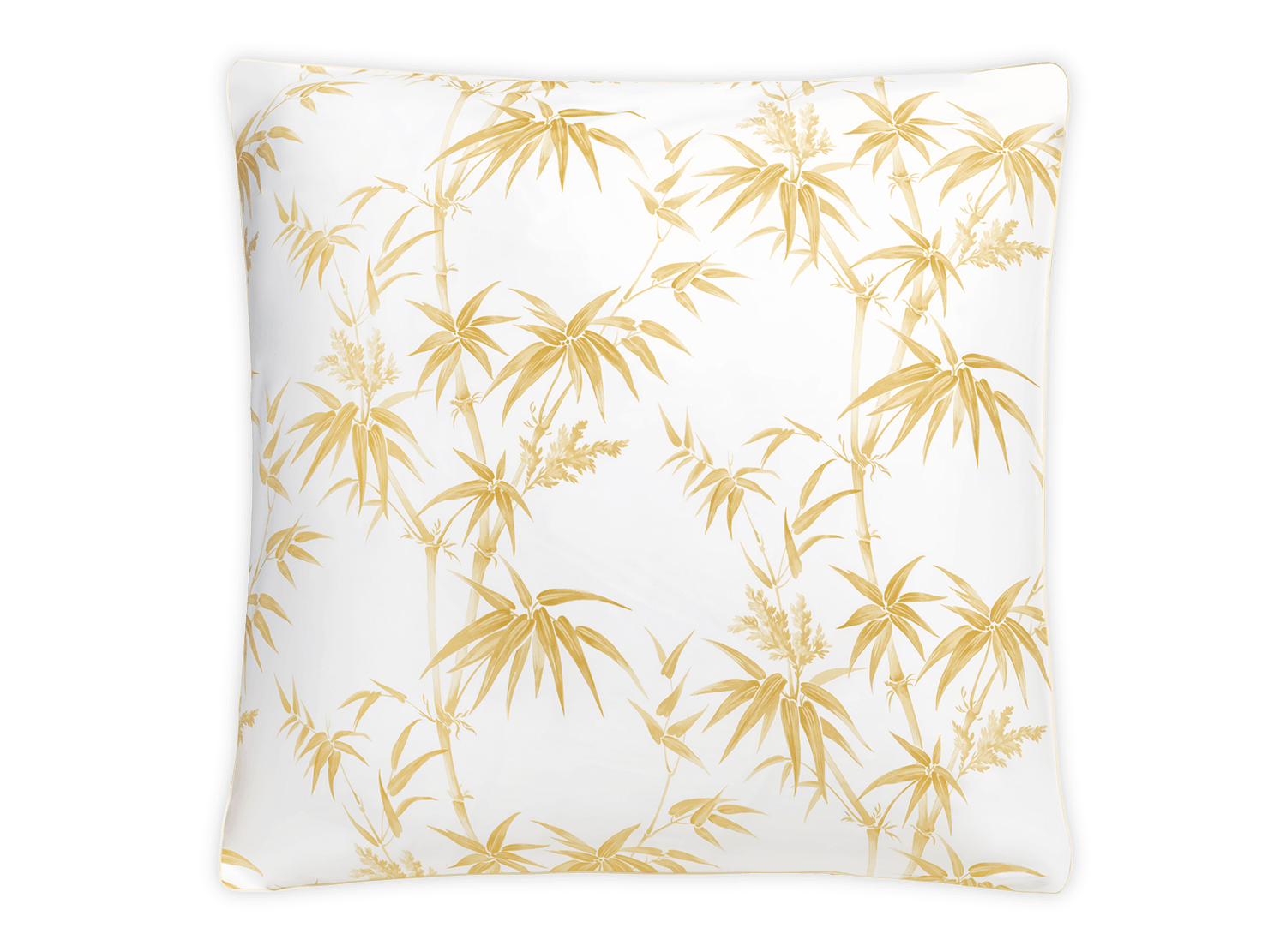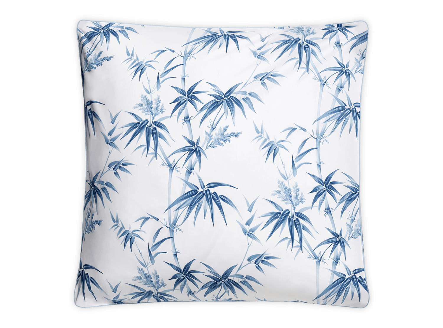 A reimagining of Schumacher’s Arita floral, Dominique features tropical bamboos and airy botanicals on Luca percale